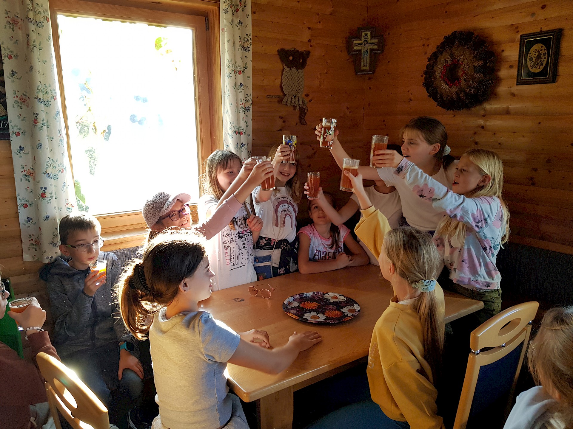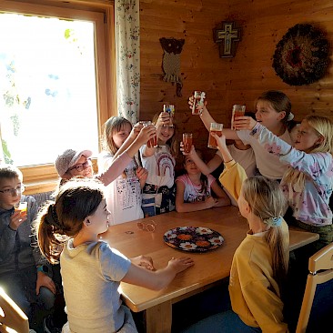 Leider bist du nicht bei uns in St. Oswald bei Freistadt. Heute haben wir eine Schatzsuche durch den Ort gemacht. Danach sind wir auf einem Bauernhof gefahren. Dort haben wir leckeren Apfelsaft gepresst und auch verkostet. Morgen machen wir eine kleine Wanderung. Leider werden wir schon um 7:00 Uhr geweckt. Jetzt haben wir noch ein Abendprogramm.