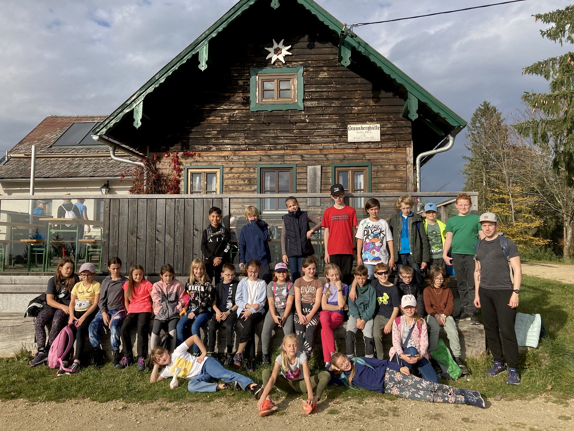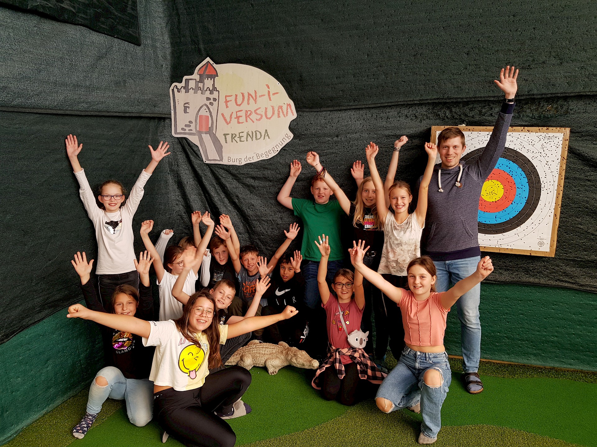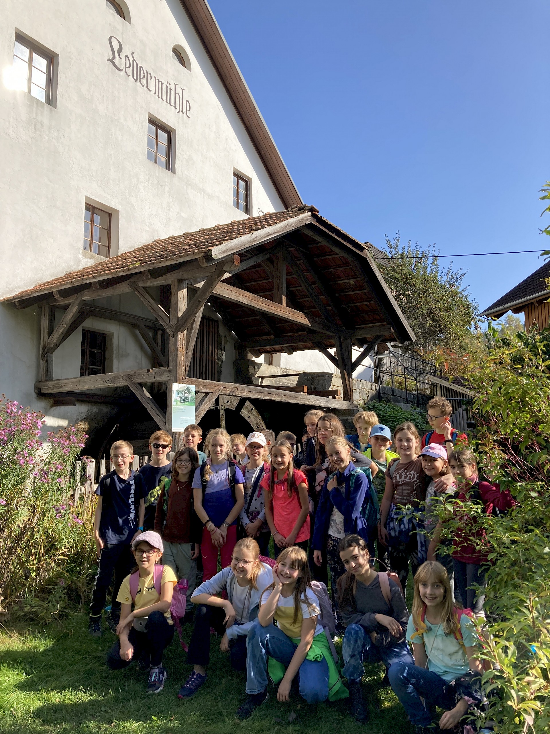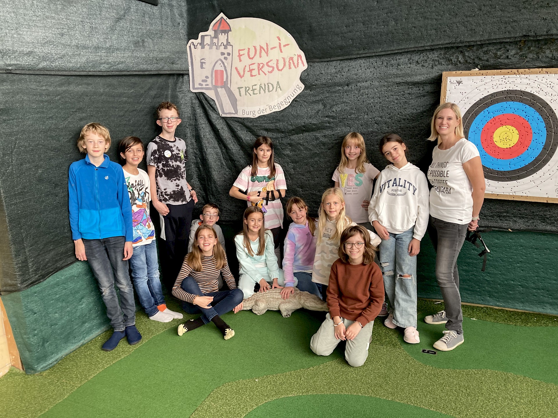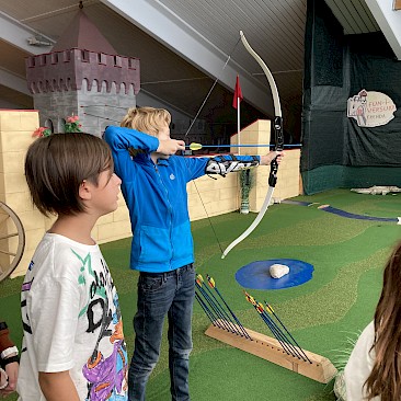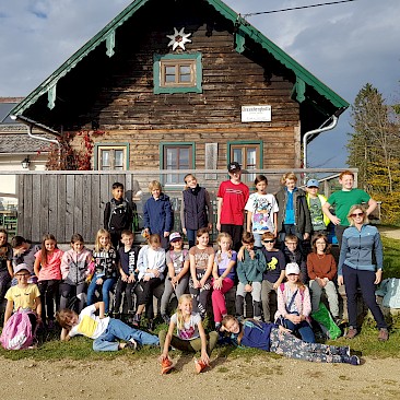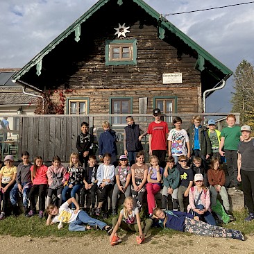 Wir vermissen dich sehr! Unsere Klasse ist in St. Oswald in der Burg der Begegnung. Das Essen schmeckt uns sehr und die Programmpunkte waren bis jetzt sehr lustig. Auf die Kennenlerntage haben wir uns schon soooo gefreut und konnten es kaum warten! Wir hoffen, es ist nicht zu leise in der Klasse. Falls ja, wir sind bald wieder da! Bei uns war es bei der Bogenschieß-Challenge auch sehr leise und wir mussten uns sehr konzentrieren. Es hat großen Spaß gemacht. Manche wurden sogar zum „Bärentöter“ geschlagen.