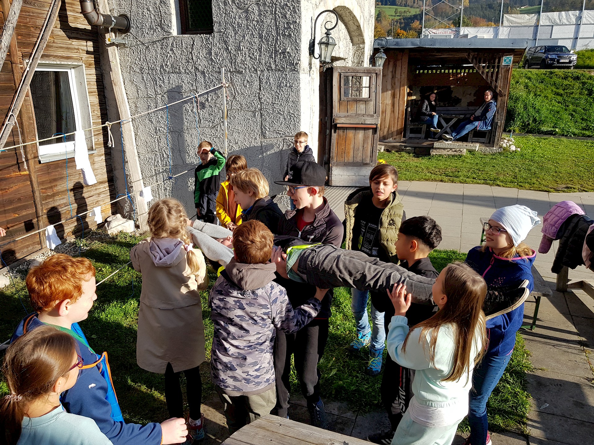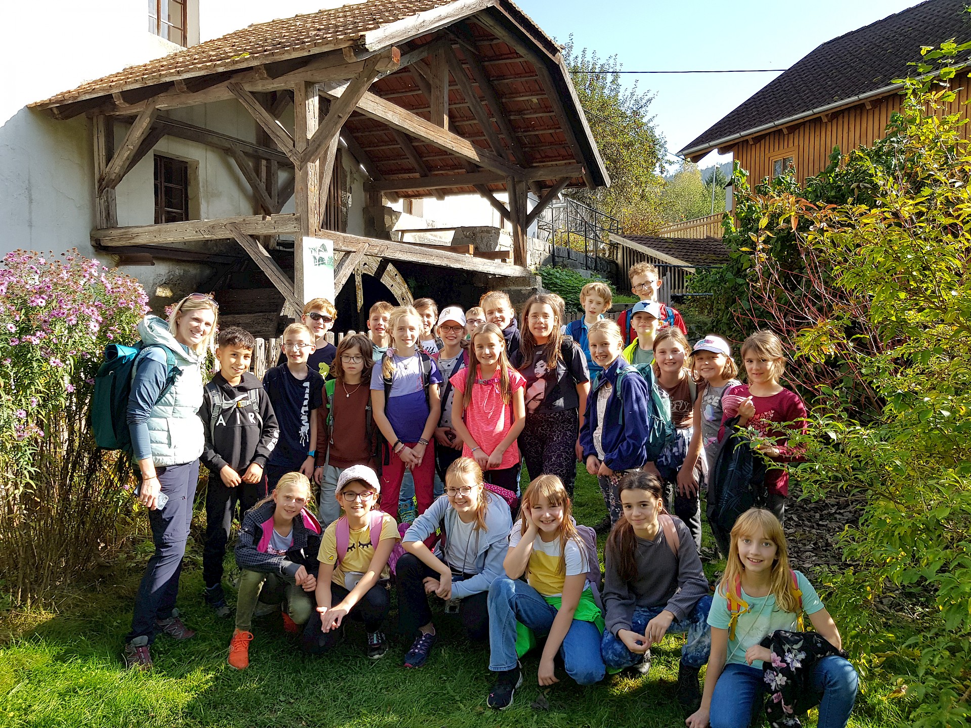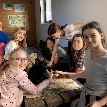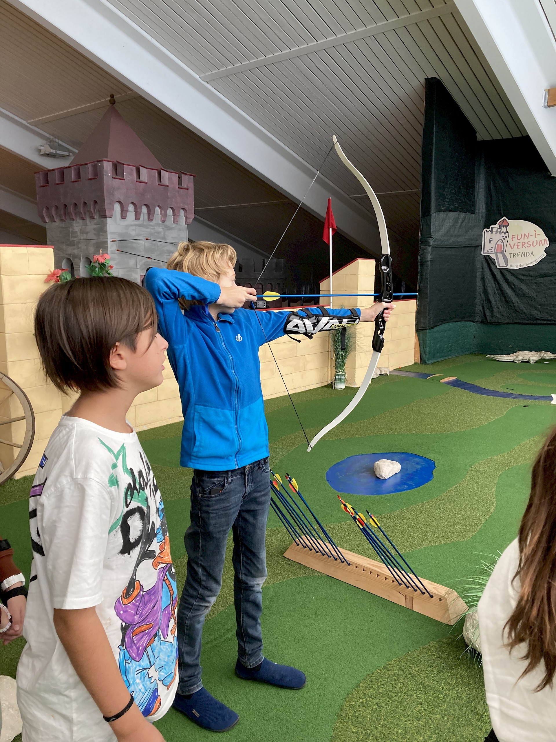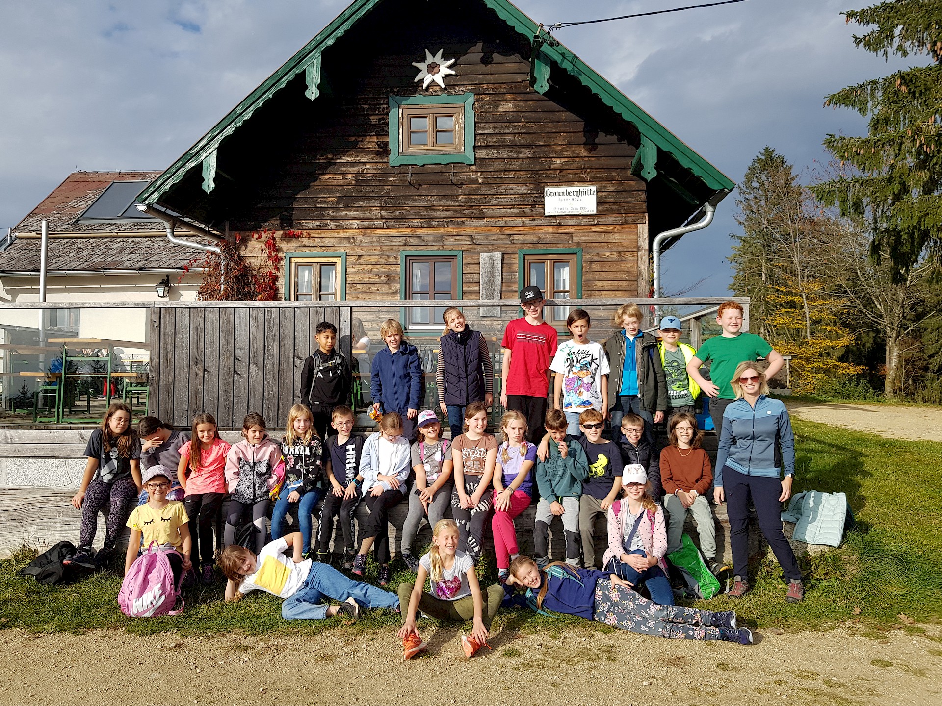 Wir vermissen dich sehr! Unsere Klasse ist in St. Oswald in der Burg der Begegnung. Das Essen schmeckt uns sehr und die Programmpunkte waren bis jetzt sehr lustig. Auf die Kennenlerntage haben wir uns schon soooo gefreut und konnten es kaum warten! Wir hoffen, es ist nicht zu leise in der Klasse. Falls ja, wir sind bald wieder da! Bei uns war es bei der Bogenschieß-Challenge auch sehr leise und wir mussten uns sehr konzentrieren. Es hat großen Spaß gemacht. Manche wurden sogar zum „Bärentöter“ geschlagen.