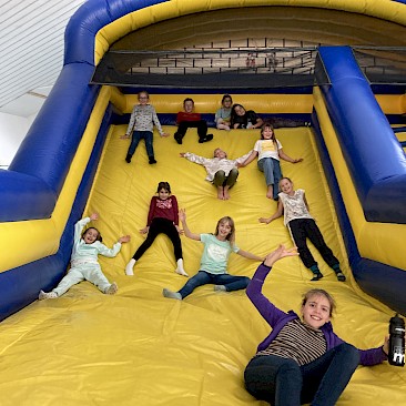 Wir hatten heute einen wundervollen Tag. Vor allem die Burgdisco war atemberaubend. Es gab tolle Musik und sogar eine Nebelmaschine. In den Betten haben wir gut geschlafen. Wir haben heute zwei Gemeinschaftsspiele gespielt, welche wir nach mehrmaligem Probieren gut gemeistert haben. Danach war Zeit zum Austoben in der Hüpfburg. Später gingen wir auf den Braunberg über die Quelle von Maria Bründl. Von 17 Uhr bis 18 Uhr haben wir Minigolf gespielt und nach dem Abendessen gab es die Burgdisco, auf die wir uns sehr gefreut haben. Und nun gehen wir ins Bett und freuen uns auf morgen.