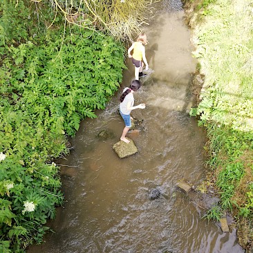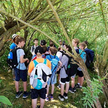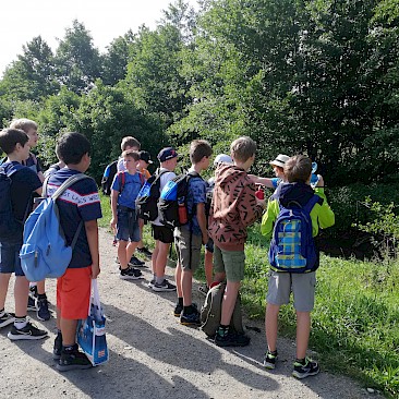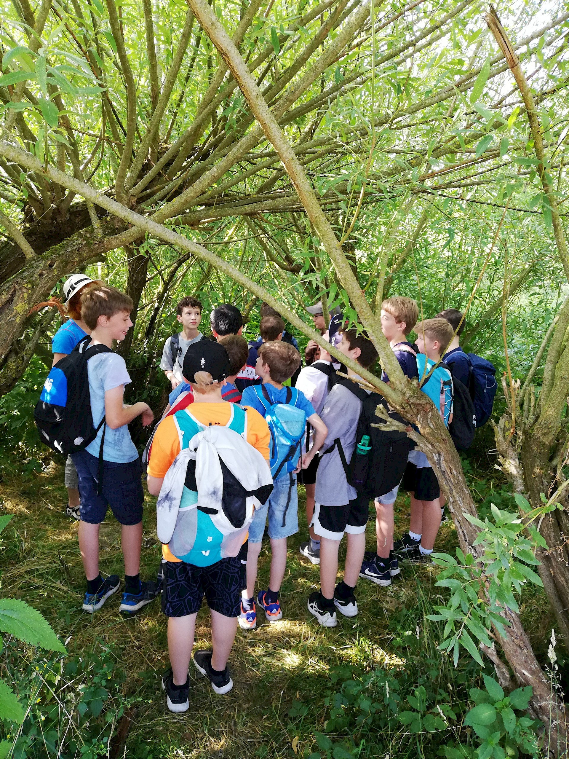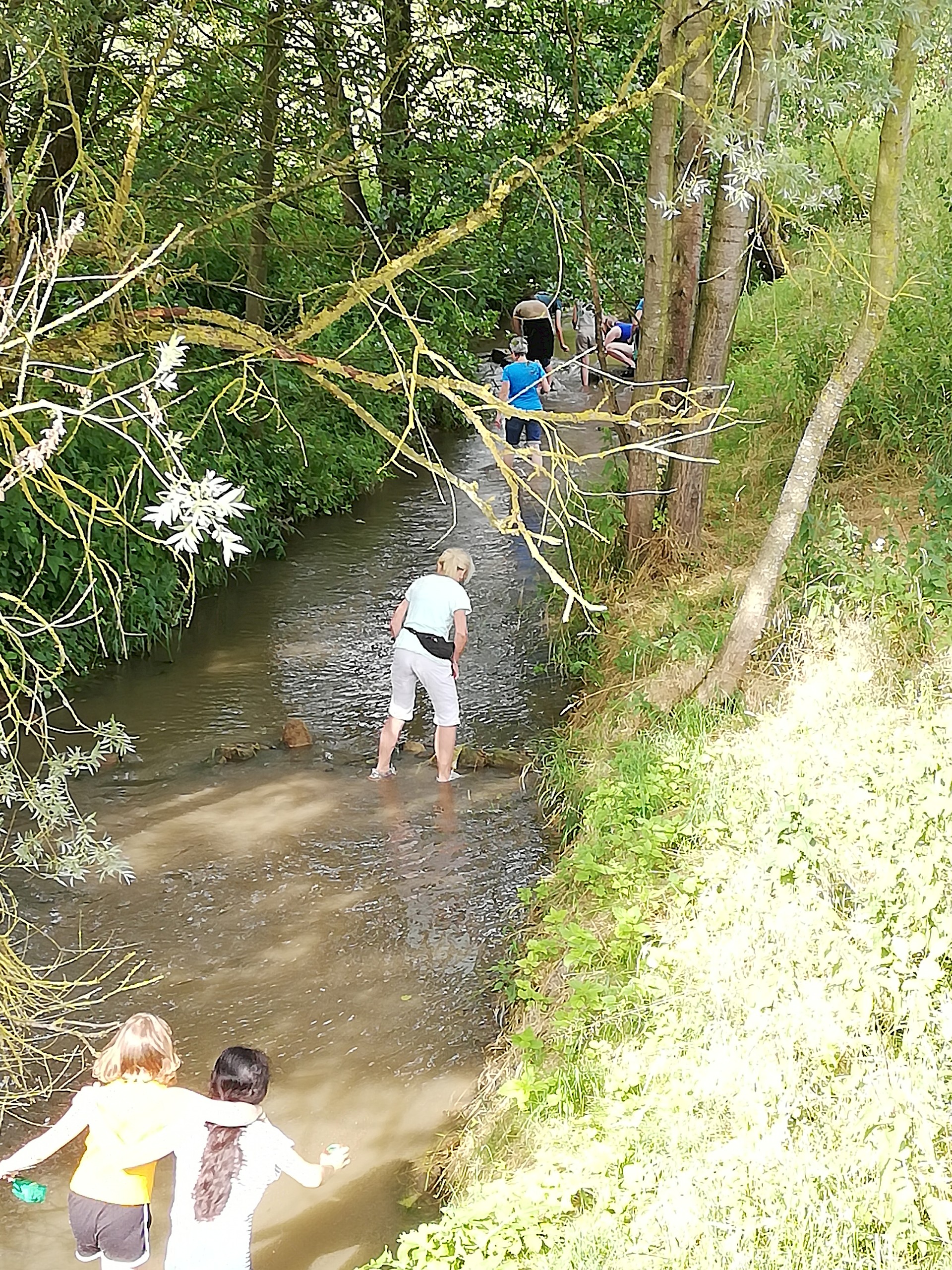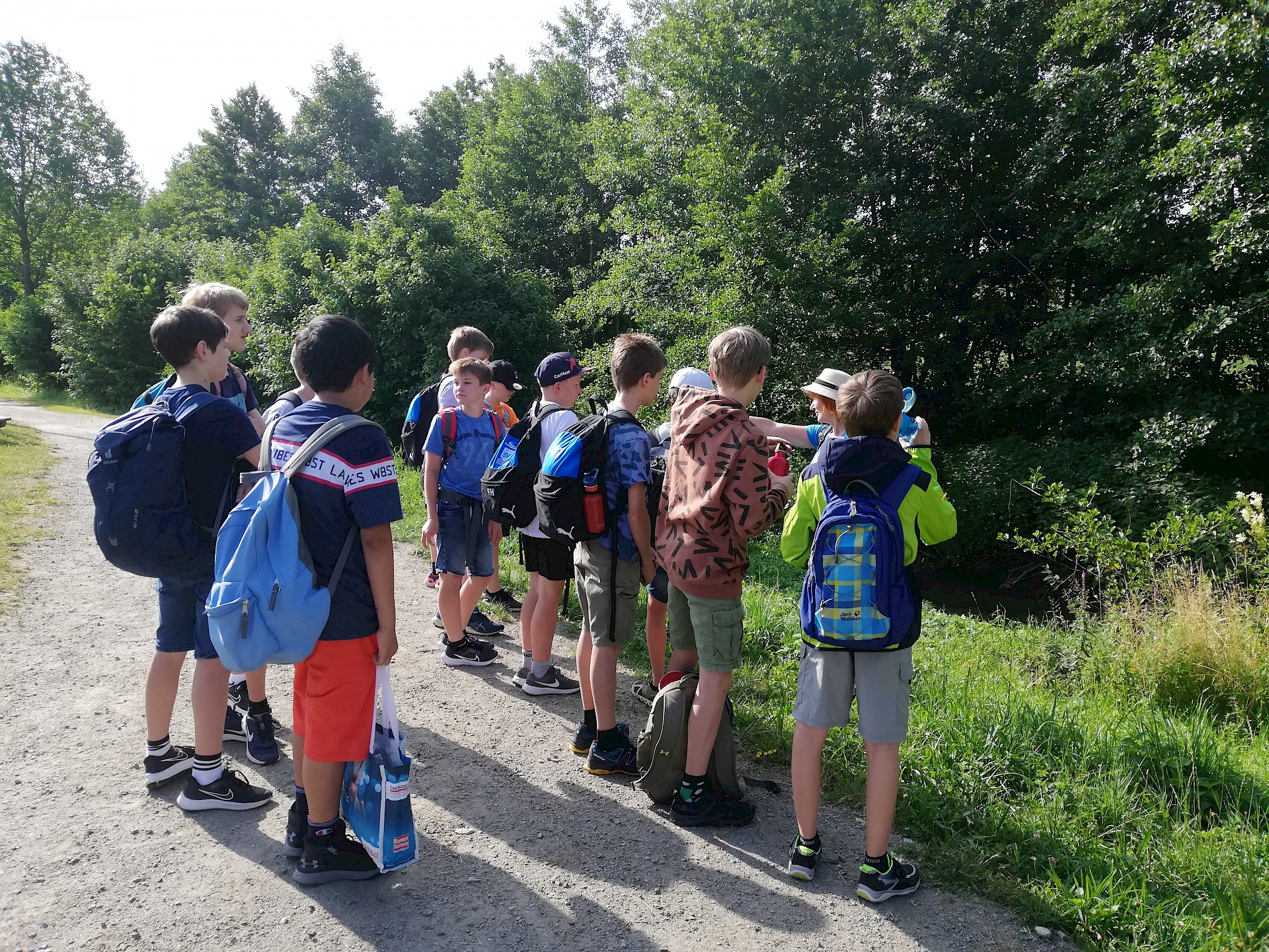 Naturparkranger entführten uns mit Becherlupe und Kescher an die Polsenz, dabei lernten wir den renaturierten Abschnitt der Polsenz kennen. Auf der Entdeckungsreise in den Lebensraum Fließgewässer beobachten wir die Tier- und Pflanzenwelt. Signalkrebse, Ringelnattern, Bachflohkrebse, Eintags- und Köcherfliegenlarven wurden dabei etwas genauer unter die Lupe genommen. Wir fragten uns, warum und wie sich Bäche im Laufe der Zeit verändern, wieso es Hochwasser gibt und warum es wichtig ist, dass Wasser sauber ist. Gemeinschaftsspiele und eine Einkehr beim Bäcker durften auch nicht fehlen.