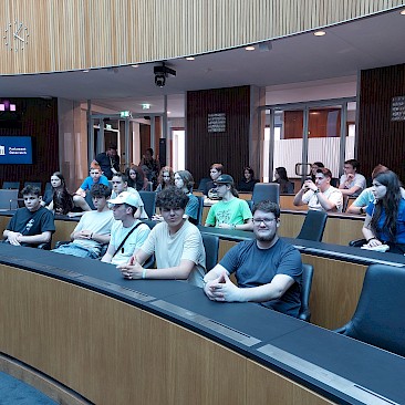 Der nächste Tag startete für unsere Klasse wie die restlichen Tage mit einem Frühstück. Gestärkt fuhren wir mit Öffis zum Küniglberg, um an einer besonderen Führung im ORF-Hauptsitz teilzunehmen, wo wir einen Blick hinter die Kulissen werfen und die aus dem Fernsehen bekannten Studios einmal aus einem anderen Blickwinkel betrachten konnten. Besonders die komplexe Technik und die riesigen Kameras waren faszinierend, denn dieser enorme Aufwand lässt sich im Fernsehen nicht erahnen. Darüber hinaus konnten bereits im Unterricht thematisierte Inhalte im Zuge der Führung vertieft und praktisch erprobt werden, was uns großen Spaß bereitete. Nach diesem Erlebnis ging es mit dem Besuch im Tiergarten Schönbrunn gleich zum nächsten Highlight der Woche. Nachdem wir uns dort alle Tiere angesehen hatten, aßen wir im Tirolerhof zu Mittag, bevor es weiter zum Schloss Schönbrunn mit seinem wunderschönen Park ging. Wetterbedingt wurde danach ein Programmpunkt getauscht und es ging zum Technischen Museum. Von alten Eisenbahnen bis zu neuwertigen technischen Meisterleistungen konnte man alles finden und dabei einige Experimente wagen und vieles dazulernen. Besonders spannend war die Ausstellung zum Thema „Medien“ im obersten Stockwerk des Museums. Wie so oft nutzten wir anschließend die U-Bahn, die sich im Verlauf der Woche immer wieder als nützlich erwies, um zum Hotel zurückzukommen.