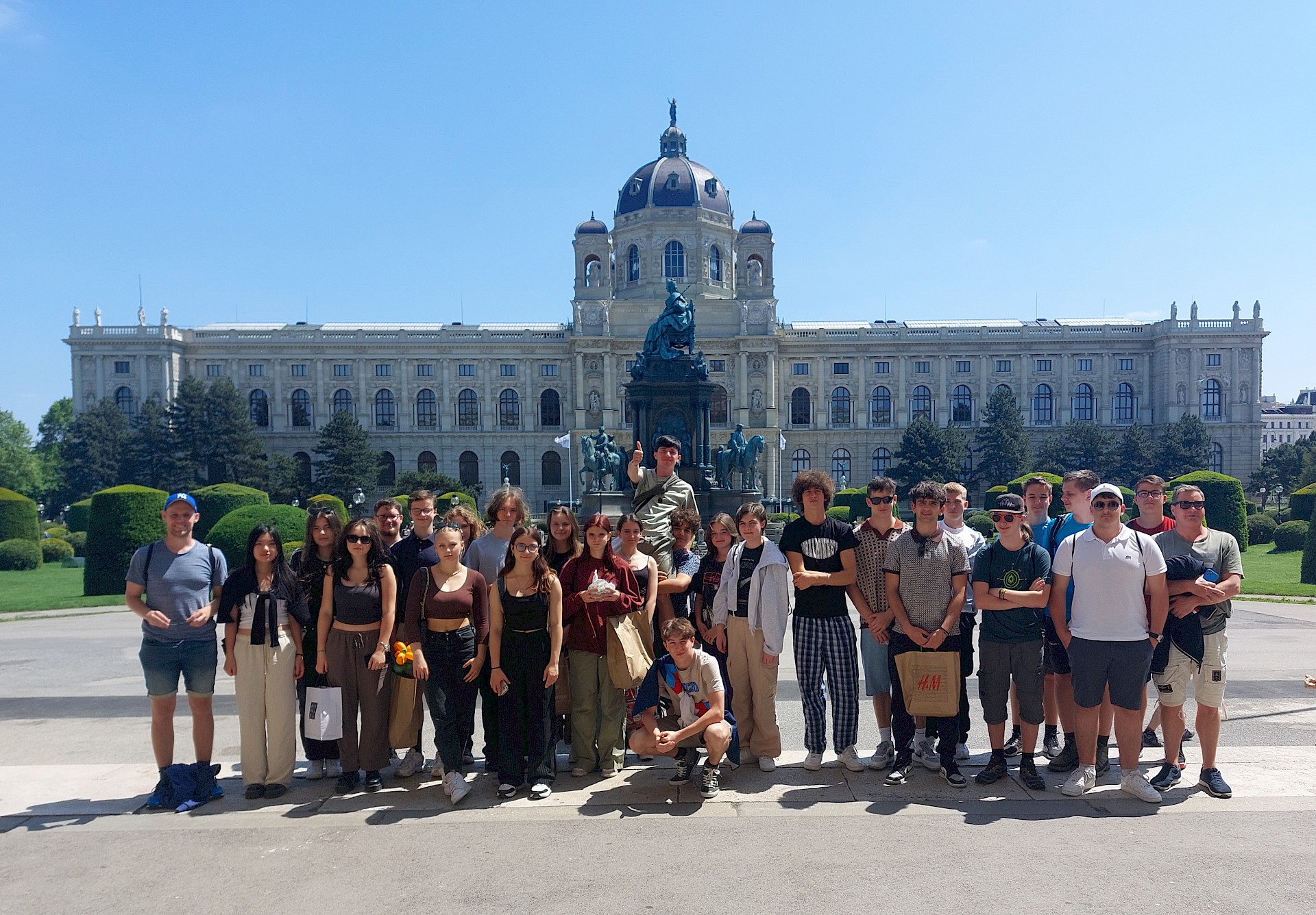 Am Montag, dem 22.5.2023 startete die 6B mit Herrn Prof. Söllinger, Frau Prof. Söllinger und Herrn Prof. Eberle in die langersehnte Wienwoche. Wir stiegen um 8.20 Uhr am Welser Hauptbahnhof in den Zug ein und kamen eineinhalb Stunden später in Wien an. Nachdem wir unsere Zimmer im Hotel Resonanz, welches sich im zweiten Bezirk befand, bezogen hatten, besuchten wir die Uni Wien und durften anschließend das Parlament besichtigen. Beide Gebäude sind architektonisch herausragend, besonders die imposanten Marmorsäulen im Parlament sind beeindruckend. Danach spazierten wir durch den wunderschönen Volksgarten, entspannten uns etwas und staunten über die Vielzahl an Geschäften, die wir hinterher in der Kärntner Straße vorfanden. Dort bekamen wir auch die Gelegenheit, in einem der vielen Restaurants zu essen. Mit Snacks beladen machten wir uns dann auf den Weg zum Burggarten, um dort ein Picknick zu veranstalten und den sommerlichen Tag ausklingen zu lassen.