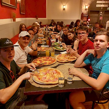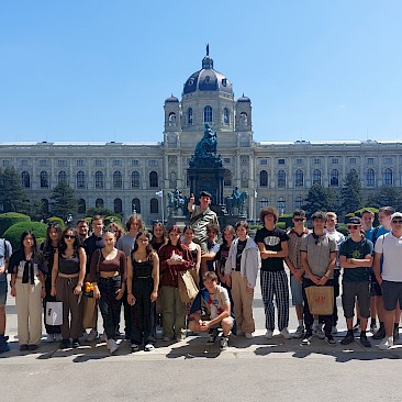Am Donnerstag begaben wir uns auf eine Shoppingtour in die bekannte Mariahilfer Straße. Vom Maria-Theresien-Platz aus ging es dann anschließend weiter in das Naturhistorische Museum, welches jeden von uns mit seiner Vielfalt an Tieren begeistern konnte. Da es die Zeit erlaubte, statteten wir dem Zwillingsgebäude, dem Kunsthistorischen Museum, direkt gegenüber ebenfalls einen Besuch ab. Dort gelang es uns, einige Bilder zu finden, die uns aus dem Deutschunterricht bereits bekannt waren. Ein weiterer Programmpunkt war „Time Travel“, eine Art Ausstellung mit integriertem 5-D-Kino, bei der wir eine Zeitreise durch die Geschichte Wiens erlebten. Herr Prof. Söllinger führte uns außerdem zu seiner Lieblingspizzeria L’Osteria, in der wir zu Abend aßen und uns beim Essen der sehr großen und vor allem leckeren Pizzen über die Erlebnisse des Tages unterhielten.