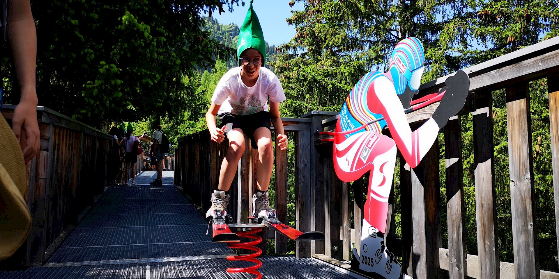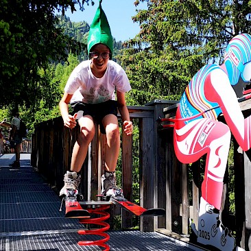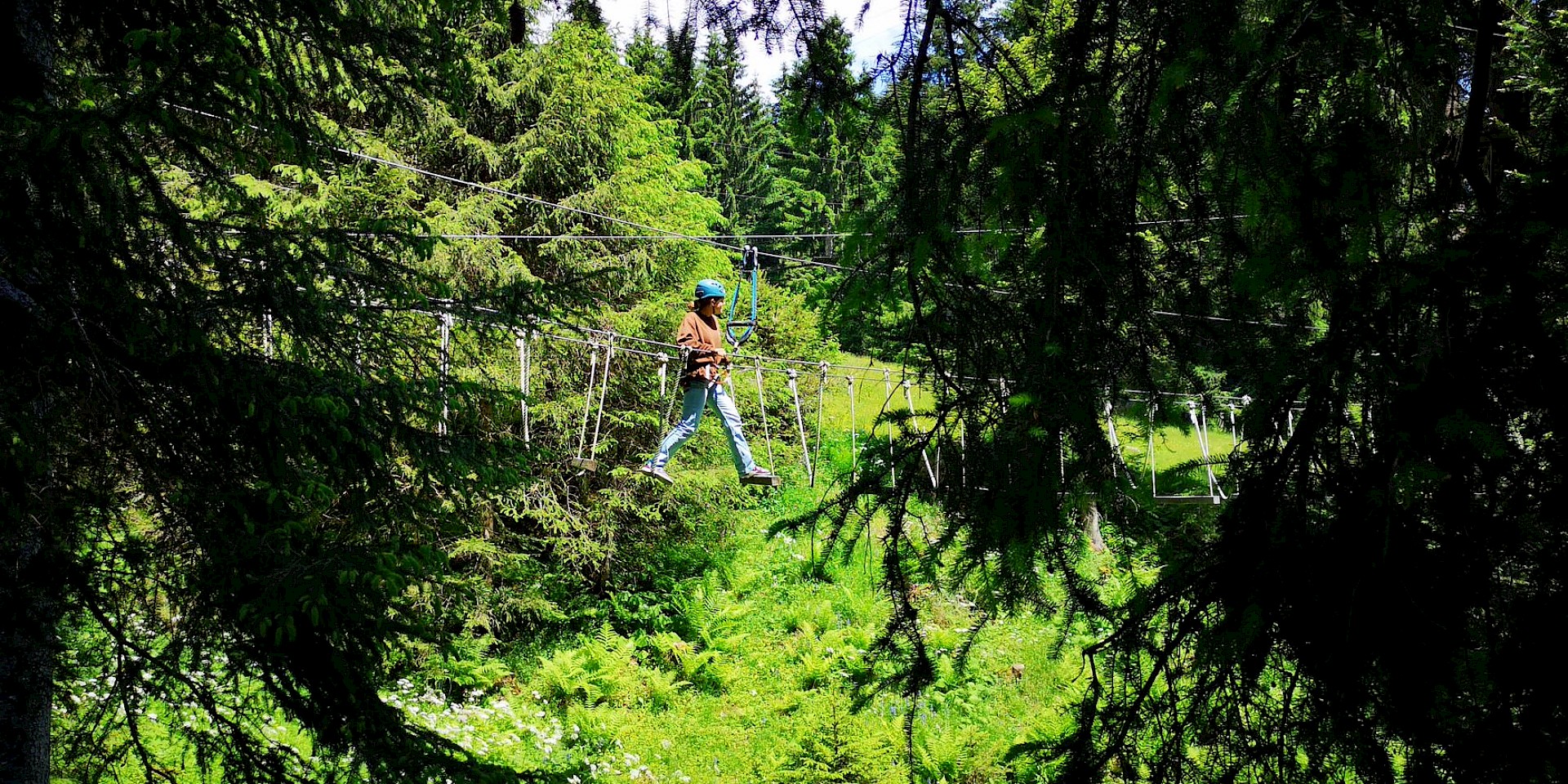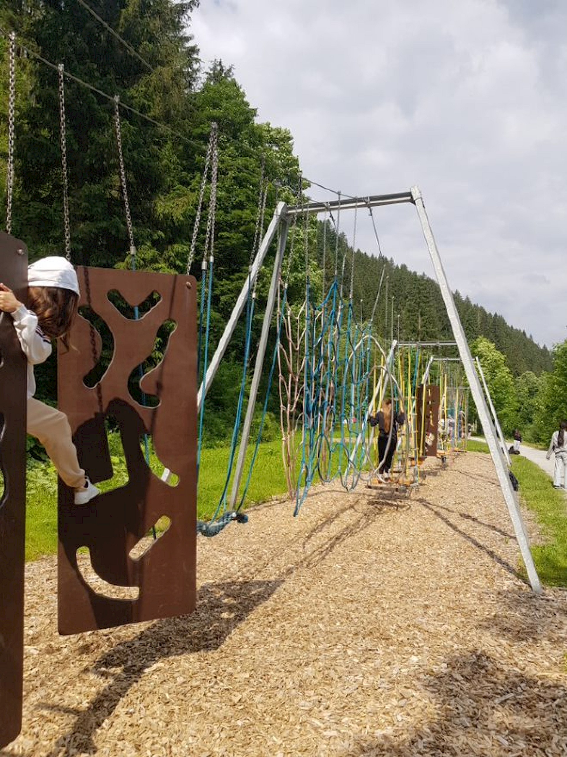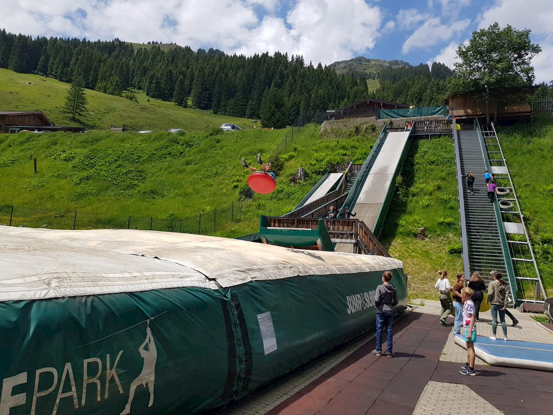 Der Besuch des höchstgelegenen Wipfelwanderwegs Europas – Baumzipflweg genannt – war ein Erlebnis und die Golden Gate Brücke der Alpen im Talschluss bot einen beeindruckenden Blick auf die umliegenden Berge. Die Überquerung der 42 Meter hohen Brücke kostete dem einen oder anderen „Zwerg“ aber auch Überwindung und Mut. Wer die Augen dabei allerdings offen hielt, erhaschte bereits einen Blick auf das Highlight dieser Woche: den größten Hochseilpark Europas inklusive Jump&Slide Park. Es wurde gerutscht, gehüpft, geklettert, was das Zeug hielt. In den Pausen und auch beim Toilettenbesuch (siehe Foto) hatten wir dabei stets tierische Gesellschaft.