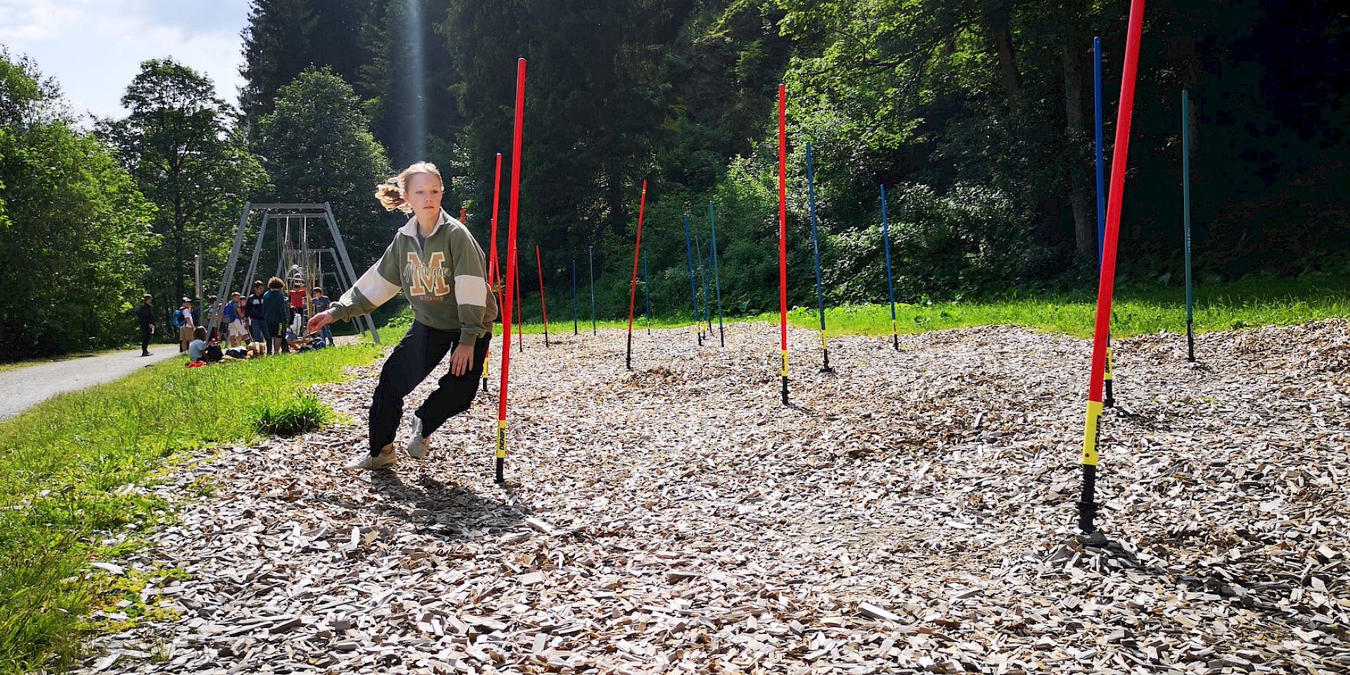 Beim letzten Programmpunkt konnten alle noch einmal ihre Geschicklichkeit unter Beweis stellen und im Motorikpark in einem freundschaftlichen Wettkampf gegeneinander antreten. An fünf Stationen (Slalomlauf, Durchschlüpfen, Military Parcours, Motorikpark, Boxjump) wurden die jeweils schnellsten/stärksten Schüler:innen ermittelt.