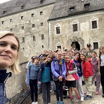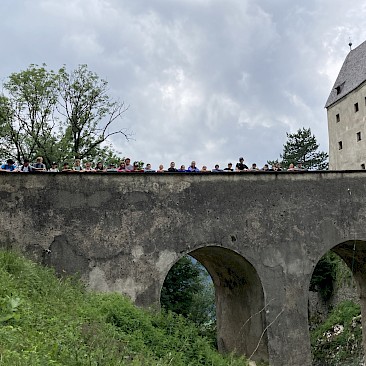 Am Dienstag, dem 2.7.2024 machten wir uns auf zu einer Reise ins Mittelalter. Das Wandern waren wir vom Vortag schon gewohnt und so hieß es erneut „aufi aufn Berg“.