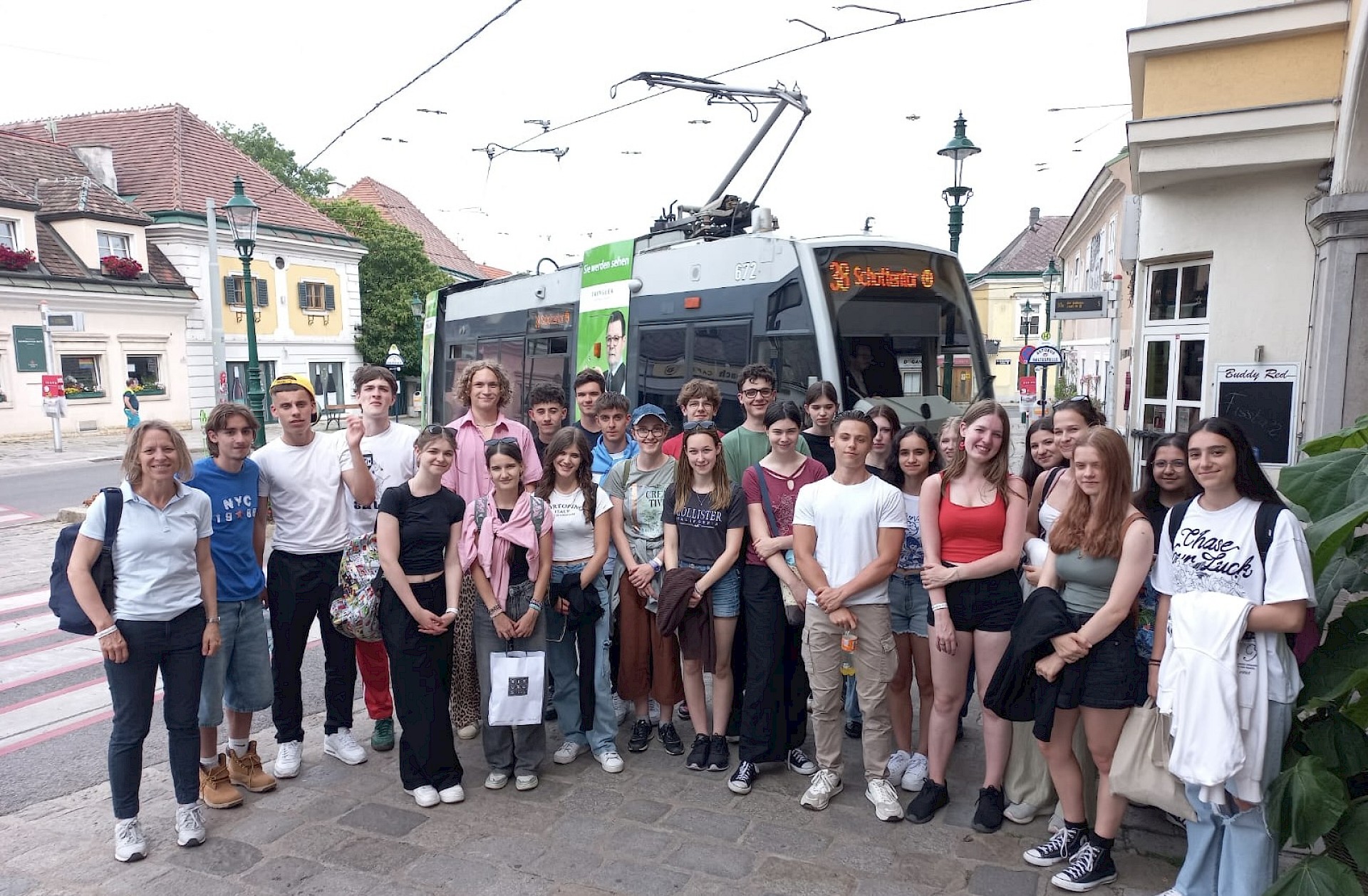 Am Montag in der Früh fuhren wir, die 7N-Klasse, begleitet von unserer Klassenvorständin Mag. Ulrike Tusek und Herrn Mag. Wolfgang Zechmeister, mit dem Zug nach Wien. Am Hauptbahnhof angekommen bezogen wir das nahegelegene Hostel „a&o Wien Hauptbahnhof“ und machten uns bereit, um den ersten Programmpunkt zu absolvieren, einen Spaziergang vom Kahlenberg nach Grinzing. Nach ausführlicher Beschreibung der Aussicht von Frau Prof. Tusek und einem Gruppenfoto ging es zu Fuß bergab nach Grinzing, dem Abendessen in der L`Osteria entgegen. Um 22 Uhr folgte das Highlight des Tages, die Führung im Zoo Schönbrunn bei Nacht. Mit Nachtsichtgeräten ausgestattet ging es los in die Dunkelheit. Elefanten, Pinguine, Robben, Tiger und Koalas durften bestaunt werden. Nach diesem ereignisreichen Tag ließ es sich auch im sehr heißen Hotelzimmer gut schlafen.