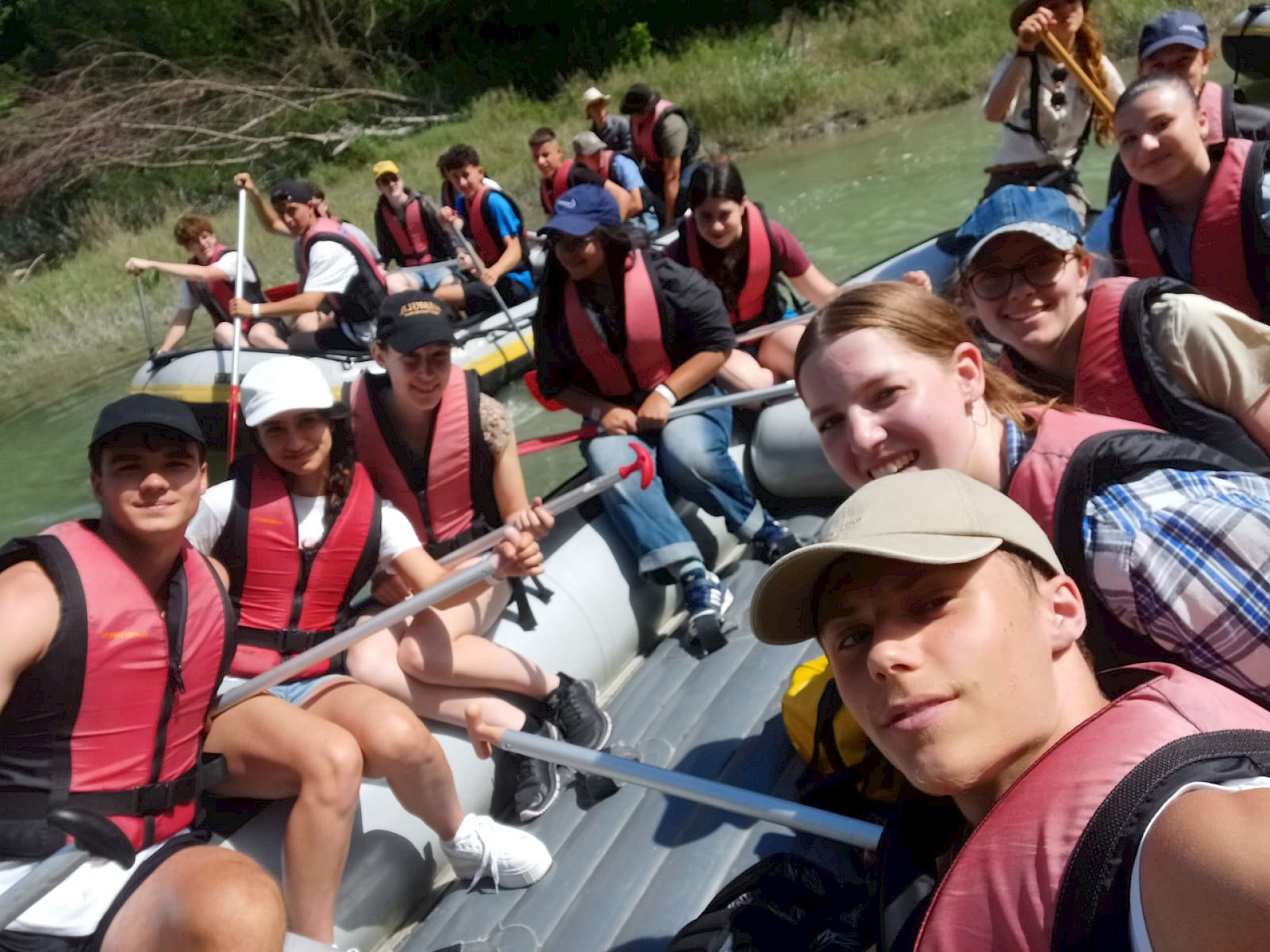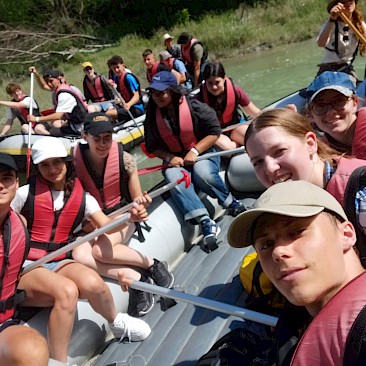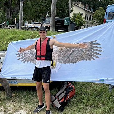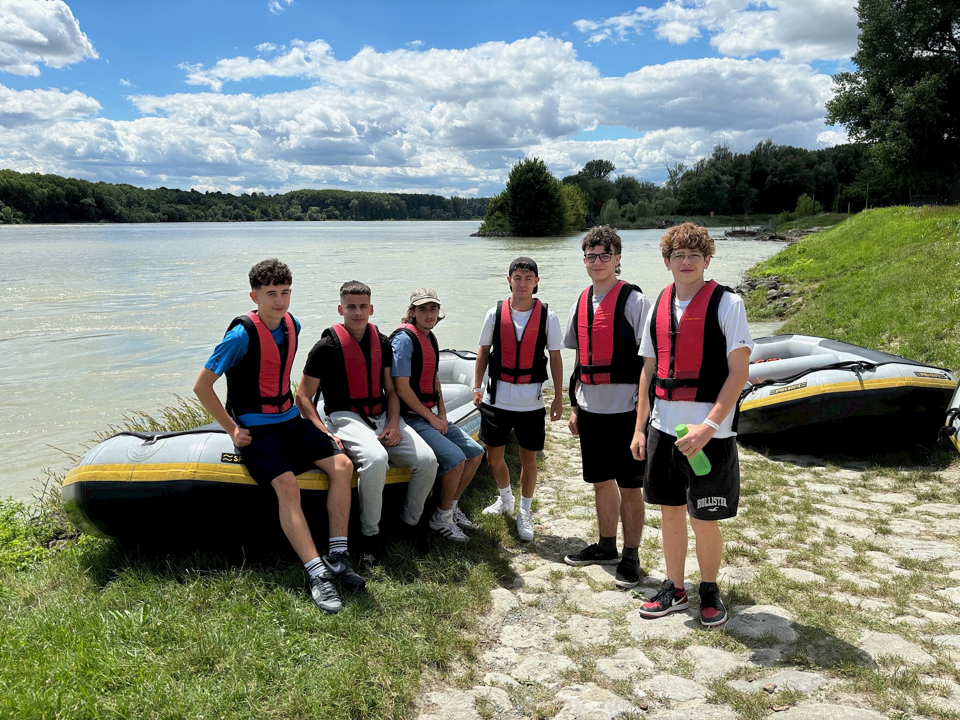 Mit einer ordentlichen Portion Schlafmangel ging es um 9 Uhr los zum Nationalpark Donauauen. Mit U-Bahn, Bus und einem kurzen Stück zu Fuß kamen wir schlussendlich bei der Donau an. Dort bekamen wir eine kurze theoretische Einweisung in das Paddeln und in den Nationalpark Donauauen mit seiner reichhaltigen Flora und Fauna und dem „Star des Nationalparks“, dem Seeadler. Anschließend wurden wir auf drei Schlauchboote aufgeteilt und paddelten in einen Seitenarm der Donau. Dort erfuhren wir vom Nationalpark Ranger dann Interessantes zu Biber, Hirschen und sogar Schildkörten und lieferten uns am Ende der Tour ein Wettrennen. Am Abend durften wir noch im Alten AKH dem Public Viewing der EM 2024 beiwohnen.