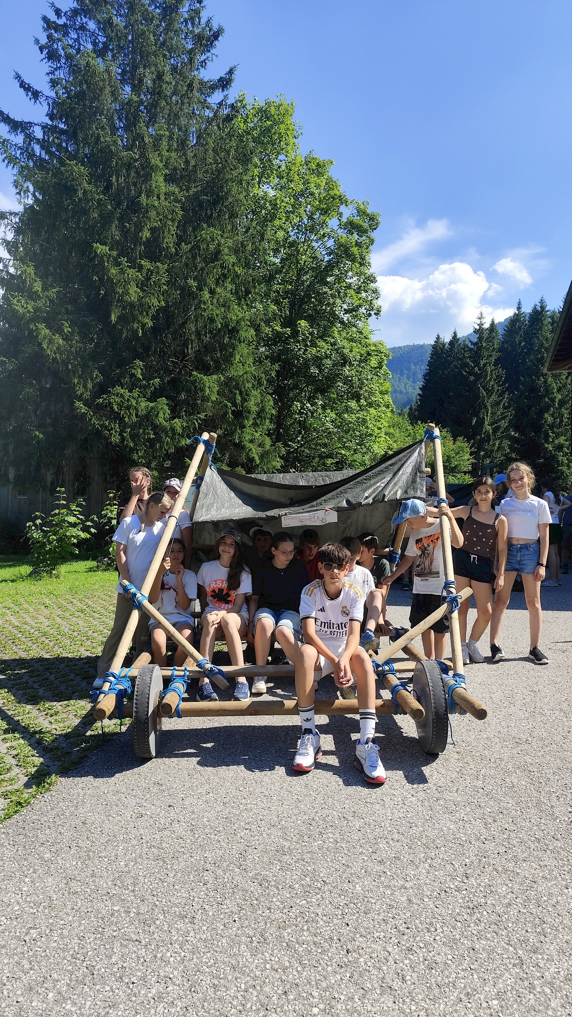 Ein besonderes Highlight war das Teambuilding-Projekt „Flintstones-Autobau“. Mit viel Kreativität, Zusammenarbeit und handwerklichem Geschick gelang es den Schülerinnen und Schülern, gemeinsam ein fahrbares Gefährt zu konstruieren – und natürlich auch erfolgreich auszuprobieren.
