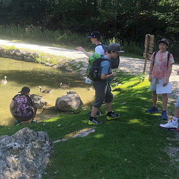Auch Ausflüge in die Natur durften nicht fehlen: Beim Besuch des Cumberland Wildparks konnten die Kinder zahlreiche Tiere aus nächster Nähe erleben. Eine willkommene Abkühlung gab es im Almsee, wo die Klasse anschließend noch ausreichend Zeit zum Entspannen und Plaudern hatte.