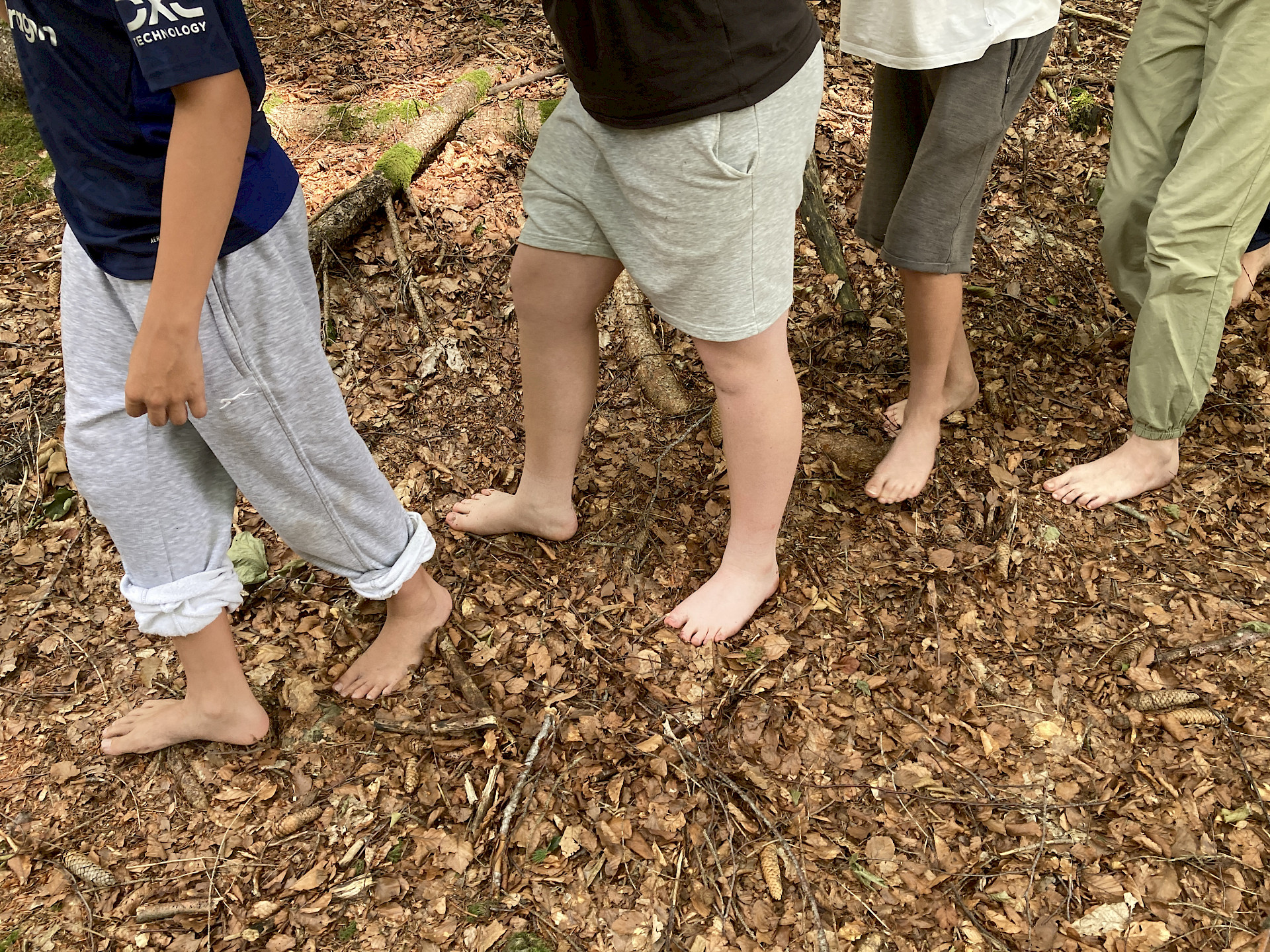 Der Wald wurde dabei mit allen Sinnen erlebt: Wir lauschten den Geräuschen der Natur, erfühlten Materialien des Waldes und gestalteten daraus kleine Kunstwerke. Diese kreative Arbeit stärkte nicht nur unsere Wahrnehmung, sondern auch das Gemeinschaftsgefühl der Klasse. Nach dem Mittagessen wartete ein abwechslungsreiches Nachmittagsprogramm: Gemeinsam bauten wir eine Kugelbahn aus Naturmaterialien und stellten uns einer besonderen Herausforderung – barfuß und mit verbundenen Augen einem Seil durch den Wald zu folgen. Für manche war das eine große Überwindung, für alle aber ein spannendes Erlebnis. Ein Highlight des Tages war das Spiel „Wo ist der Waldvogel?“, eine abgewandelte Form des bekannten „Hase läuft über das Feld“. Mit viel Lachen und Bewegung verging der erste Tag wie im Flug. Am Abend stand die Gemeinschaft erneut im Mittelpunkt: Ob bei Gesellschaftsspielen, einem lockeren Volleyballspiel oder einem Spaziergang über das Gelände – die Kinder konnten die Ruhe und die besondere Atmosphäre des Böhmerwaldes genießen.