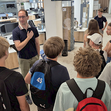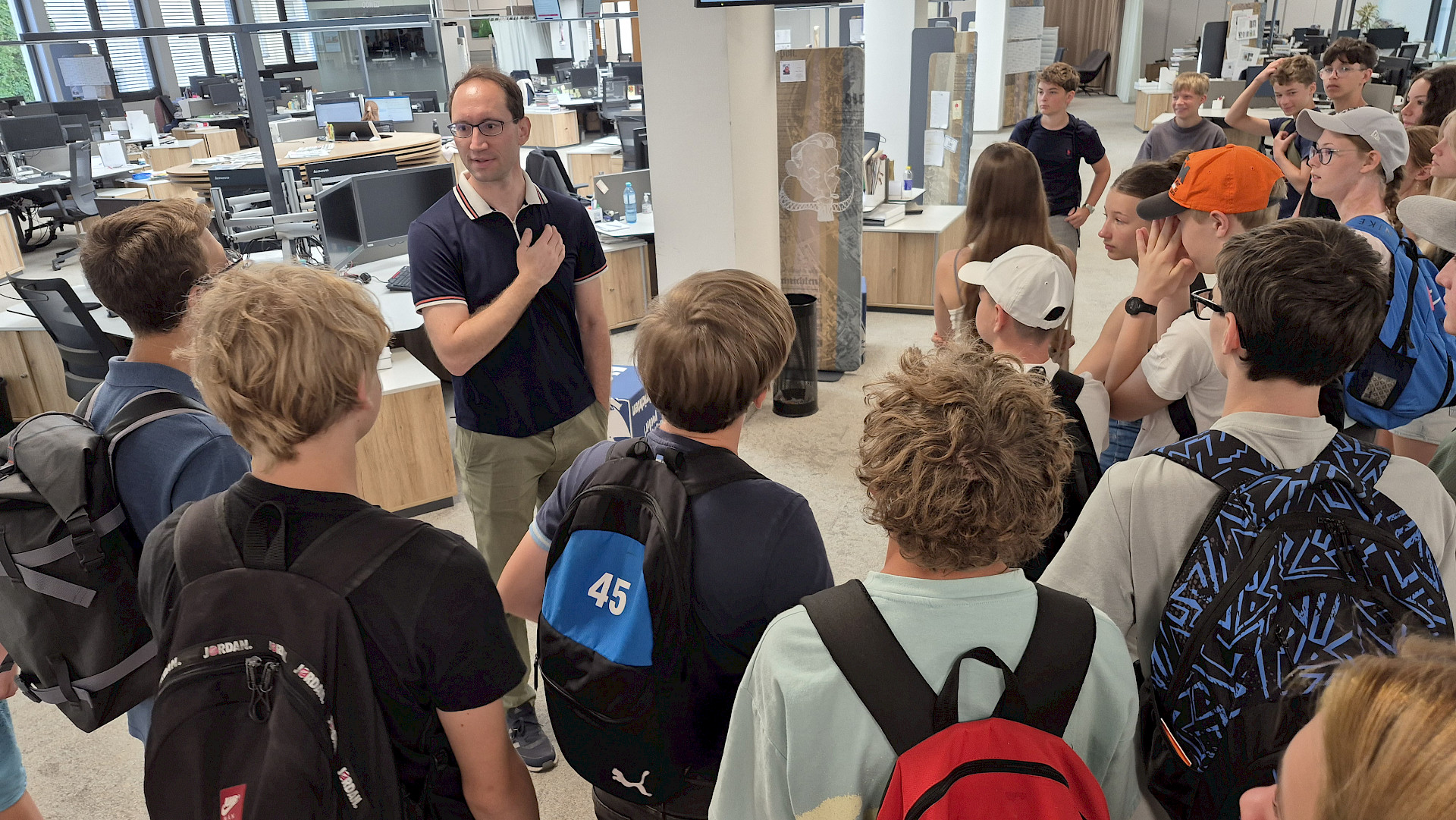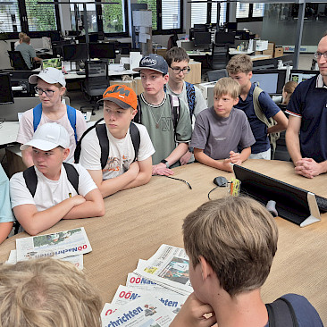 In einer kurzweiligen Führung gab er einen guten Eindruck über das Leben als Redakteur, über die Eckpfeile eines guten Journalismus und den Ablauf, bis eine Zeitung fertiggestellt ist und zum Drucken freigegeben werden kann.