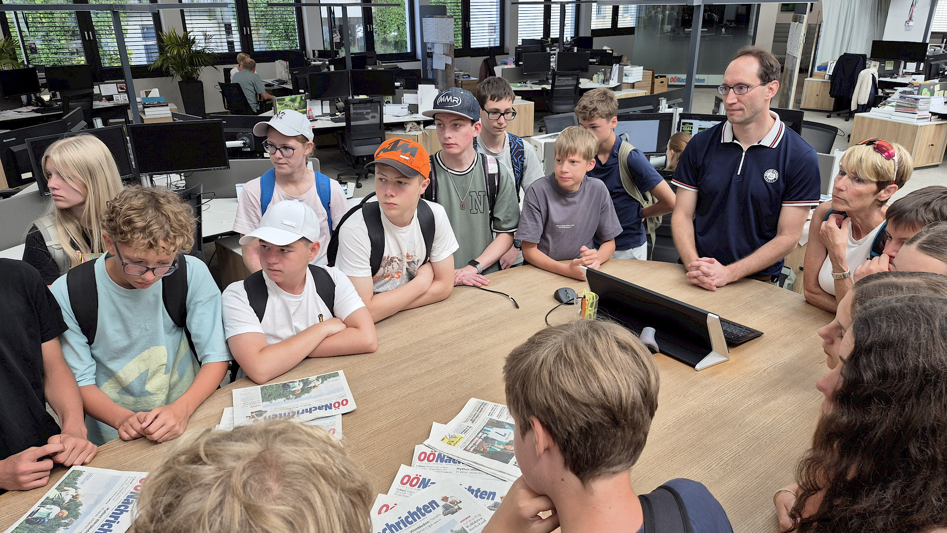 Am Montag, dem 30. Juni 2025, bekam die 4NA Klasse eine Extraführung bei den OÖ Nachrichten. Ermöglicht hat uns das Herr Mag. Alexander Zens, stellvertretender Ressortleiter Wirtschaft, ehemaliger Absolvent des Brucknergymnasiums und Vorstandsmitglied des Absolventenvereins BrAve.