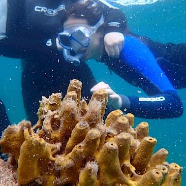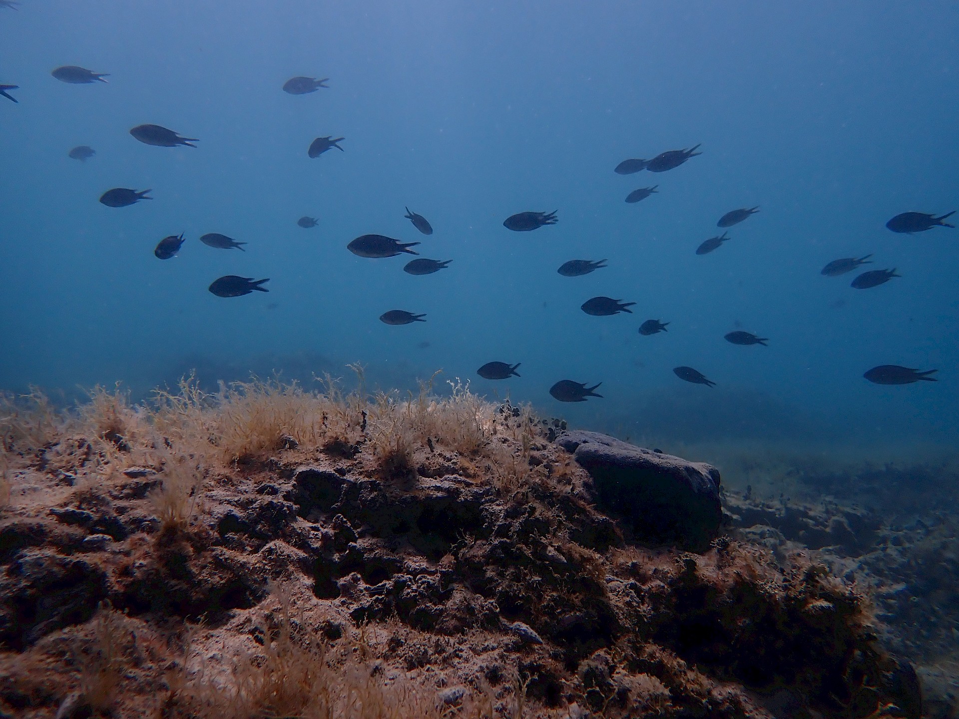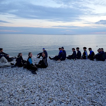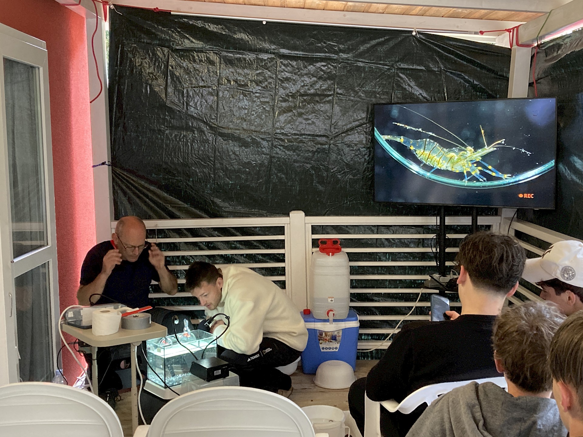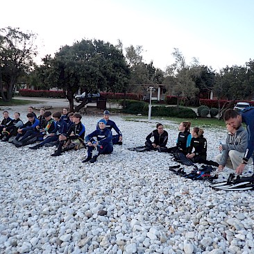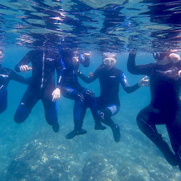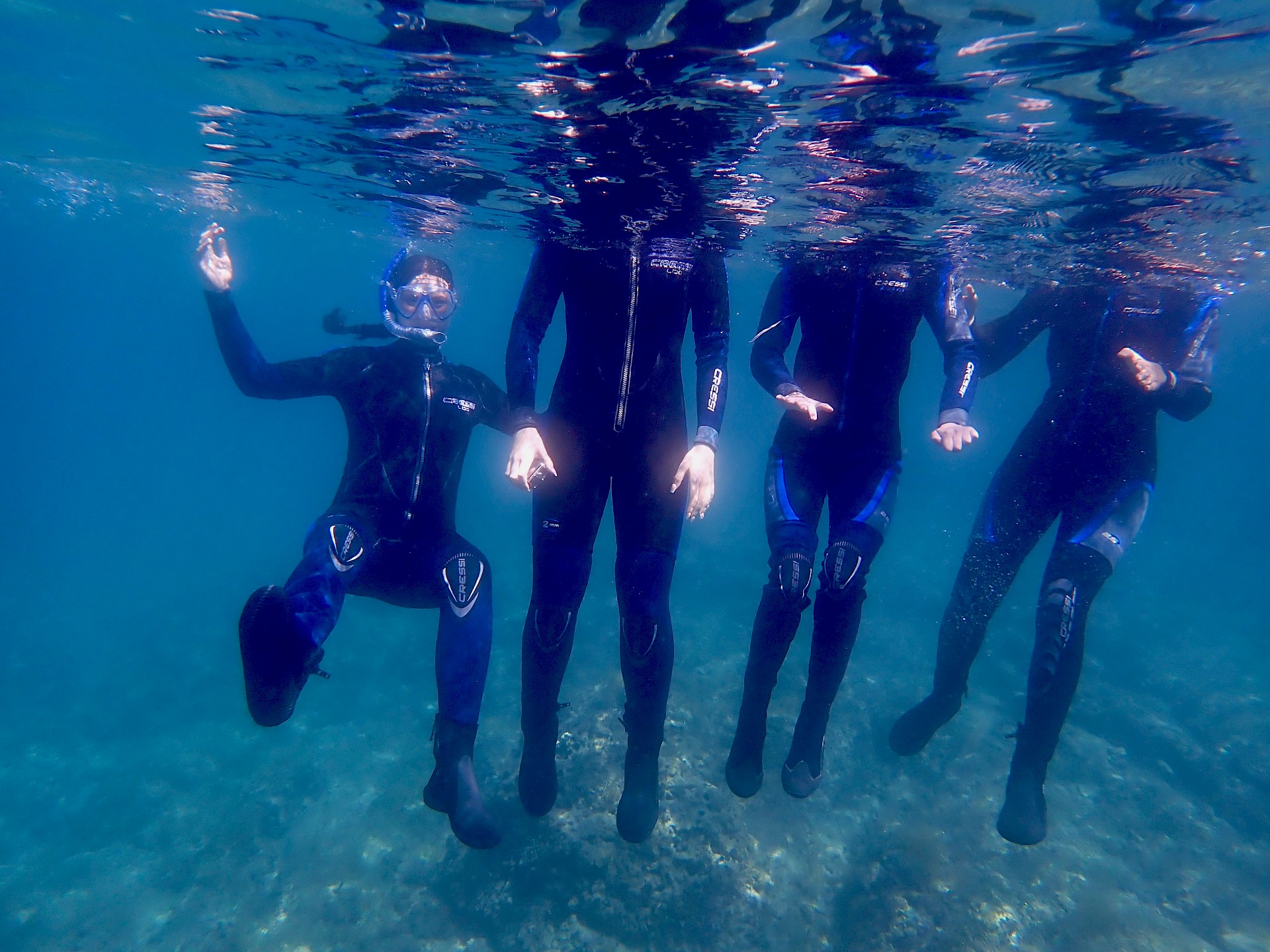 Mit Freitag war leider auch schon der letzte Schnorcheltag gekommen. Wir haben uns um 9:00 Uhr mit Stühlen vor dem Mobilehome der Betreuer getroffen, wo die Gewinner des täglichen Fischlottos ihre Preise bekamen, im Anschluss wurde dann die letzte Runde Fischlotto gespielt. Danach haben wir uns die Fotos angeschaut, die im Laufe der Woche entstanden sind. Zu jedem bekamen wir Informationen, sei es darüber, wie und wann das jeweilige Foto entstanden war, oder zu den Tieren, die man darauf sehen konnte. Frau Professor Stöffler hat in einer Artenliste alles beobachteten Arten auf den Fotos mitnotiert: Wir kennen nun tatsächlich 75 Arten des Mittelmeeres beim Namen und können diese beim Schnorcheln erkennen. Eigentlich unglaublich, wie schnell man im Mittelmeer Artenkenntnis aufbauen kann. Als wir damit fertig waren, zogen wir alle unsere Neoprenanzüge an und machten uns auf den Weg zu unserem vorletzten Schnorchelausflug. Während diesem haben wir wieder die verschiedensten Lebensräume und -formen gesehen. Danach hatten wir den ganzen Nachmittag bis zum Abendessen um 18:30 Uhr Freizeit, in der wir die Mobilehomes bereits weitgehend zusammenräumen mussten. Zum Abschluss gingen wir noch mit Taschenlampen ausgestattet Nachtschnorcheln, was für alle ein ganz besonderes Erlebnis war. Wir sahen einen Oktopus und schlafende Fische, eine Sepia und bemerkten, dass die Unterwasserwelt in der Nacht auch voller Leben ist!