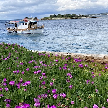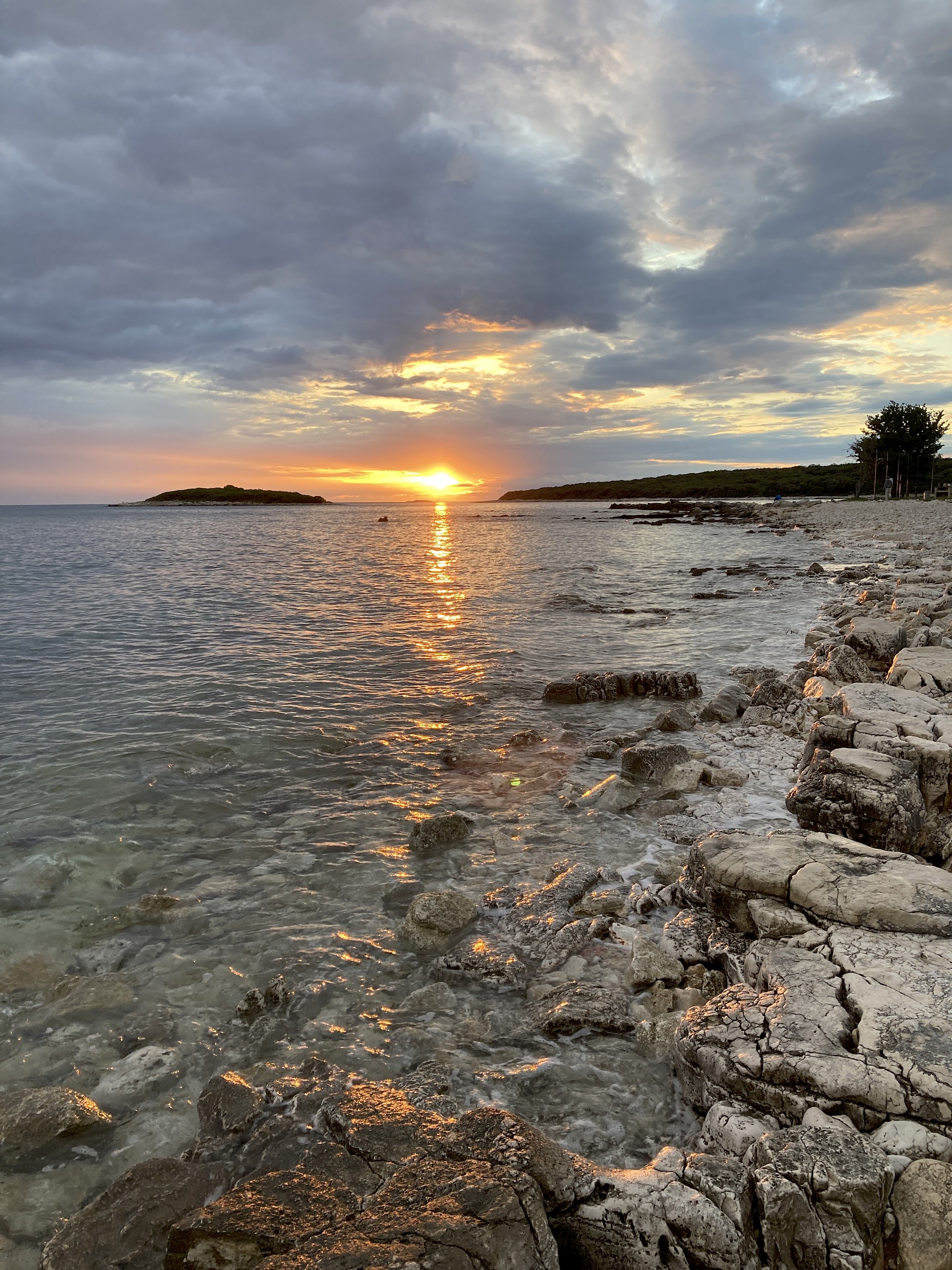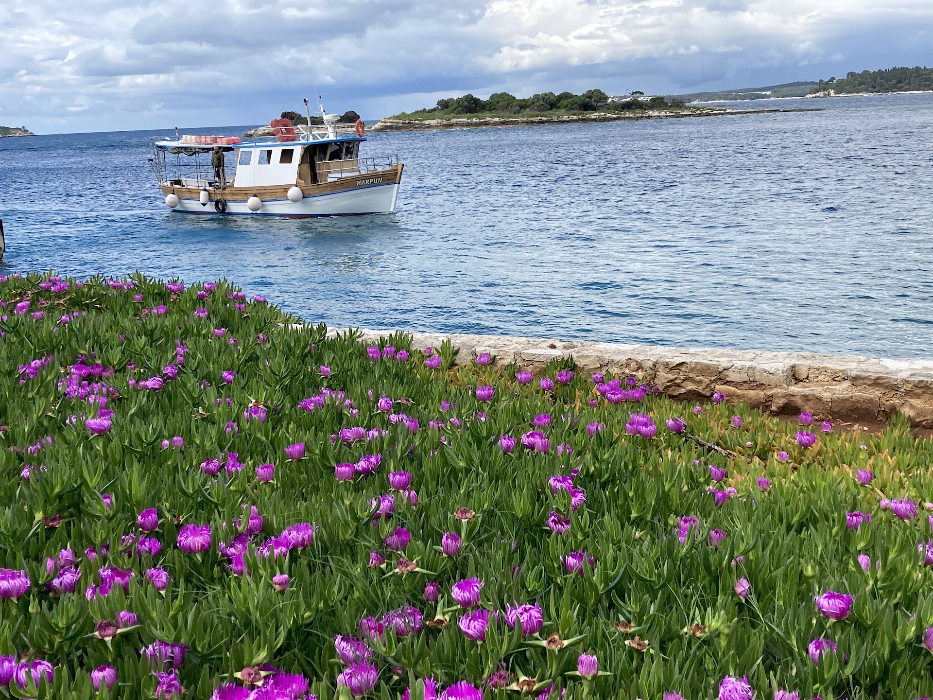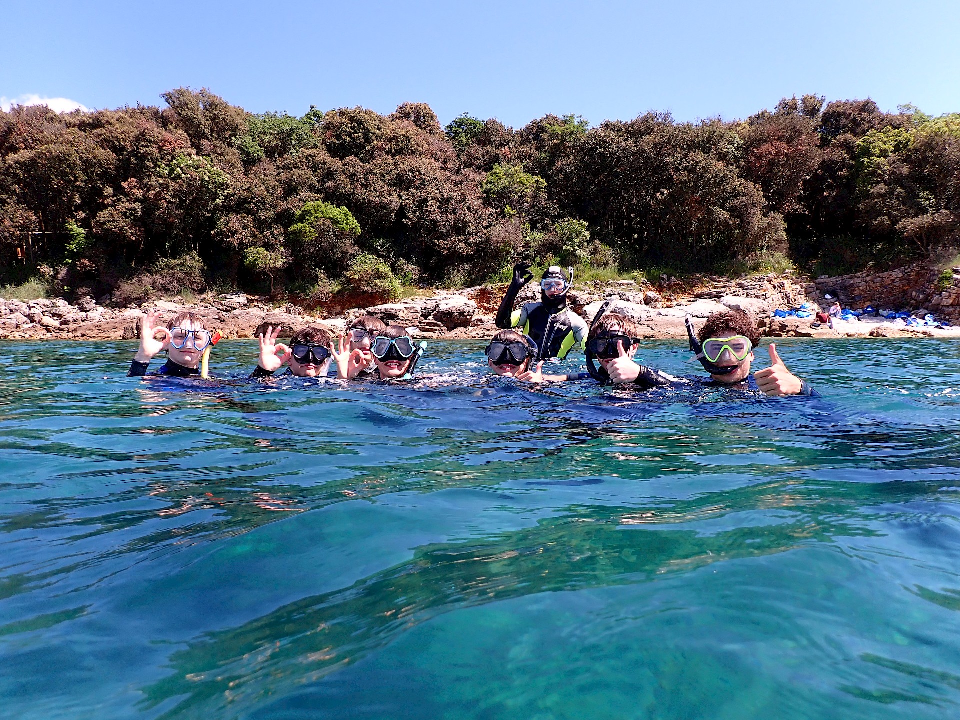 Am Donnerstag fing der Tag erst um 9:30 Uhr an. Wir sind zu Fuß zum Bus gegangen und von dort aus weiter zum Hafen nach Rovinj gefahren. Dort wartete schon ein Boot auf uns, welches uns auf die Insel Sv. Andrija gebracht hat. Die Einheimischen nennen sie auch die „Rote Insel“. Dort angekommen, mussten wir feststellen, dass die Wellen an der ursprünglich geplanten Schorchelbucht zu hoch waren. Deshalb sind wir auf die Nebeninsel zu einer geschützteren Stelle gewandert. Die Hälfte der Klasse hat sich die Neoprenanzüge angezogen und ist ins Meer gegangen. An diesem Tag sind sessile, also an einem Ort festgewachsene Tiere im Fokus gestanden. Wir konnten viele von diesen Tieren beobachten, zum Beispiel den Goldschwamm und den Lederschwamm aber auch Kalkröhrenwürmer. Die andere Gruppe erkundete währenddessen die Küste und beobachtete Tiere wie Einsiedlerkrebse, Strandschnecke und Meertomaten. Nach einer einstündigen Mittags- und Aufwärmpause haben wir uns gemeinsam die Funde angesehen und mithilfe eines Arten-Skriptums versucht diese zu bestimmen. Mit dem Boot sind wir später wieder nach Rovinj gefahren und von dort, nach einer kurzen Pause zum Eisessen, zurück zum Campingplatz. Dann hatten wir noch etwas Zeit uns zum Abendessen fertig zu machen. Nach dem Abendessen gab es für den Großteil der Klasse noch ein spannendes Volleyballspiel gemeinsam mit Betreuern und Betreuerinnen der Meeresschule.