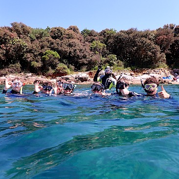 Dann ging es auch schon ins Wasser. Wir haben vor der Mittagspause noch eine Stunde geschnorchelt, aber so richtig spannend wurde es erst nach der Mittagspause. Wir sind zu der Bucht ,,Pirates Bay‘‘ spaziert und haben dort geschnorchelt. Die Bucht war absolut klar und der Lebensraum von vielen interessanten Fischen wie z.B. Schleimfische, Mönchsfische und auch andere Tierarten, welche wir schon am Tag zuvor kennenlernen durften. Nach dem Abendessen haben wir noch einen kleinen, etwas regnerischen Ausflug in die Stadt Rovinj gemacht, um den Abend in den Straßen des Küstenstädtchens ausklingen zu lassen.