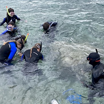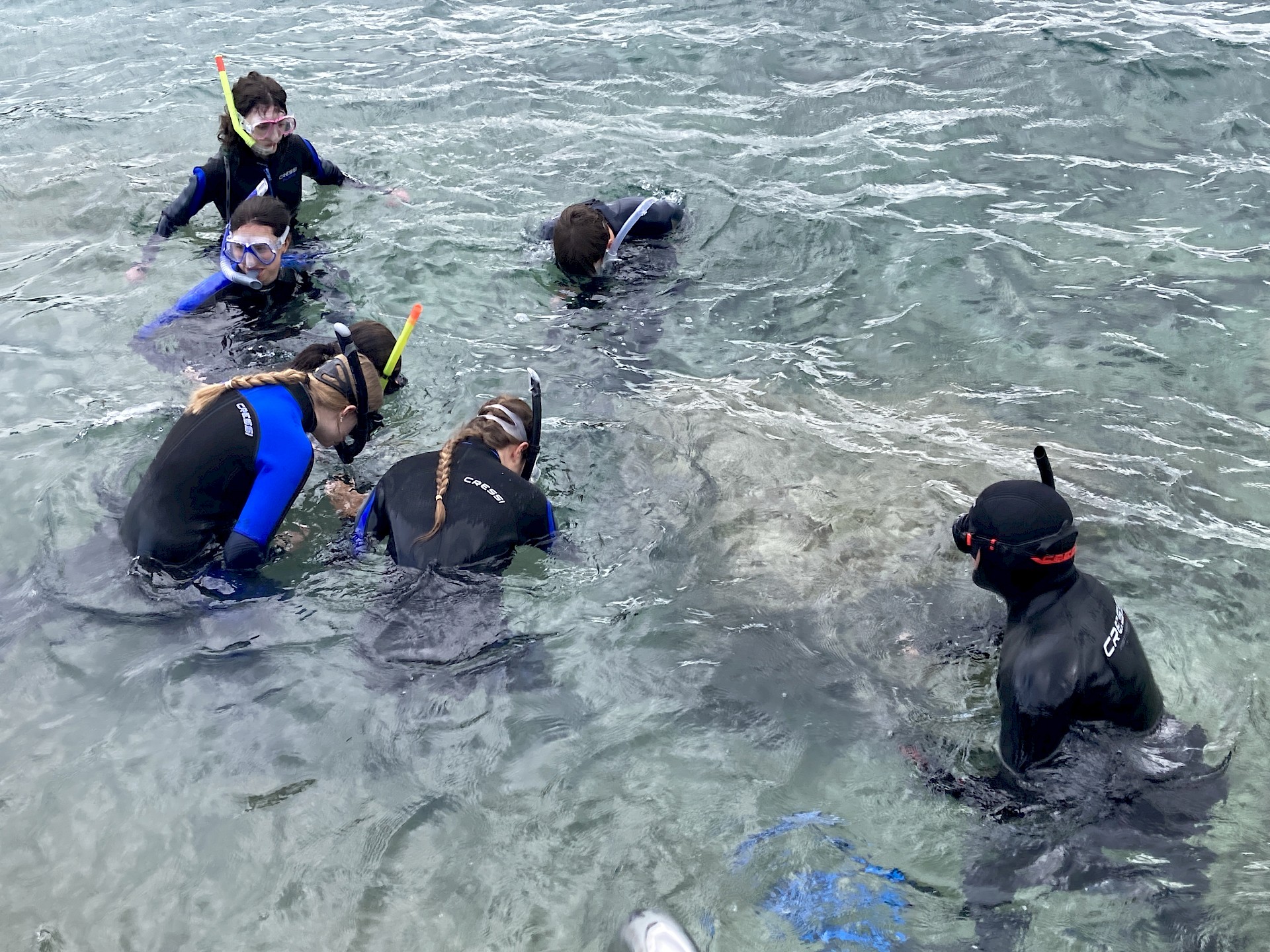 Am Dienstag begann unser Tag früh mit der ersten Schnorcheleinheit. Noch vor dem Schnorcheln spielten wir ein „Fischlotto“, bei dem wir verschiedene Fischarten kennenlernten, die wir später im Wasser wiedererkennen sollten. Obwohl das Wasser ziemlich kalt war, machten wir spannende Beobachtungen. Nach dem Schnorcheln packten wir unsere Ausrüstung zusammen und aßen zu Mittag. Am Nachmittag ging es mit einem weiteren Programmpunkt weiter: In Gruppen suchten wir verschiedene Meerestiere, die wir danach auch kurz untersuchen und präsentieren durften. Jede Gruppe stellte ihre Funde vor. Dabei lernten wir viel über die Lebensweise von Tieren wie Seeigeln, Seegurken, Seespinnen und andere Krebstiere. In der abschließenden Besprechung vertieften wir unser Wissen. Den Tag ließen wir schließlich bei einem gemeinsamen Abendessen ausklingen.