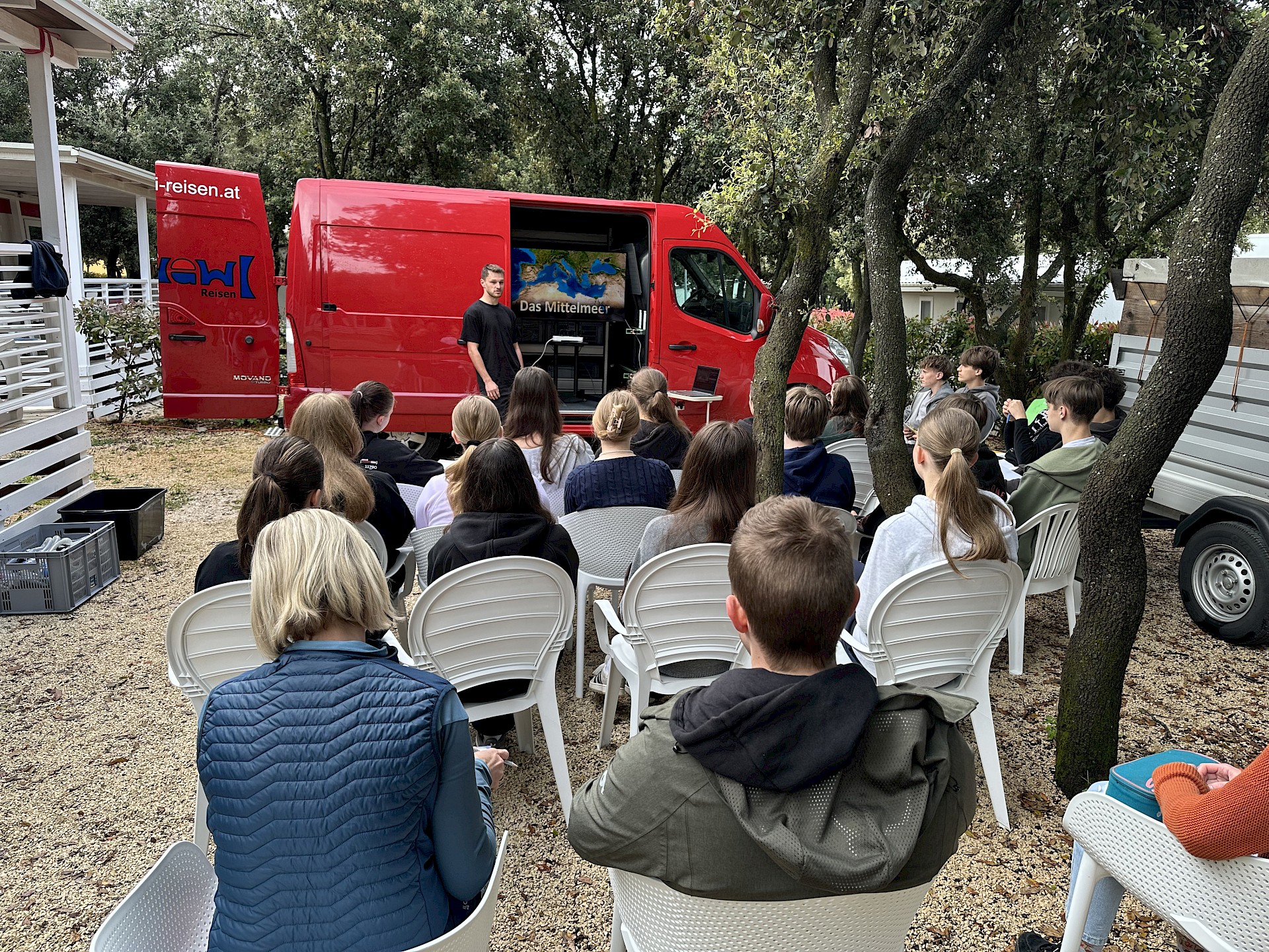 Vom 5.5.2025 verlagerte die 6N Klasse ihren Unterricht gemeinsam mit Frau Prof. Stöffler und Herrn Professor Weber ans Meer. Wir fuhren nach Kroatien, um viele spannende Dinge über das Mittelmeer zu lernen – einem der artenreichsten Meere der Erde.