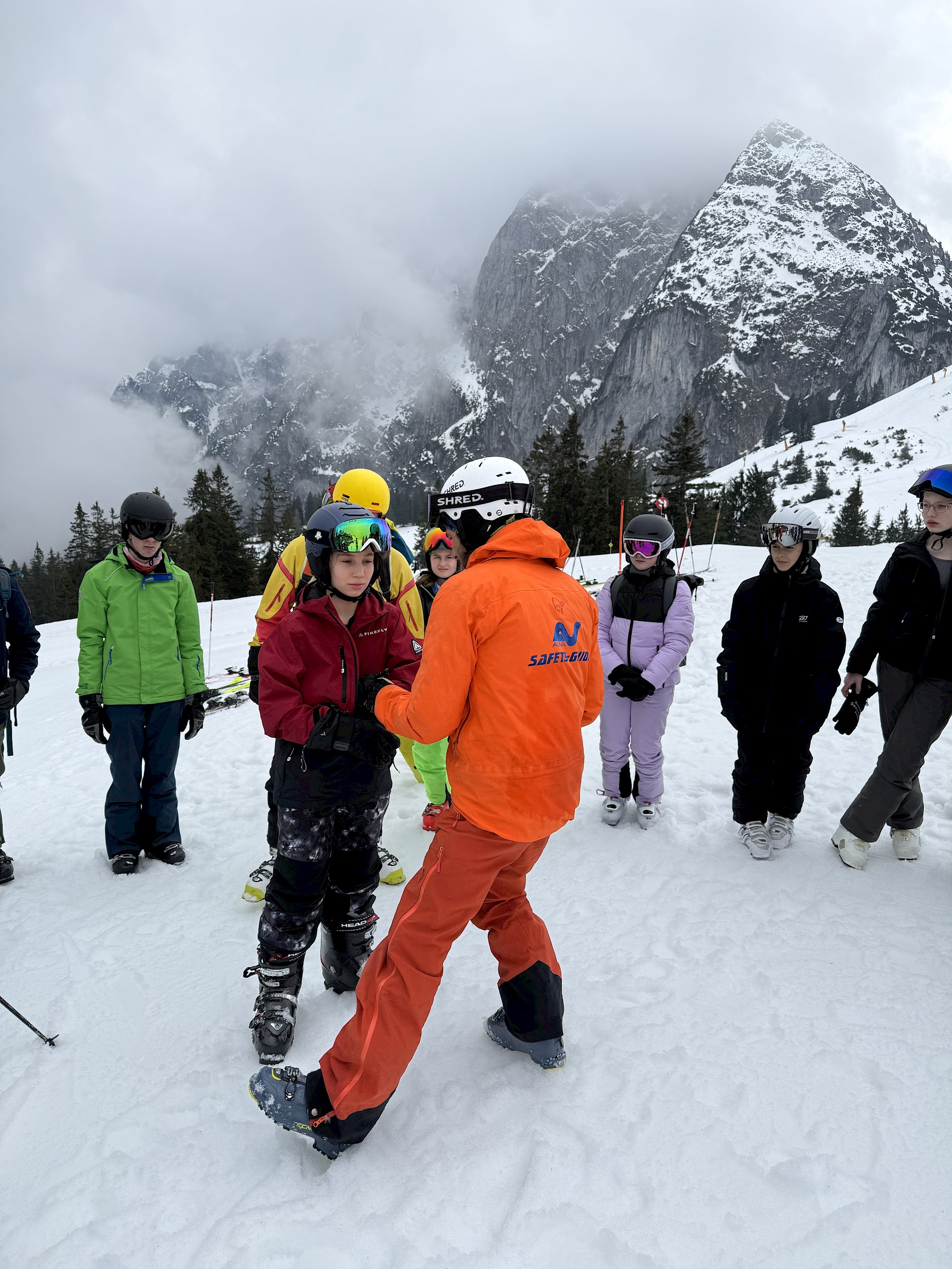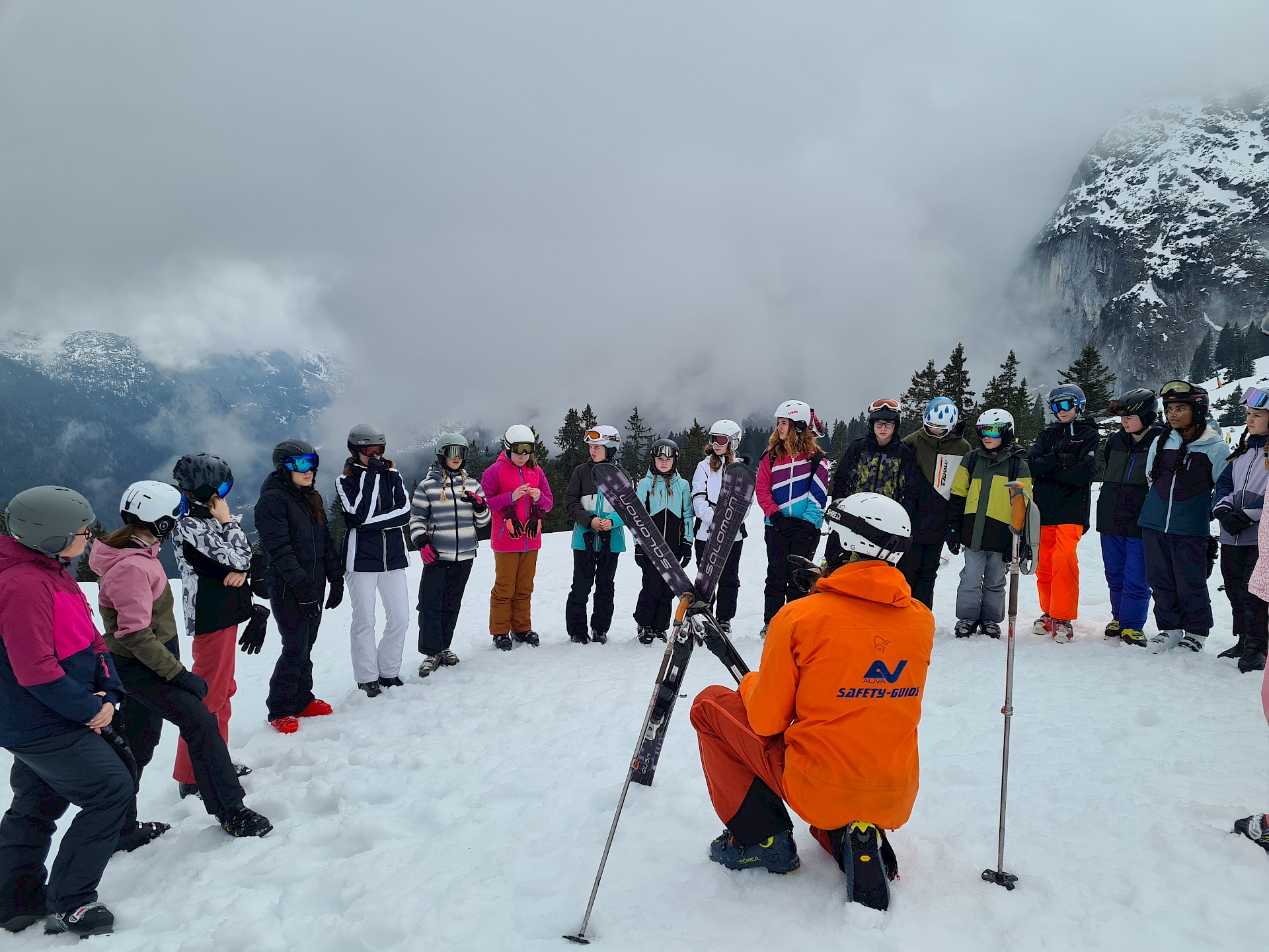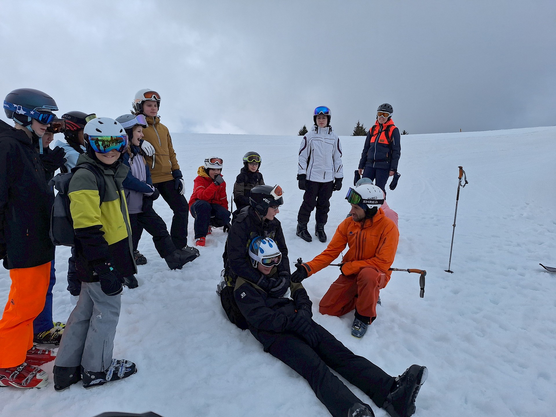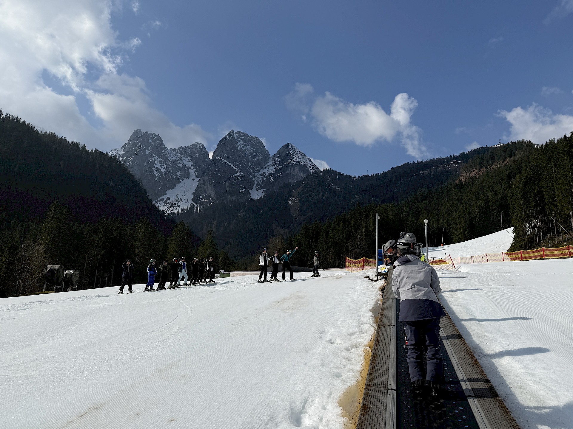 In den Skigebieten Dachstein West und Krippenstein lernten die Anfänger*innen das Skifahren, aber auch die Fortgeschrittenen verbesserten ihre Fähigkeiten auf den Skiern und versuchten sich an ihren ersten Carvingschwüngen. Neben dem Skifahren erfuhren wir in Kooperation mit der AUVA, wie man bei einem Unfall auf der Piste richtig reagiert und die Rettungskette in Gang setzt.