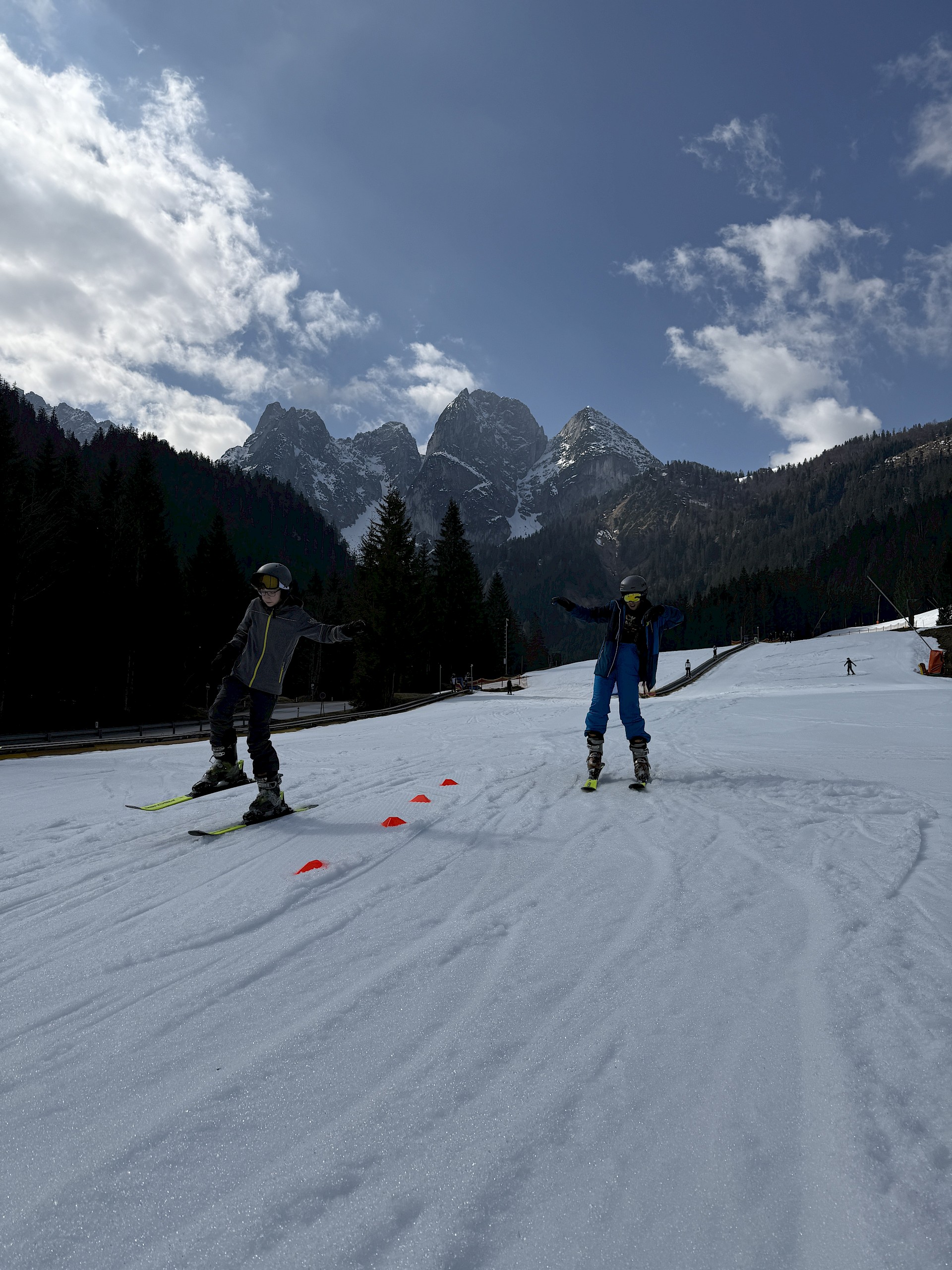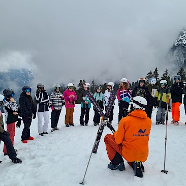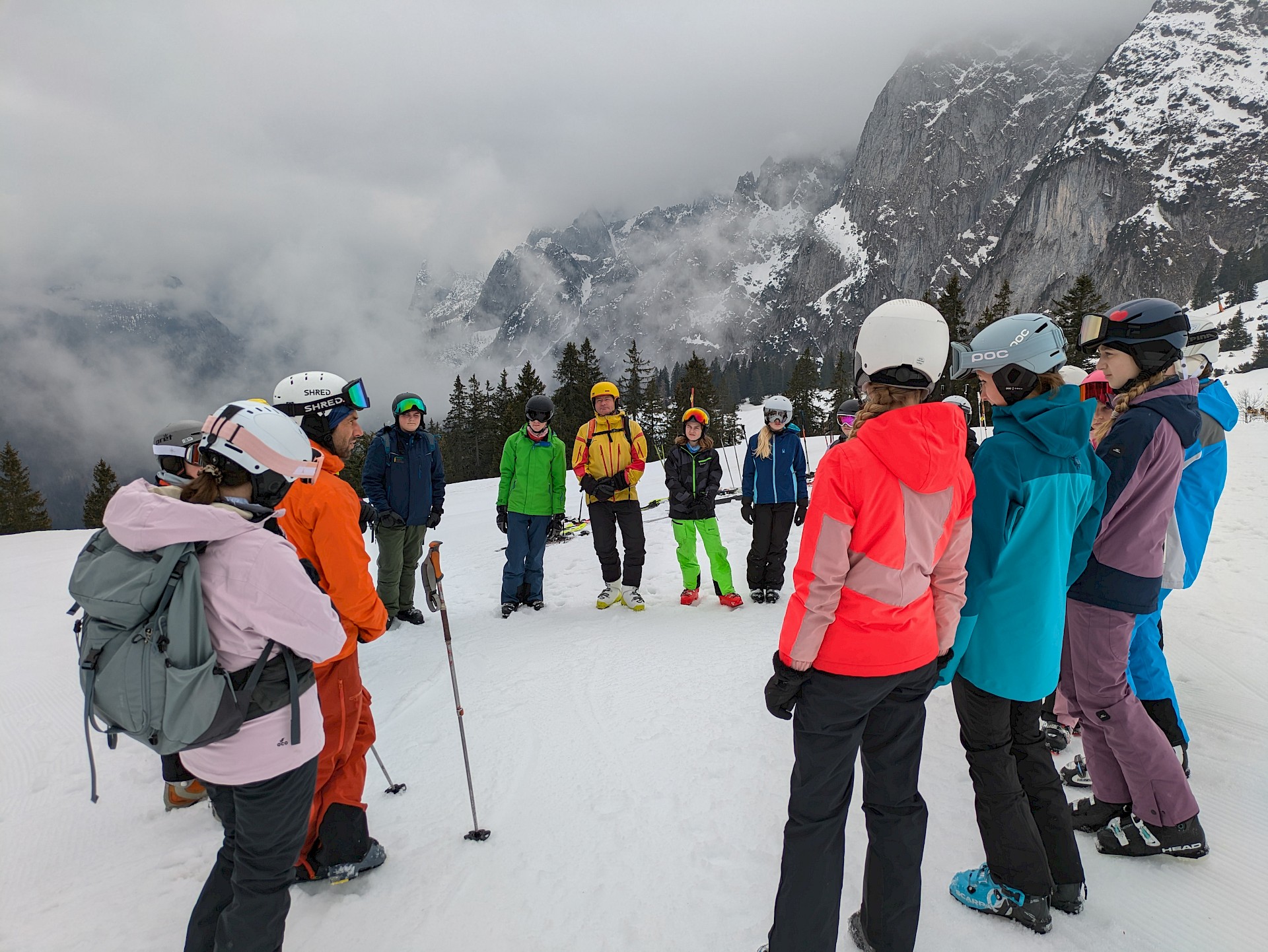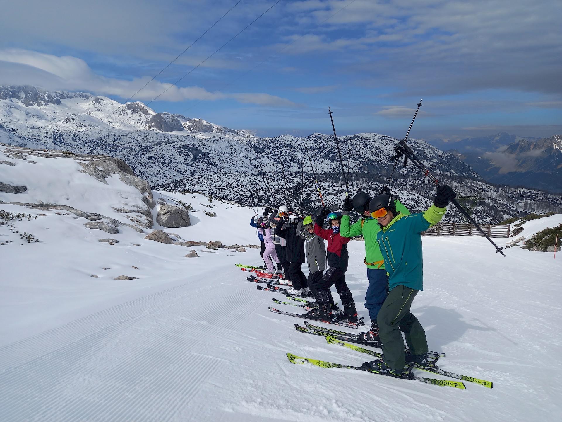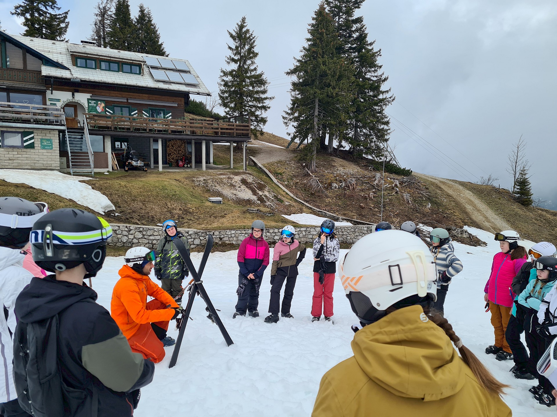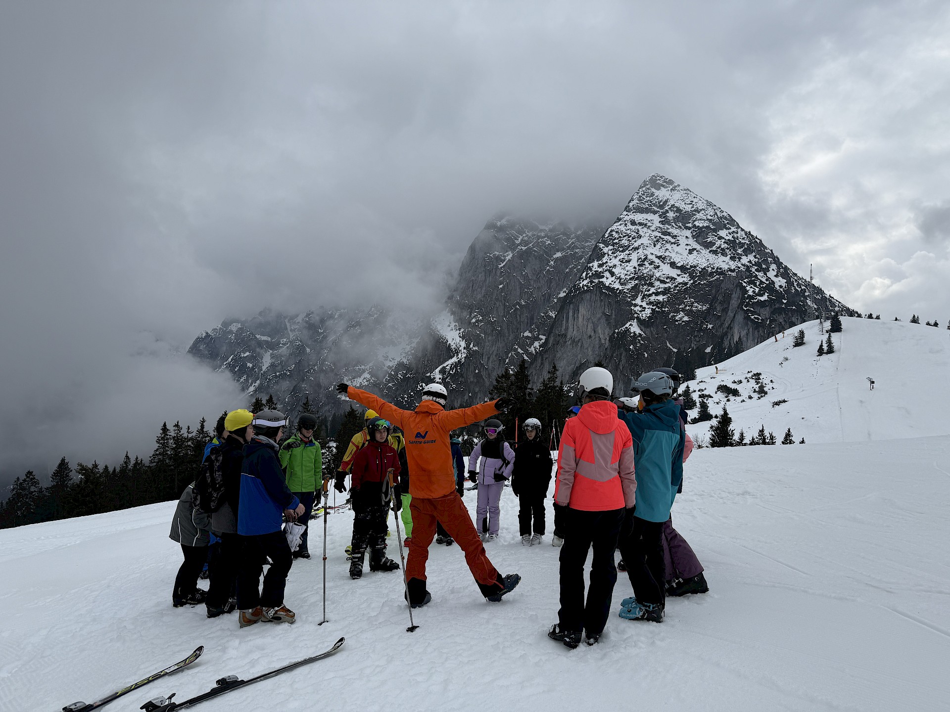 In den Skigebieten Dachstein West und Krippenstein lernten die Anfänger*innen das Skifahren, aber auch die Fortgeschrittenen verbesserten ihre Fähigkeiten auf den Skiern und versuchten sich an ihren ersten Carvingschwüngen. Neben dem Skifahren erfuhren wir in Kooperation mit der AUVA, wie man bei einem Unfall auf der Piste richtig reagiert und die Rettungskette in Gang setzt.