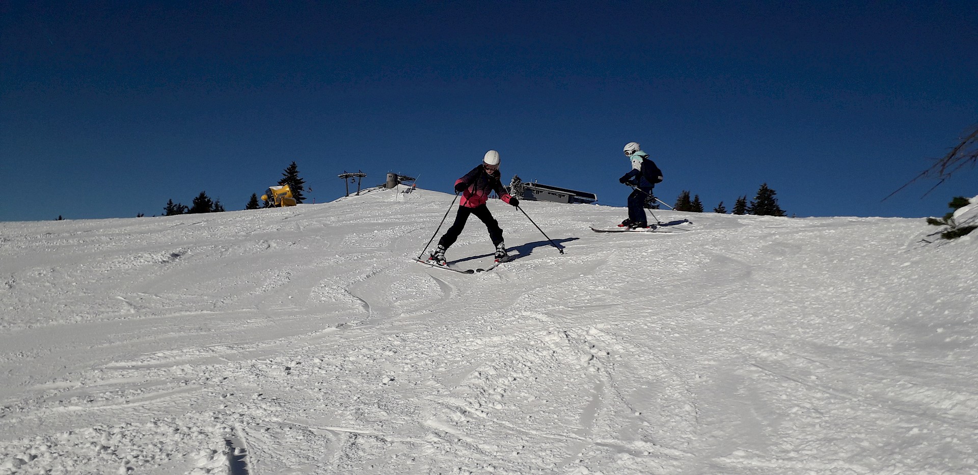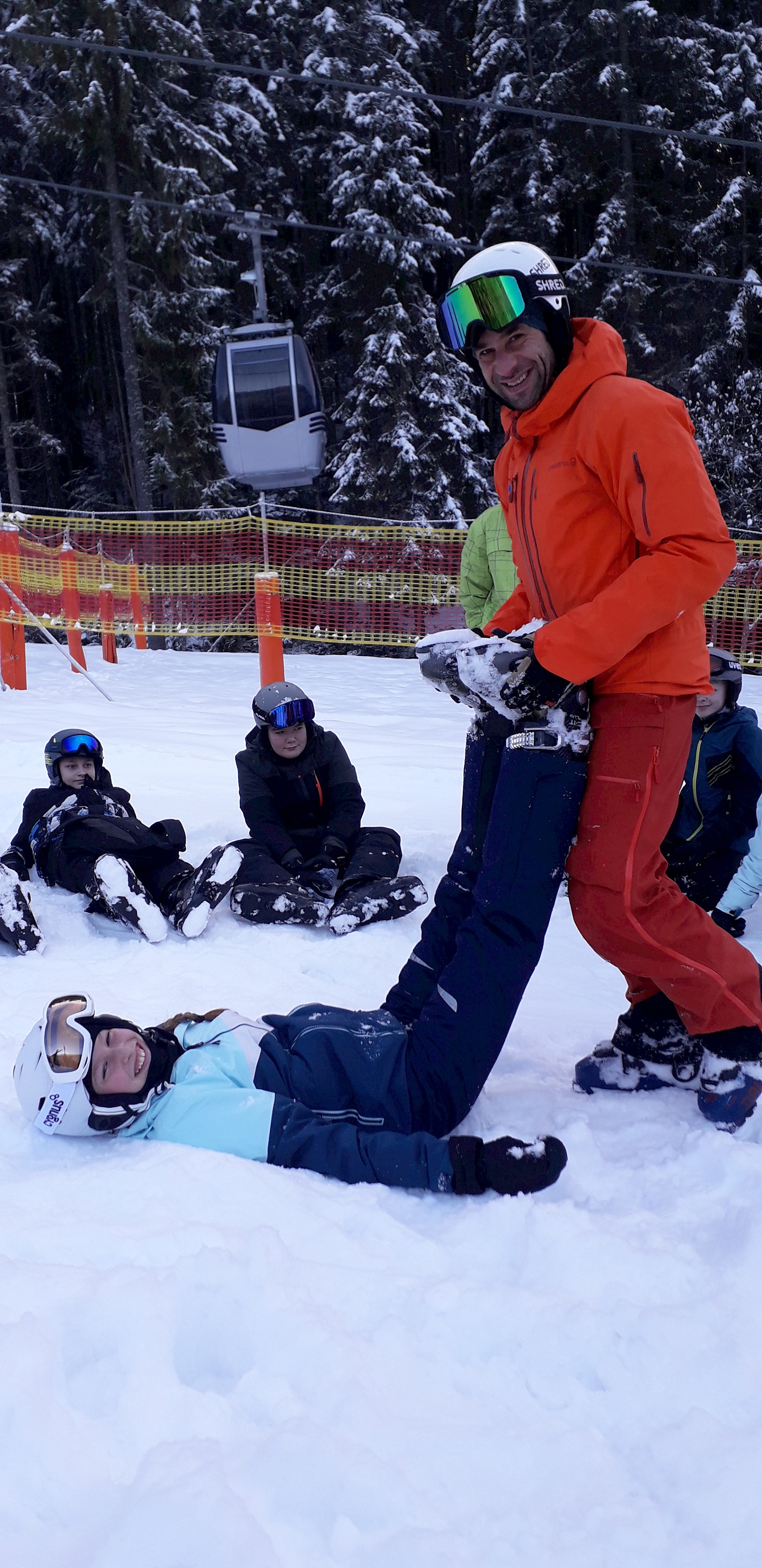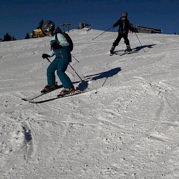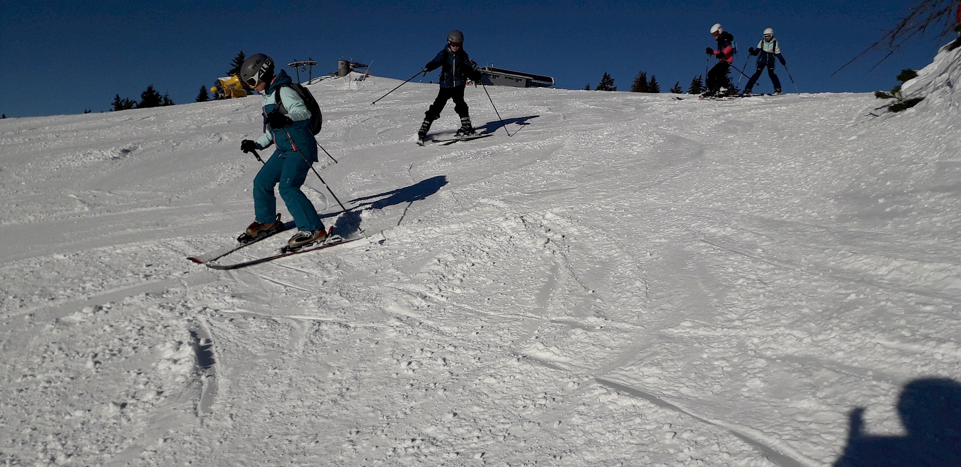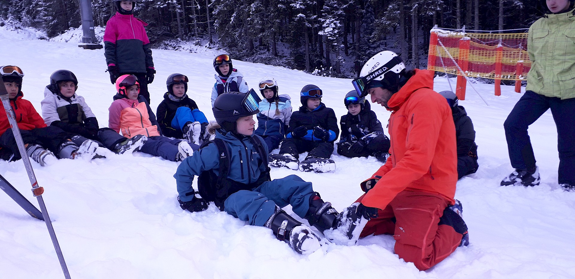 Am folgenden Tag führte uns der Vortragende einfache Rettungsmaßnahmen direkt im Gelände vor. Im Laufe der Woche konnten wir zusätzlich zum Skifahren den Turnsaal, die Kletterhalle und den Tischtennisraum sportlich nutzen. Zu Mittag kehrten wir in verschiedenen Hütten ein, und tauschten unsere Essensmarken gegen typische Schmankerl wie Kaiserschmarrn, Germknödel, Gulasch usw. ein. Die gewonnene Energie nützten wir für rasante Fahrten im Tiefschnee. Nicht nur alle Schüler*innen purzelten das eine oder andere Mal durch den Schnee, sondern auch so manche Professor*innen. Schnell war die Skiwoche vorbei. In den letzten beiden Tagen konnten die Anfänger*innen ihr gewonnenes Können auf den roten Pisten unter Beweis stellen. Den letzten Abend beendeten wir traditionellerweise mit einer Disco. So richtig in Schwung kam die Party jedoch erst, als die Professorinnen ihre Tanzkünste unter Beweis stellten.