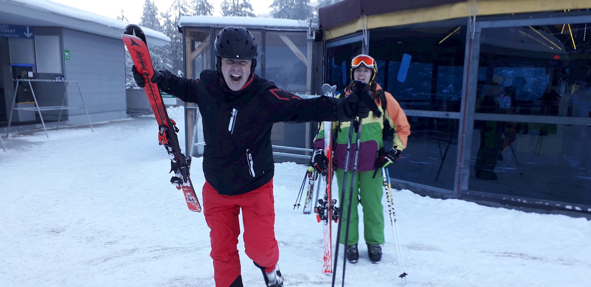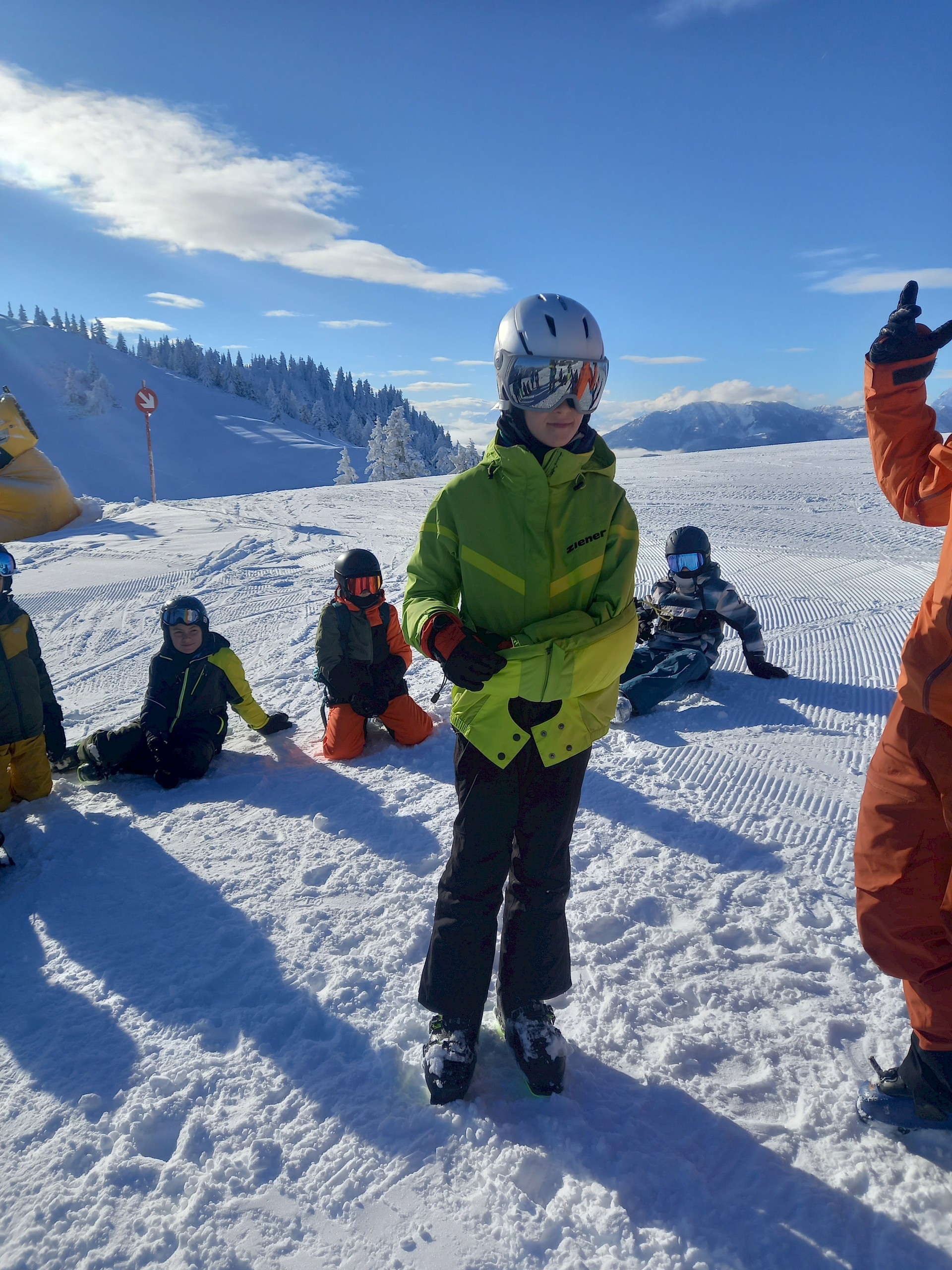 Nach der ersten Nacht und einem leckeren Frühstück brachte uns der Bus ins Schigebiet Dachstein West-Gosau/Russbach/Annaberg. Obwohl die Wetterlage Schneefall vorausgesagt hatte und wir mit viel Schnee rechneten, waren leider nur zwei Lifte geöffnet. Doch wir machten das Beste daraus. Während die Schüler*innen der Anfängergruppen ihre ersten Schwünge am Zauberteppich wagten, sausten die geübteren Skifahrer*innen die blauen und roten Pisten herunter. Leider flog am Nachmittag eine Schülerin aus dem Schlepplift und landete so unglücklich, dass sie vom Berg aus direkt ins Krankenhaus gebracht wurde, wo sich leider herausstellte, dass sie sich ihren Fuß gebrochen hatte. Der zweite Abend endete mit einem Vortrag der AUVA, der uns vor weiteren Unglücken auf den Pisten in den kommenden Tagen verschonte. Wir durften sogar die Funktion eines Lawinenrucksacks ausprobieren.