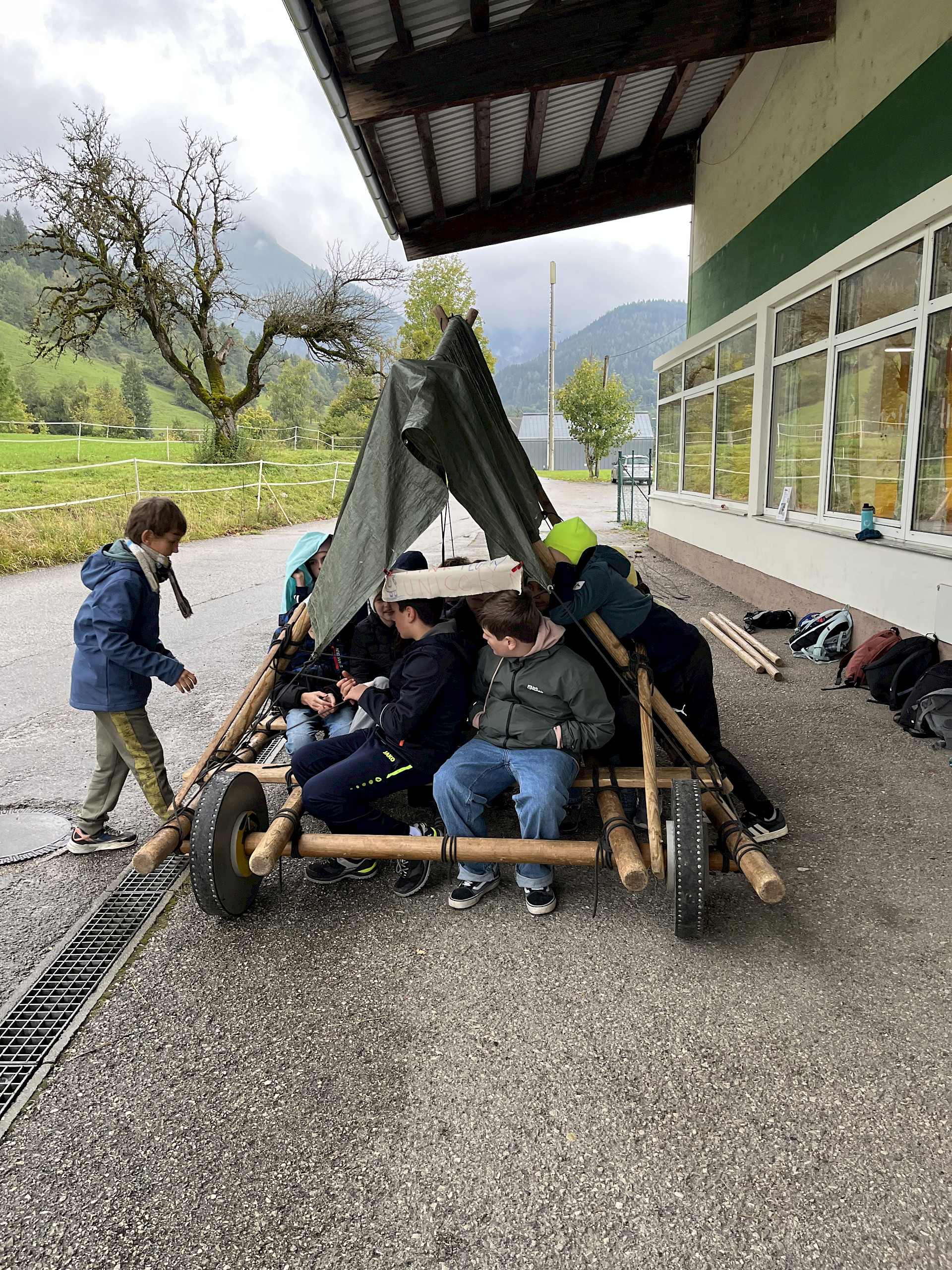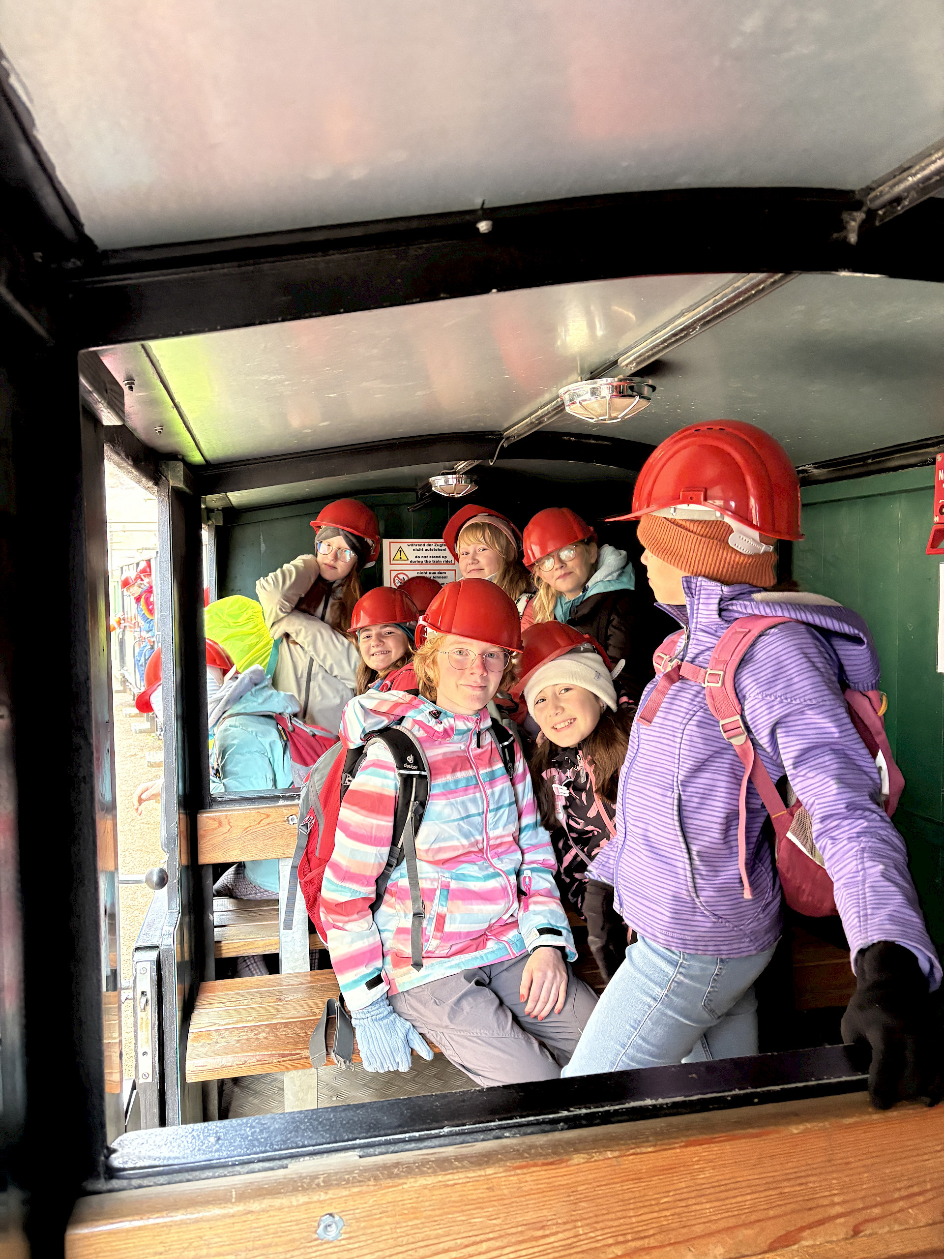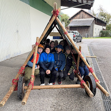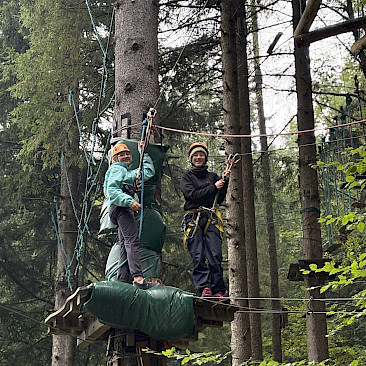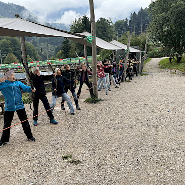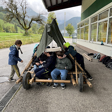 Auch der Zusammenhalt zwischen den Schüler*innen in der Klasse kann bei solchen Aktionen gestärkt werden und man lernt sich in einem anderen Rahmen kennen, als es im Klassenzimmer möglich wäre. Während einer kleinen Tour mit RangerInnen des Nationalparks Kalkalpen, beim Bauen von Flintstone-Autos, dem Besuch einer alten Hammerschmiede, dem Erzbergwerk oder der Stiftsbibliothek Admont gab es zahlreiche Gelegenheiten, gemeinsam Eindrücke zu erleben, die wir so schnell nicht vergessen werden. Das Bogenschießen, der Hochseilklettergarten und der Besuch der „Kreidelucka“ (einer Höhle, durch die wir etwa 1,5 Stunden gewandert sind – oft durch knietiefes Wasser!) stellten die Höhepunkte unseres Programms dar. Dabei mussten wir durchaus auch die persönliche Komfortzone verlassen, sodass man auf jeden Fall über sich hinauswuchs.