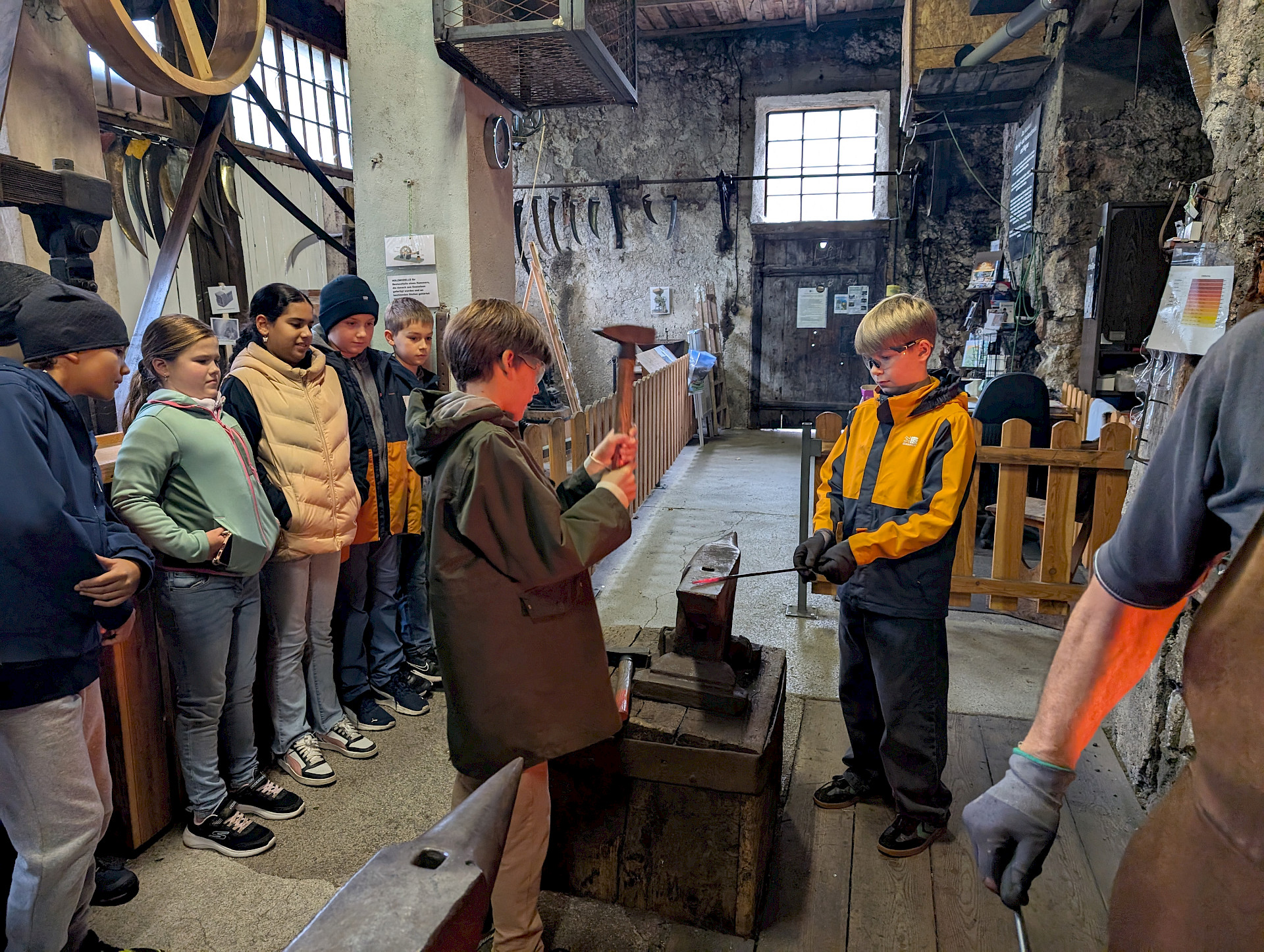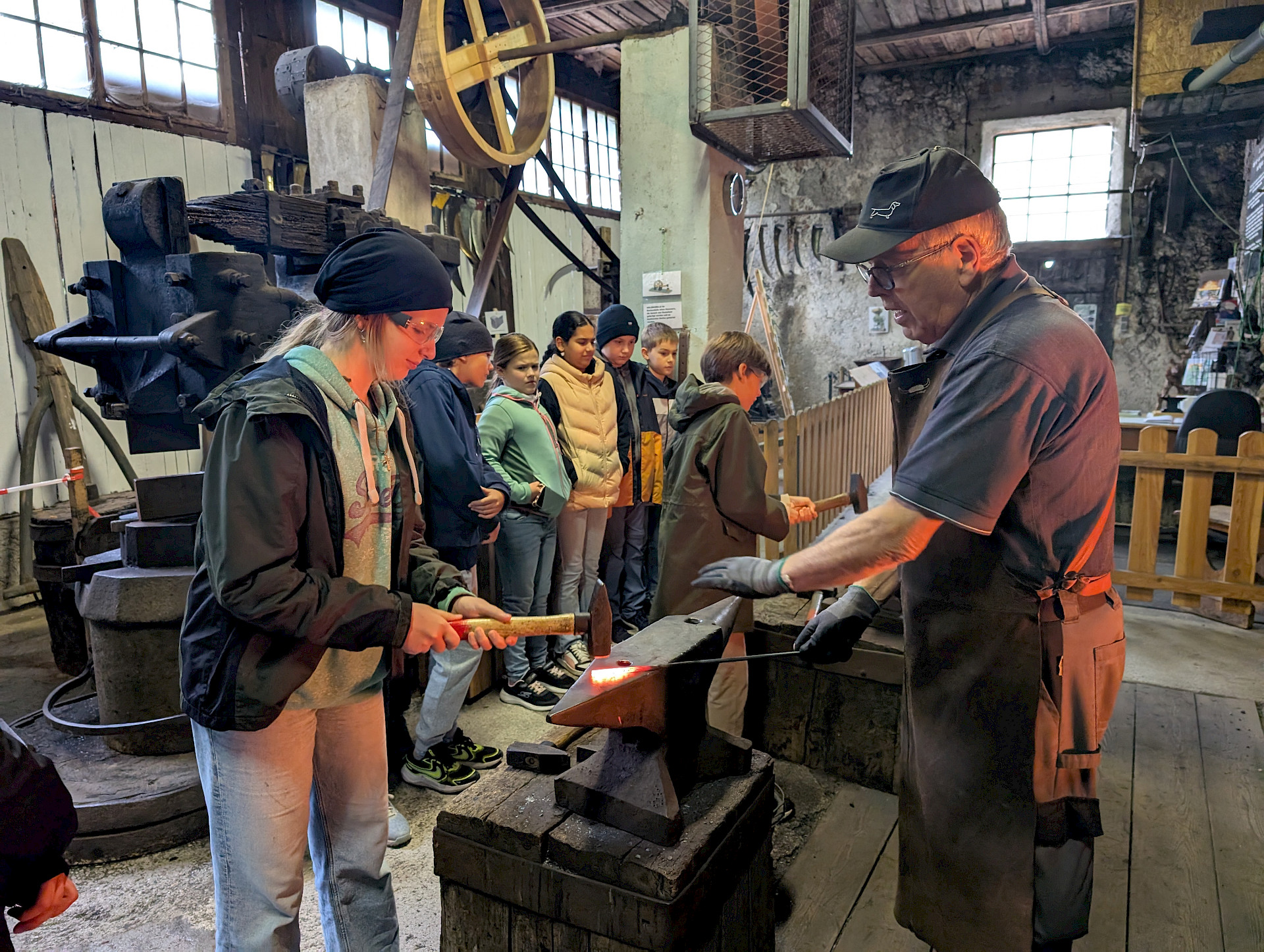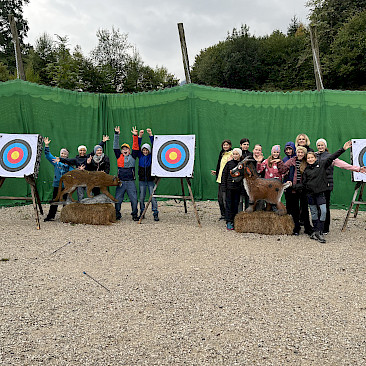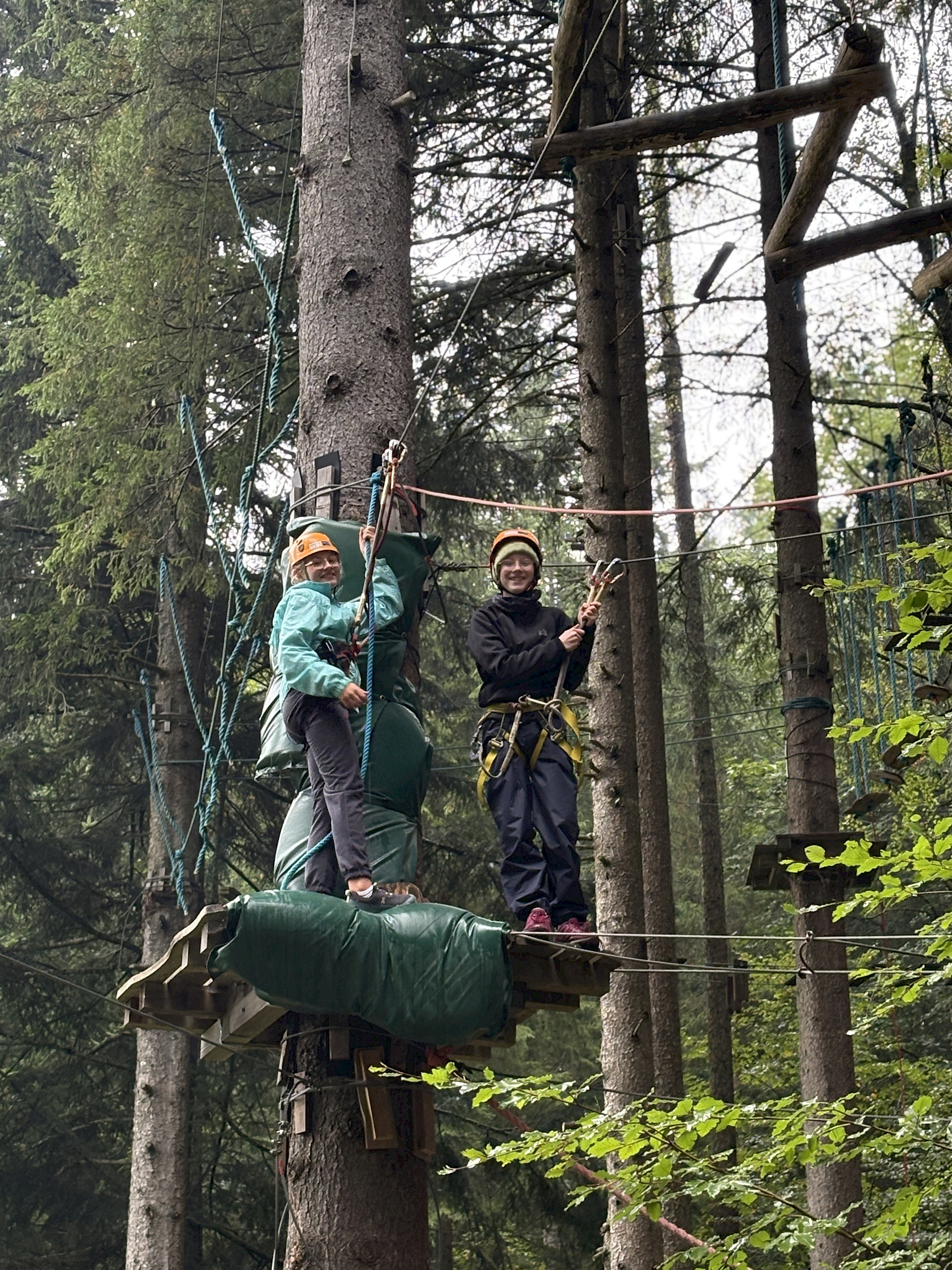Auch der Zusammenhalt zwischen den Schüler*innen in der Klasse kann bei solchen Aktionen gestärkt werden und man lernt sich in einem anderen Rahmen kennen, als es im Klassenzimmer möglich wäre. Während einer kleinen Tour mit RangerInnen des Nationalparks Kalkalpen, beim Bauen von Flintstone-Autos, dem Besuch einer alten Hammerschmiede, dem Erzbergwerk oder der Stiftsbibliothek Admont gab es zahlreiche Gelegenheiten, gemeinsam Eindrücke zu erleben, die wir so schnell nicht vergessen werden. Das Bogenschießen, der Hochseilklettergarten und der Besuch der „Kreidelucka“ (einer Höhle, durch die wir etwa 1,5 Stunden gewandert sind – oft durch knietiefes Wasser!) stellten die Höhepunkte unseres Programms dar. Dabei mussten wir durchaus auch die persönliche Komfortzone verlassen, sodass man auf jeden Fall über sich hinauswuchs.