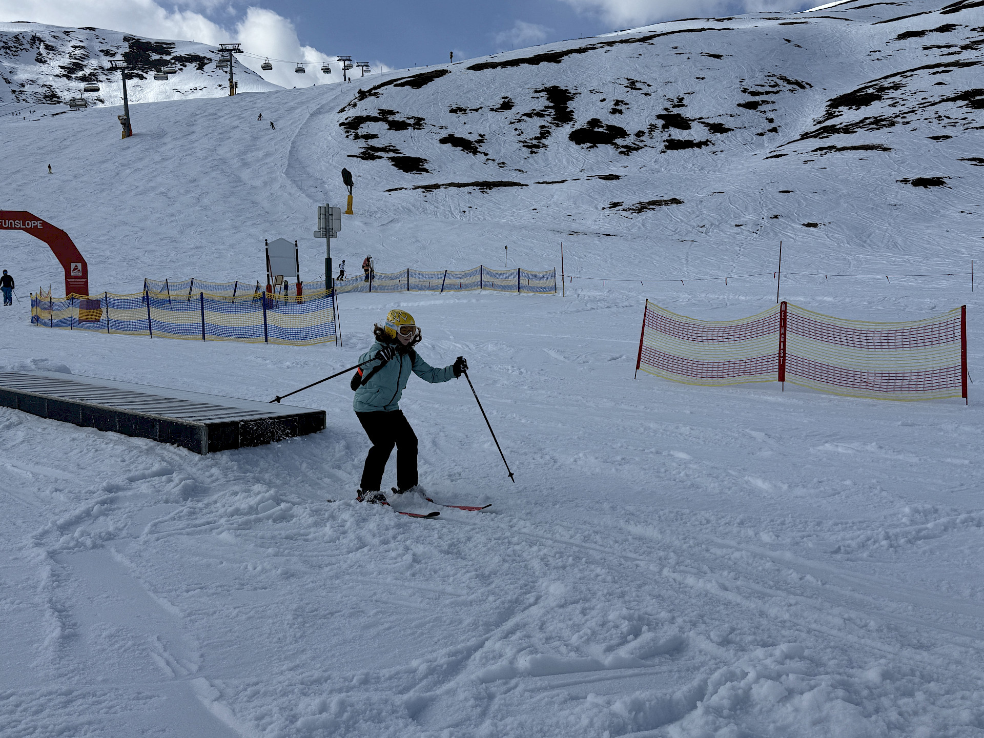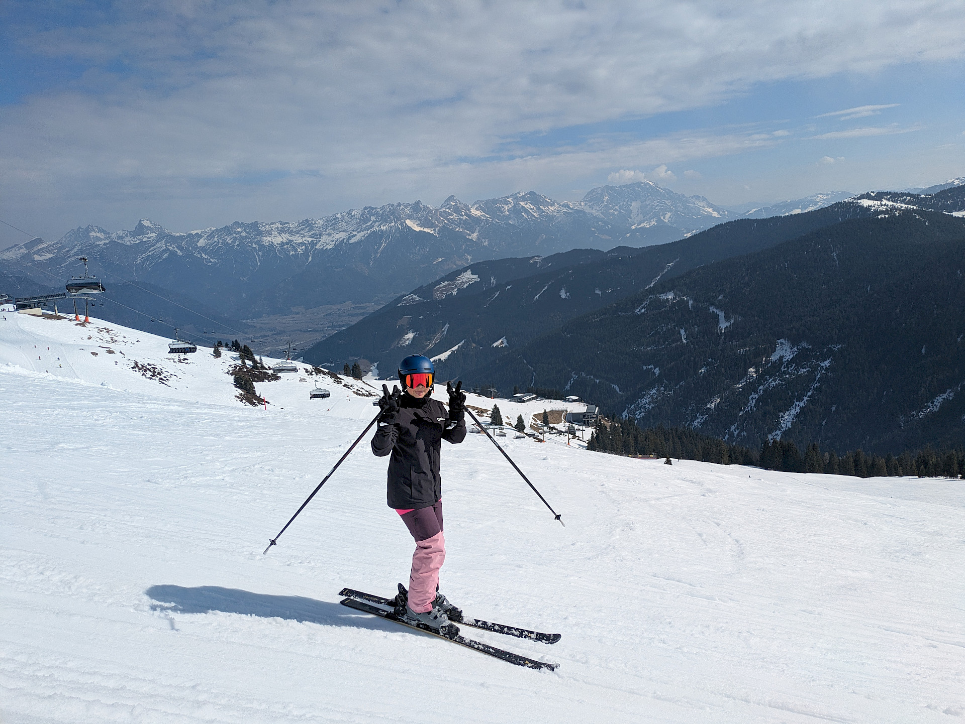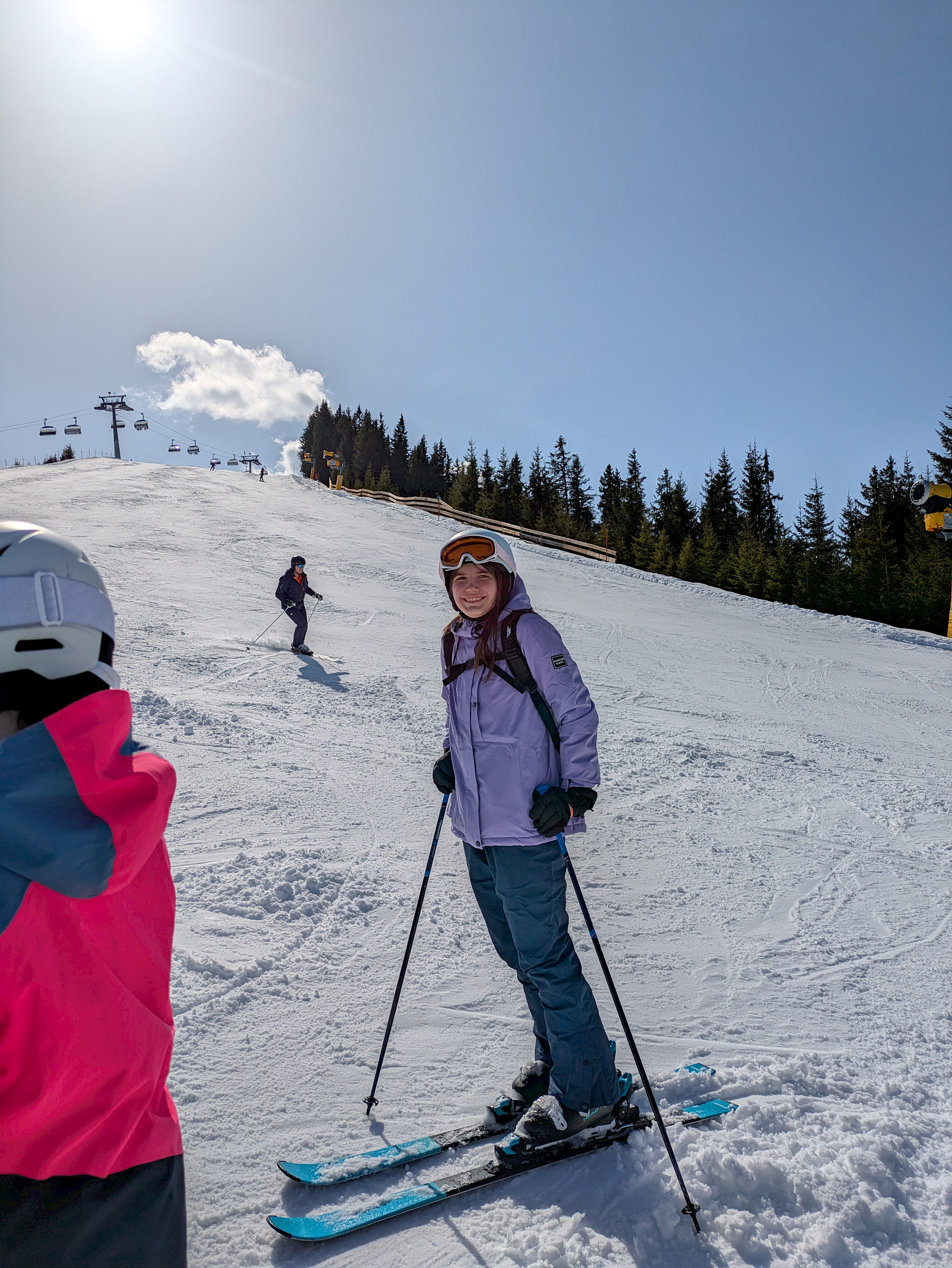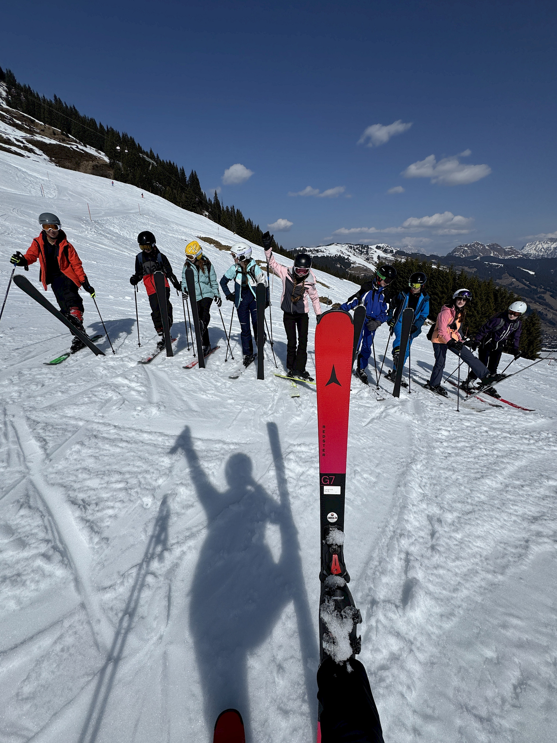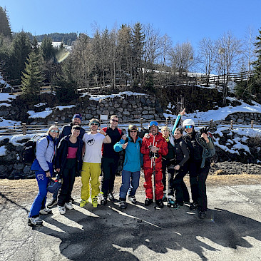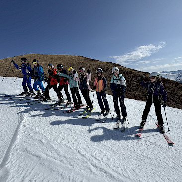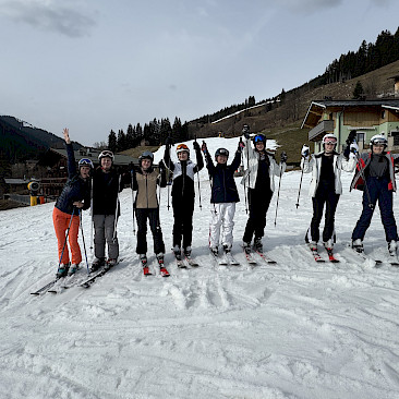 Jeden Tag wurde das Skigebiet von den insgesamt 9 Gruppen erkundet. Die Anfänger*innen konnten ihre Skikünste, die sie letztes Jahr erworben hatten, noch auf den einfacheren Hängen zeigen, während die fortgeschritteneren Gruppen schon die steileren Pisten hinunterflitzten. Die meiste Zeit schien Sonne, aber am Donnerstag schneite es ein paar Flocken.