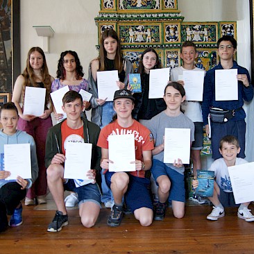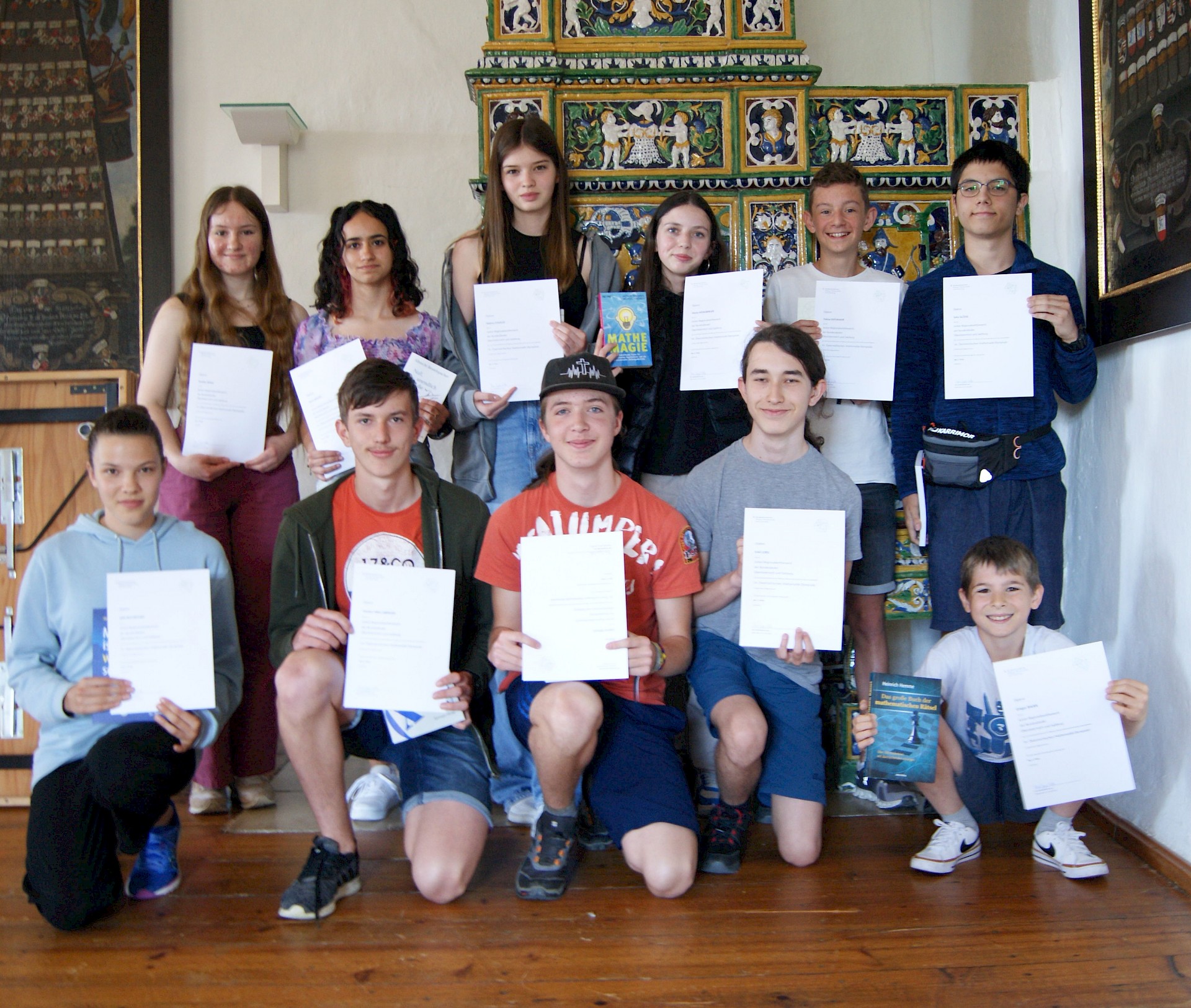 Unser Team nahm vom 12. bis 14. Juni 2023 auch beim Junior-Regionalwettbewerb Oberösterreich/Salzburg in Kefermarkt teil. Wir wohnten im Schloss Weinberg, in dem wir am 13. Juni den vierstündigen Test im Ritter- und Ahnensaal absolvierten. Im Anschluss daran wurden alle Teilnehmer*innen fotografiert und durften das schöne Schloss erkunden. Am Abreisetag wurden die Lösungen der Aufgaben präsentiert und eine Siegerehrung vorgenommen. Helena Stadler (6N) belegte den 7. Platz, Gabriel Bensel (6B) den 8. Platz, Nesa Nemati (6N) den 16. Platz und Katja Pöckl (6N) und Bruno Oberzaucher (6N) den 44. von 70 Plätzen.