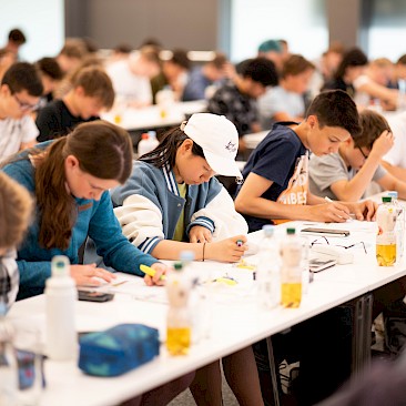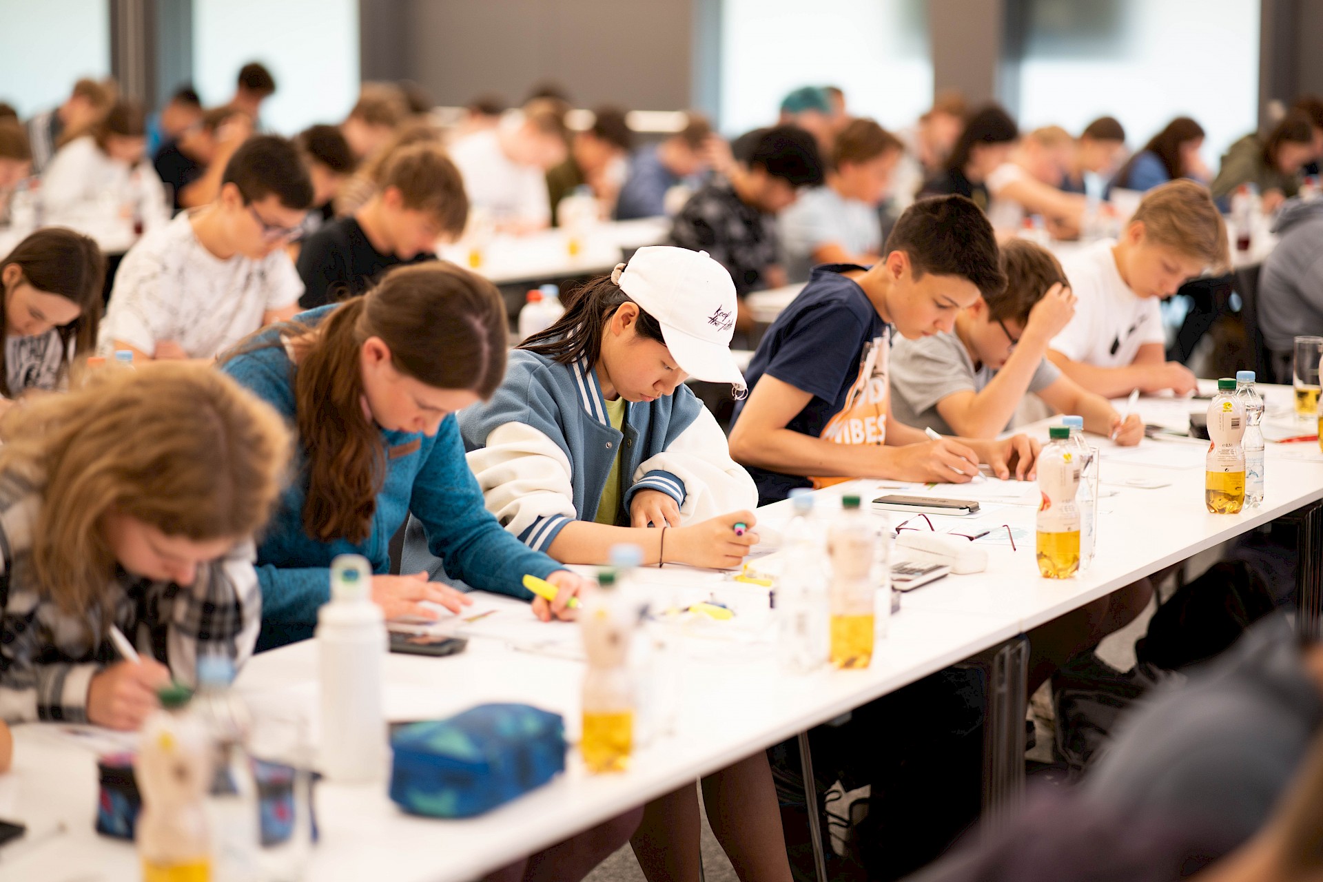 Dort tüftelten Abeer Al Kaloo, Marlene Wagner, Kostiantyn Gnatiuk und Paul Auer (v. l. n. r.) an kniffligen physikalischen Aufgaben. Als Rahmenprogramm konnten die SchülerInnen zusätzlich an einer Werkstour teilnehmen und bei der Power-Challenge, welche Marlene Wagner bei den Mädchen für sich entscheiden konnte, wurde das sportliche Talent der SchülerInnen auf die Probe gestellt.