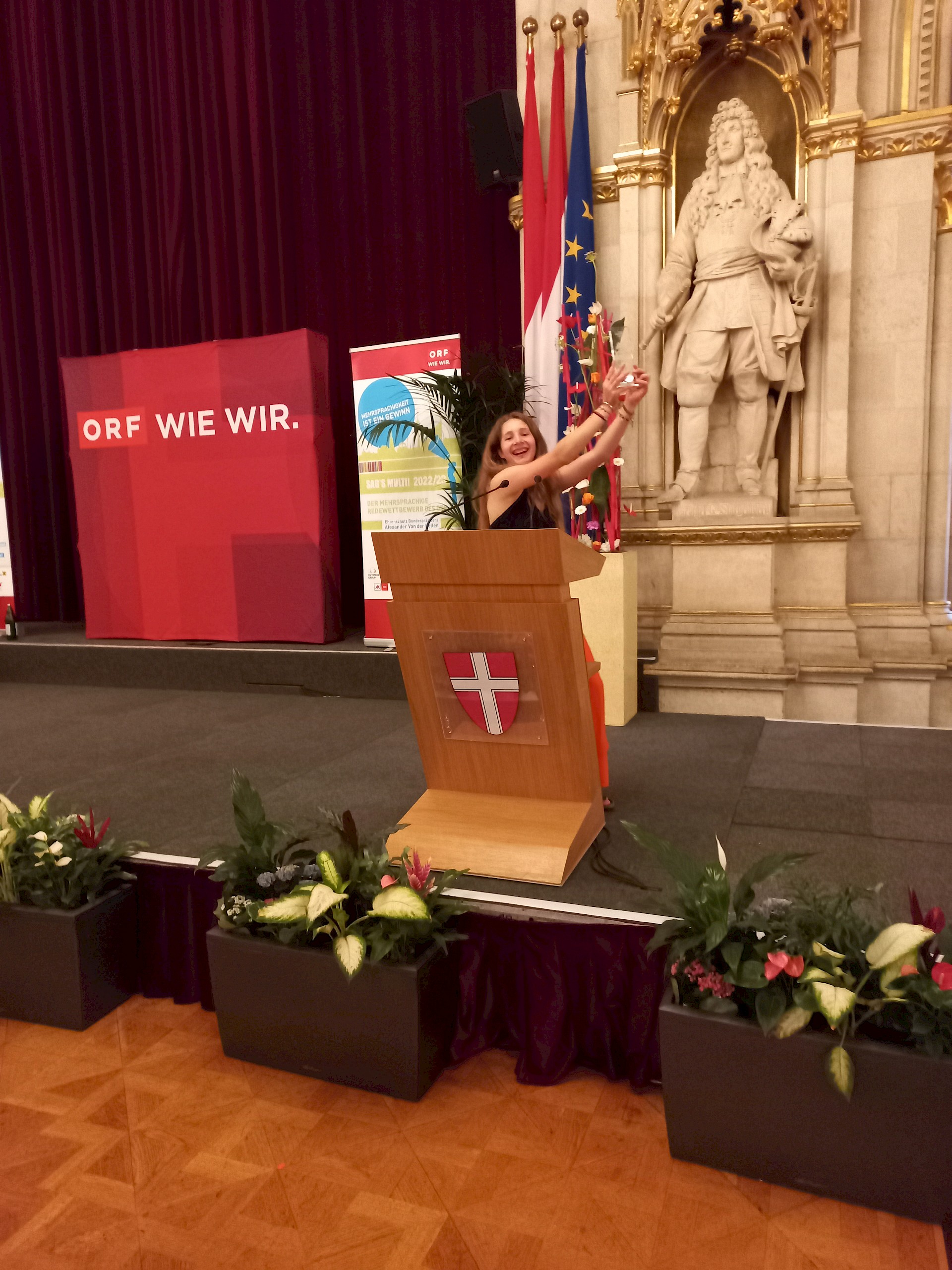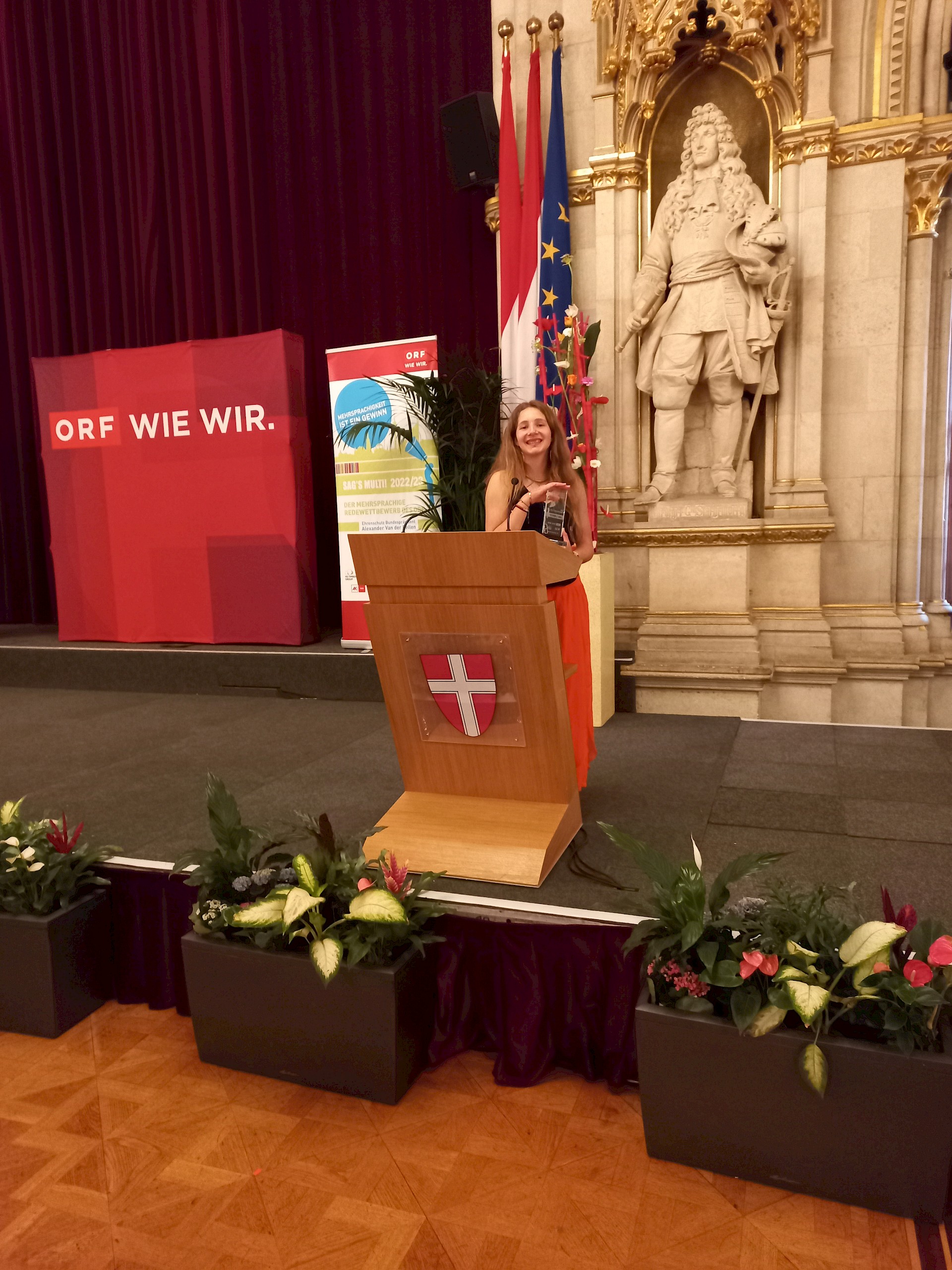 Wie es unseren beiden Sprachentalenten ergangen ist? Nun, wie bereits vermutet, wurde Zoé Mauchamp Feßl (7n) für ihre berührende Rede prämiert und gehört damit österreichweit zu den besten zehn bilingualen Redetalenten ihrer Alterskategorie (11. – 13. Schulstufe).