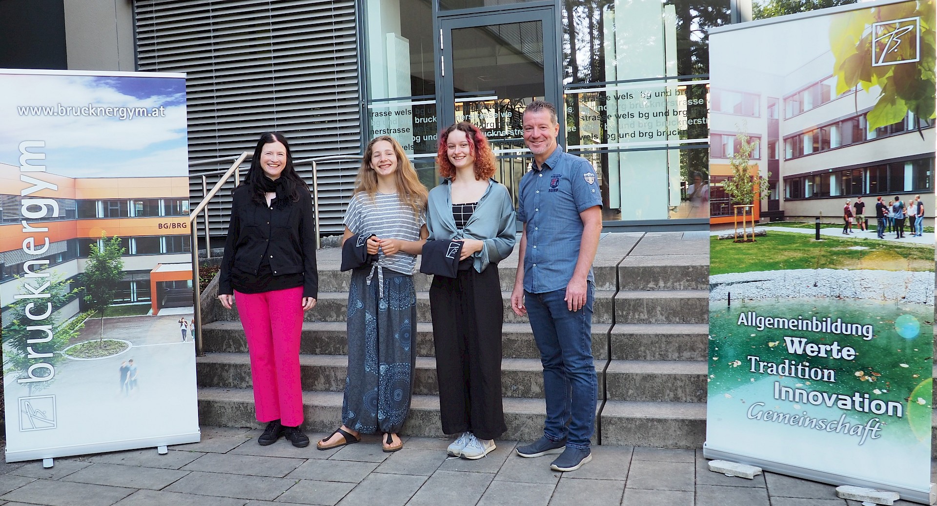 Am 29. Juni 2023 wurden unsere erfolgreichen Finalistinnen im Rahmen einer kleinen Feier von unserem Herrn Direktor beglückwünscht und mit unserem coolen Bruckner-Hoodie beschenkt.