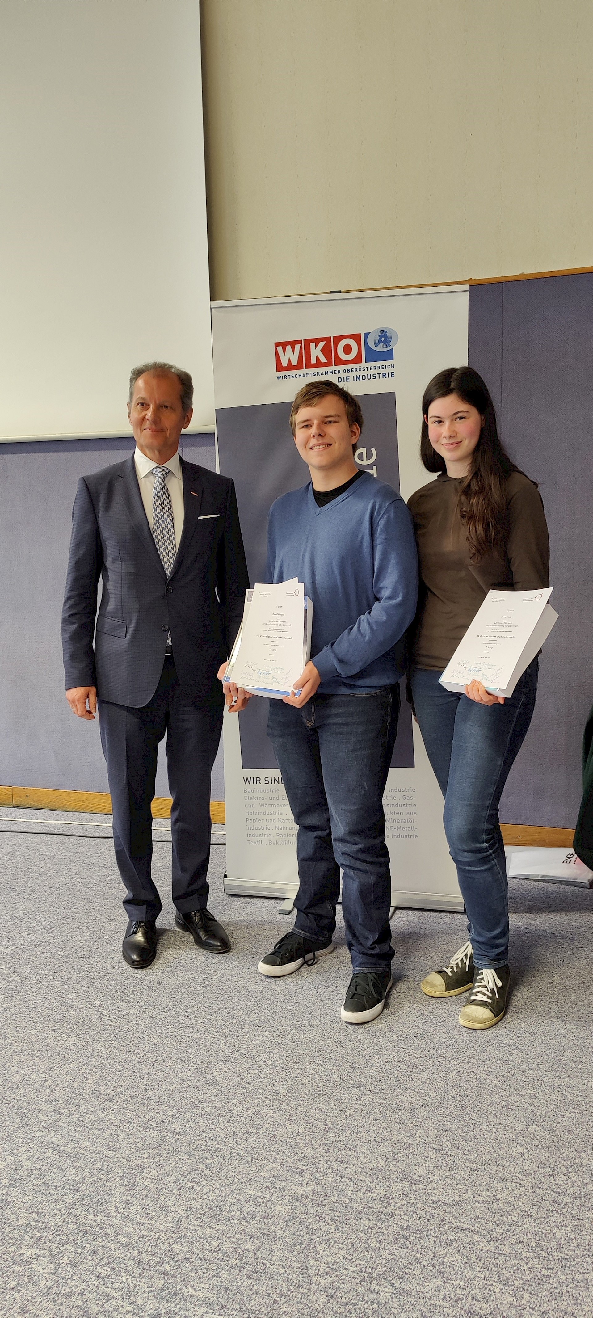 Wir stellten die besten 4. Klassler, die beste Mannschaft und auch mit den Rängen 2, 3 und 4 gleich 3 der vier vordersten Ränge. So wurde Mira beste 4.Klasslerin, Hala und Laureen knapp dahinter ex aequo zweitbeste dieses Jahrgangs. Unter den 49 besten Schulchemiker*innen Oberösterreichs belegte mit bester Mikrotitration Pöllhuber Katharina knapp an einer Top 10 Platzierung vorbei den 11. Platz. Nesa gelang mit einer Top Leistung besonders im Teilbereich Spektroskopie (Vizelandesmeisterin) mit Platz 4 eine Topplatzierung. Leona schaffte den Sprung aufs Stockerl mit Gesamtrang 3, und dabei noch als Vizelandesmeisterin des gesamten Praxisteils. Ganz an der Spitze war es sehr knapp. Anna gewann den Theoriewettbewerb, hatte aber beim praktischen Teil vielleicht auch durch einen dieses Mal besonders schwer zu erkennenden „Umschlagspunkt bei einer Titration“ ein paar Punkte liegen lassen und wurde damit mit einer wirklich außergewöhnlich guten Leistung nur von einem Maturanten sehr sehr knapp geschlagen Zweite.