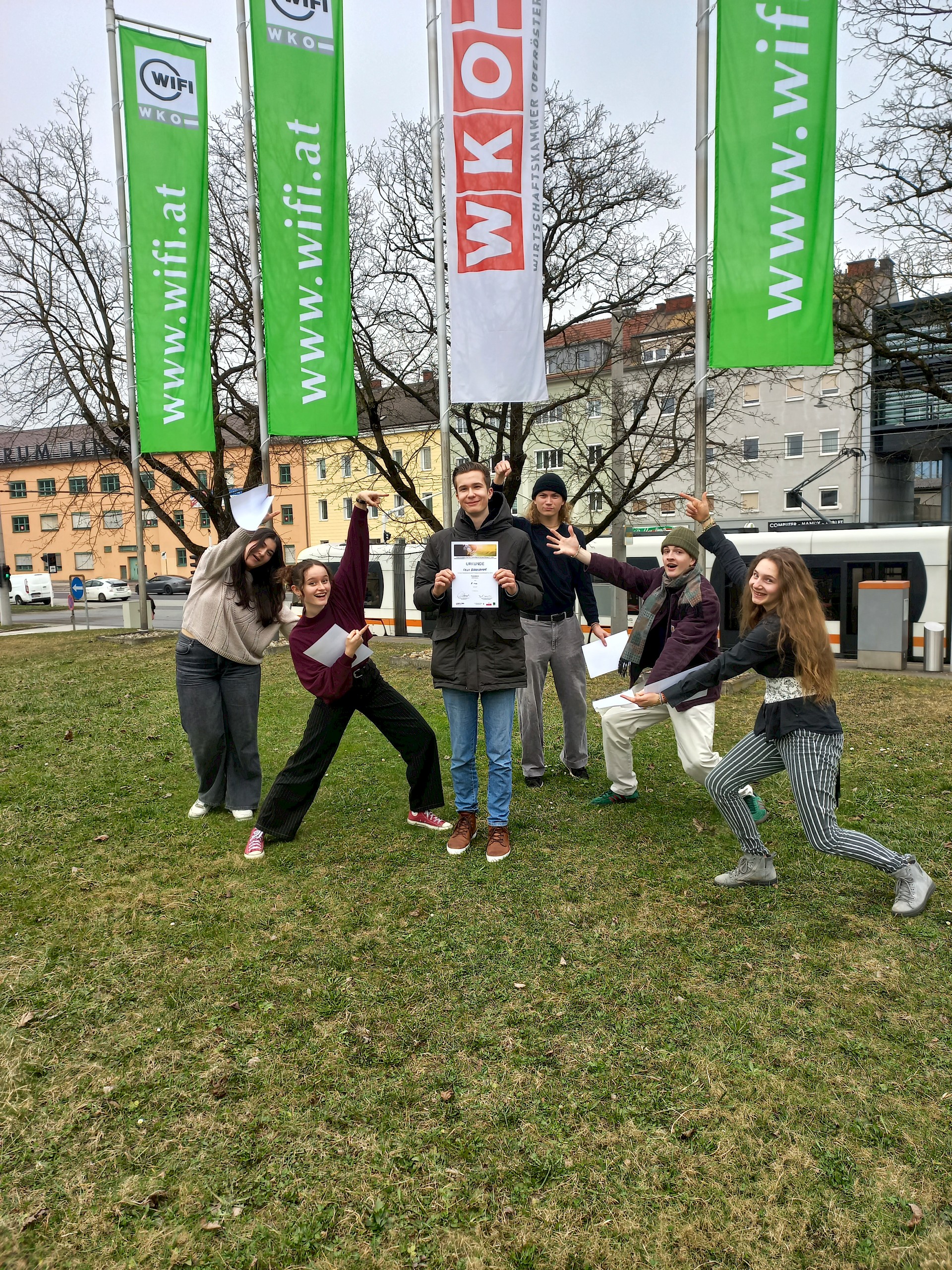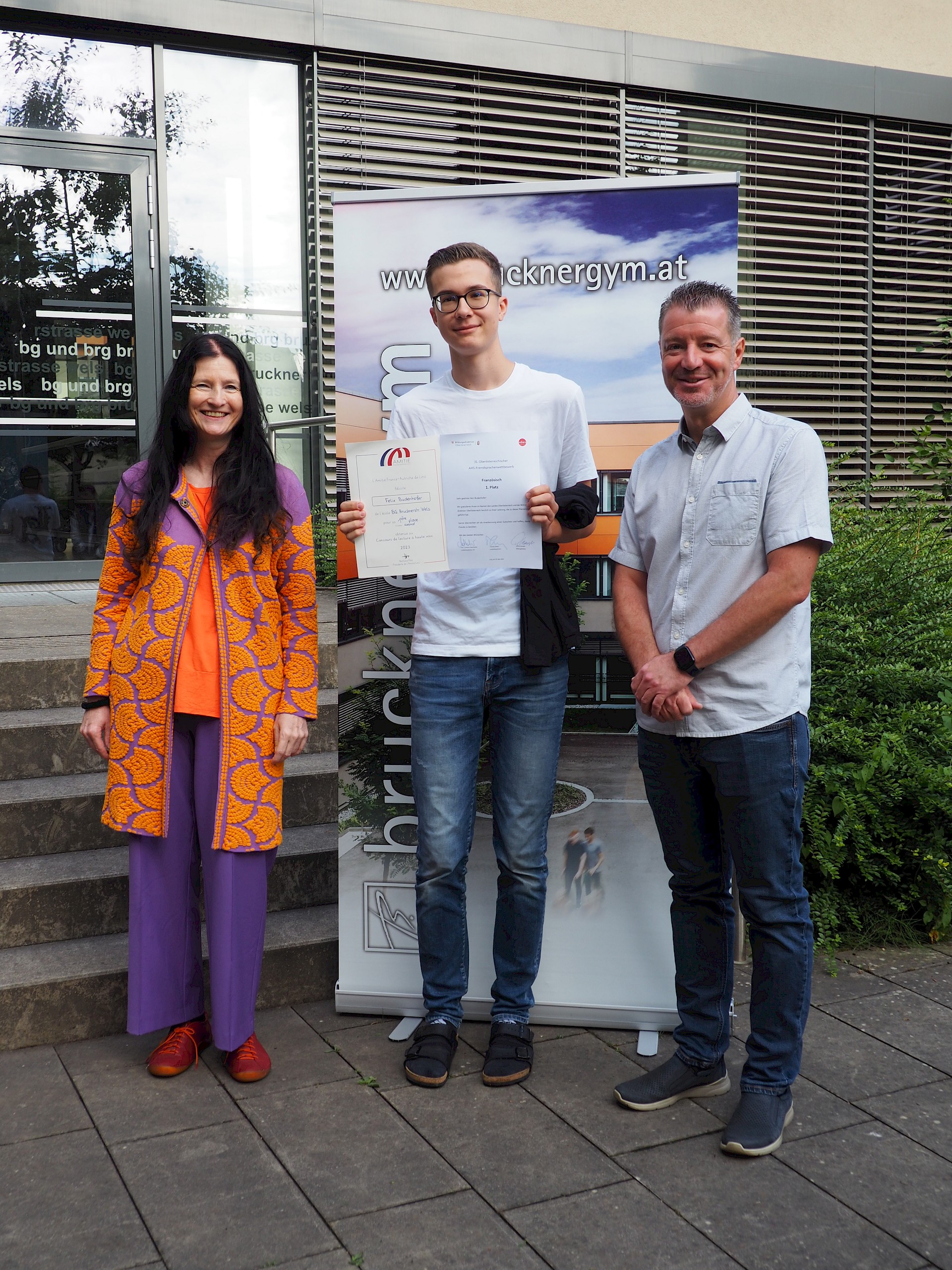 Am 23. Mai 2024 fand die feierliche Sieger*innenehrung im Linzer Redoutensaal statt, zu der uns unser Herr Direktor, Herr MMMag. Florian Koblinger und unsere Französisch-ARGE-Leiterin, Frau Mag. Sabine Schuster begleiteten. Im Namen unseres Bildungsdirektors, Herrn Mag. Dr. Alfred Klampfer überreichte Herr SQM Mag. Julian Schreibmüller, BEd die Urkunden und Preise.