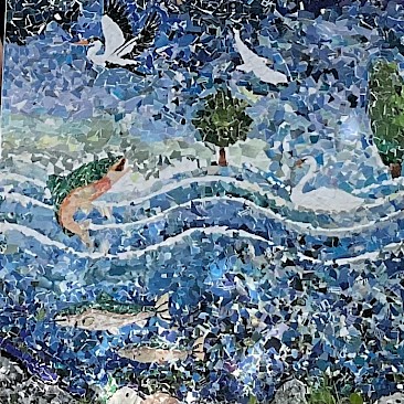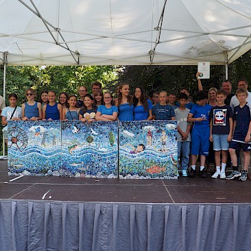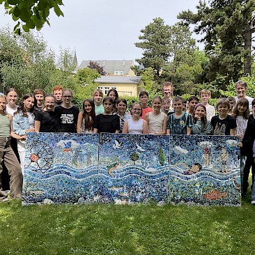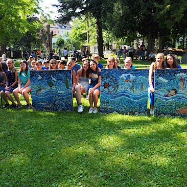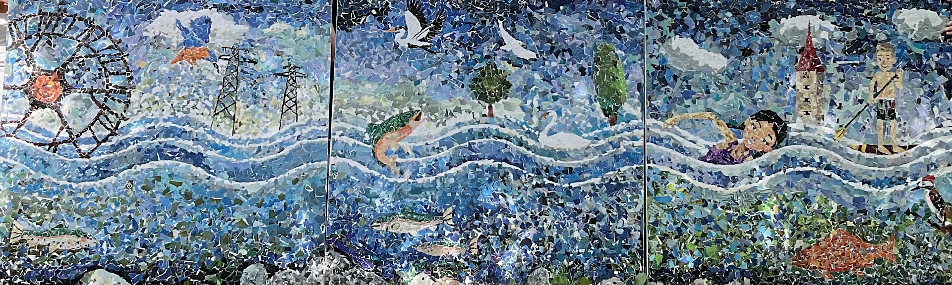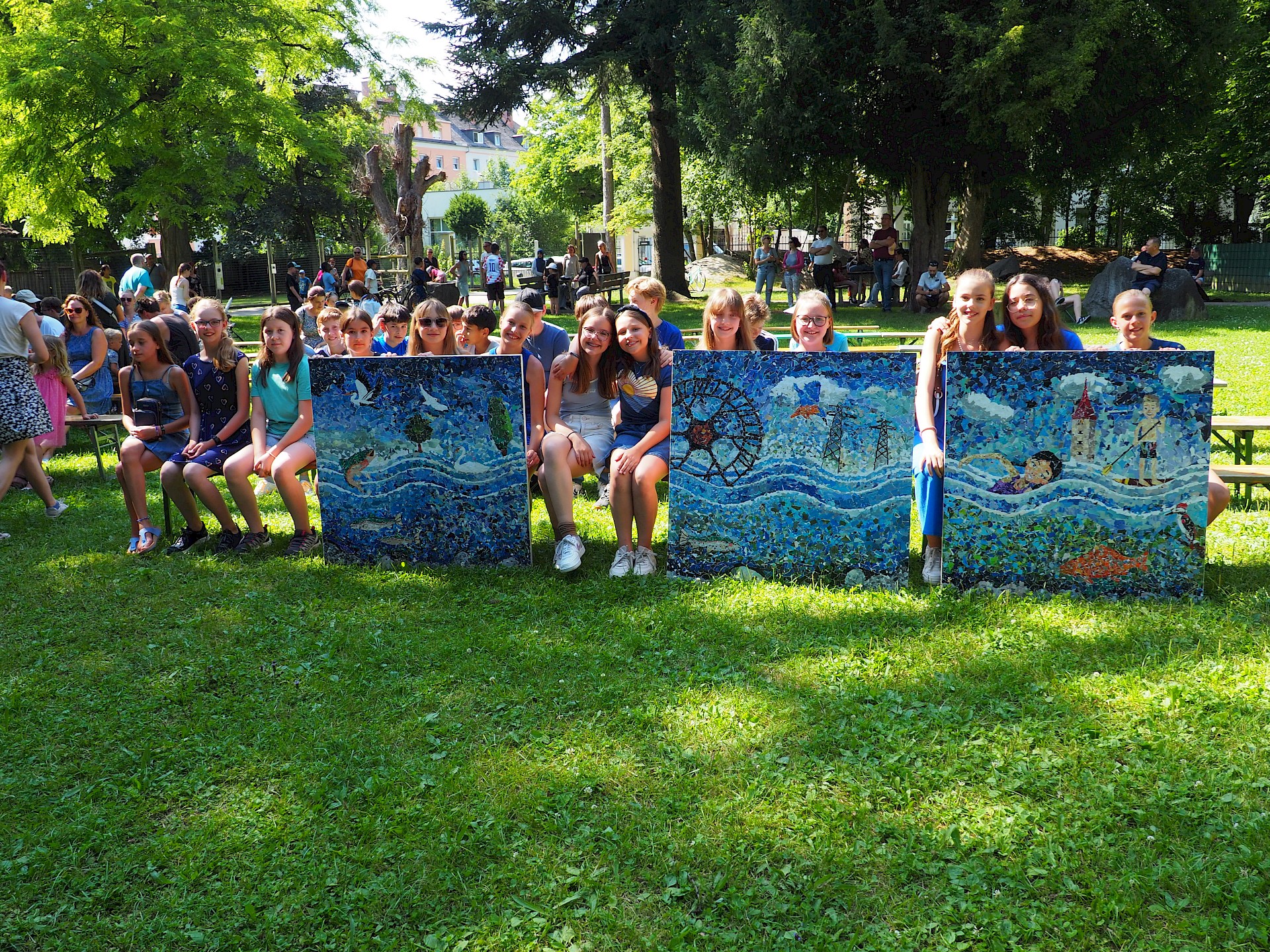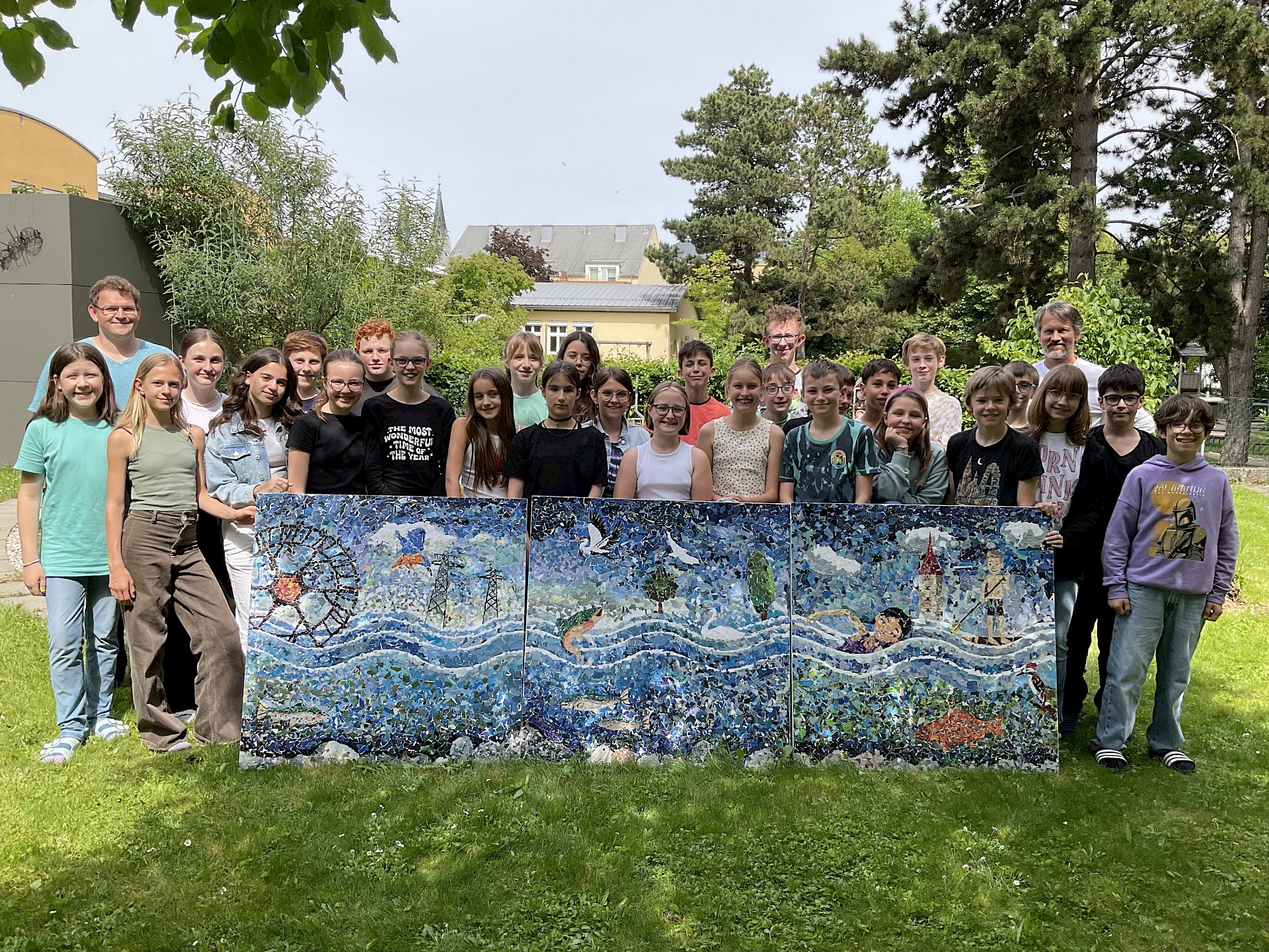 Bereits in den Monaten von März bis Mai arbeiteten die Schüler*innen fleißig an der Reißcollage. Dabei entstanden drei Bilder zu den unterschiedlichen Aspekten: wirtschaftliche Nutzung der Traun, Traun als Naturreservoir, Traun als Naherholungsgebiet für Menschen. In unterschiedlichen Gruppen arbeiteten die Schüler*innen, ihren Fähigkeiten entsprechend (Klebegruppe, Reißgruppe, …), an der Fertigstellung der Bilder, die am 27.05. erstmals im Schulgarten präsentiert wurden und einen fixen Platz im Schulgebäude zur allgemeinen Begutachtung finden werden. So können die positiven Aspekte der Traun für unsere gesamte Schule und die gesamte Schulgemeinschaft erfahrbar gemacht werden.