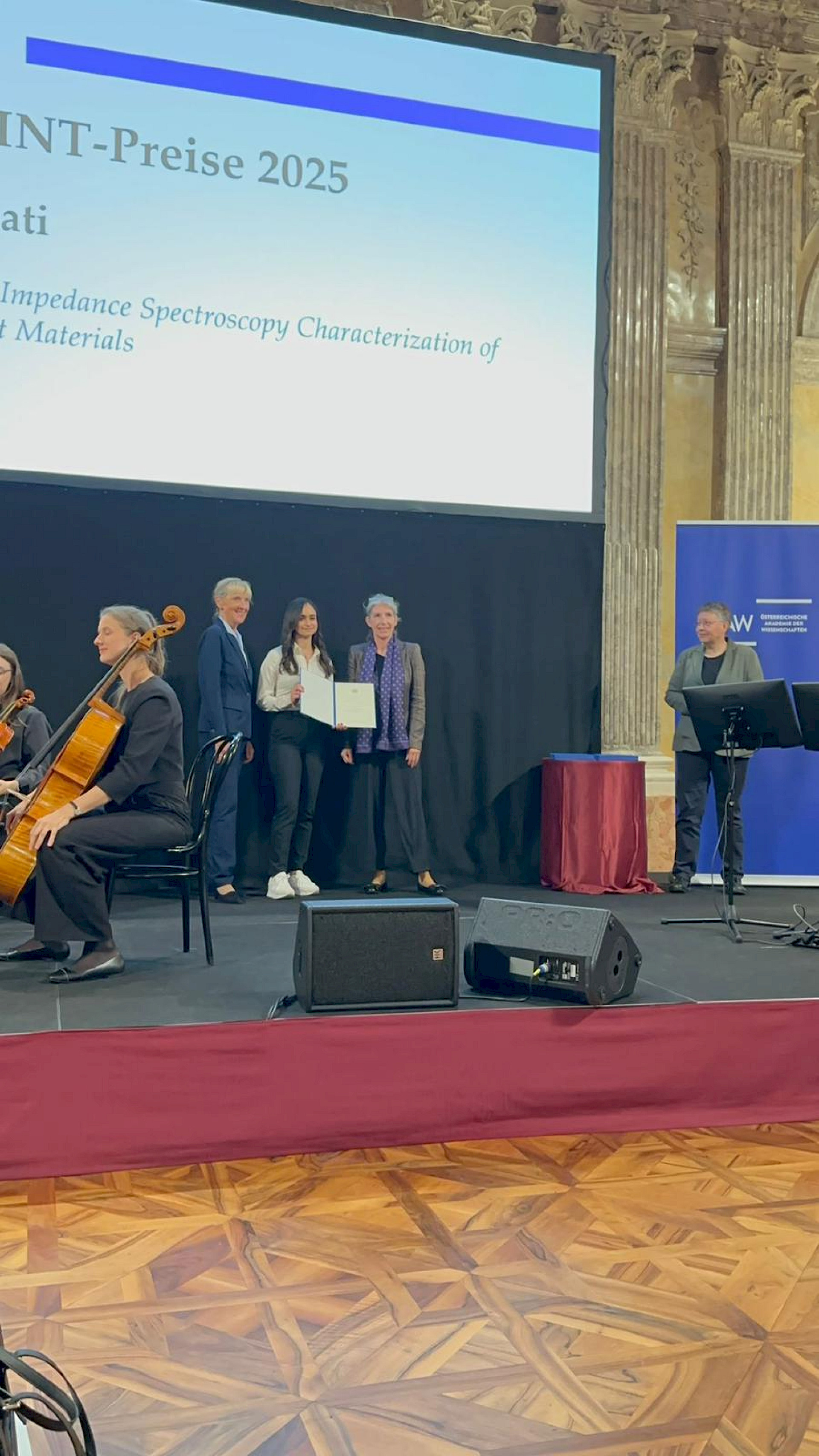 …die bereits mit dem Hans Riegel Hauptpreis Chemie in Oberösterreich und auch mit einem von der österreichisch chemischen Gesellschaft ausgezeichneten Hauptpreis österreichweit prämierten, englisch verfassten ABA mit dem Titel „Electrochemical Impedance Spectroscopy Characterization of Metallic Implant Materials“ wurde nochmals mit dem ABA MINT Preis der Akademie der Wissenschaften Österreichs zur Förderung von Frauen in den MINT Fächern in Wien ausgezeichnet.