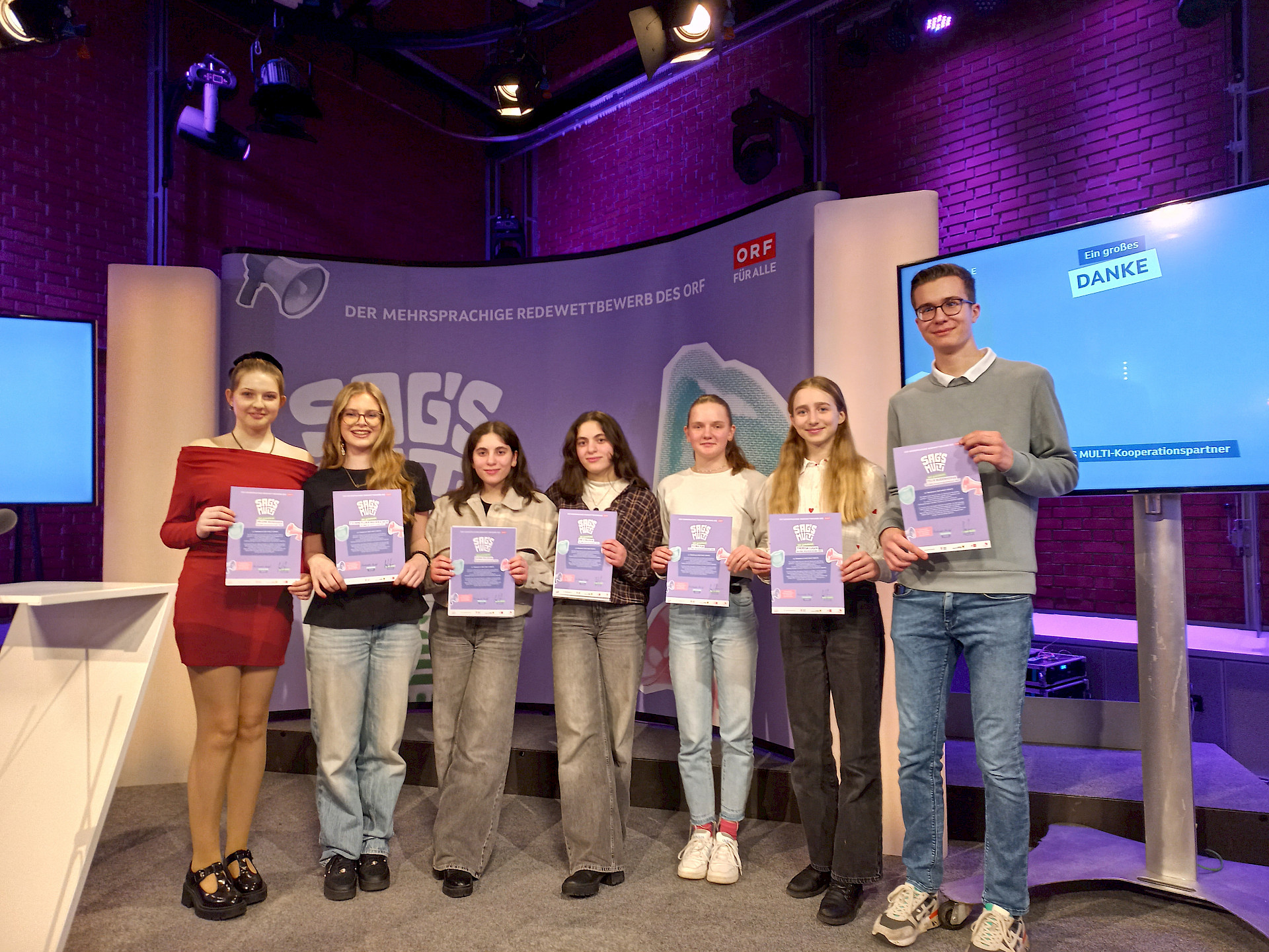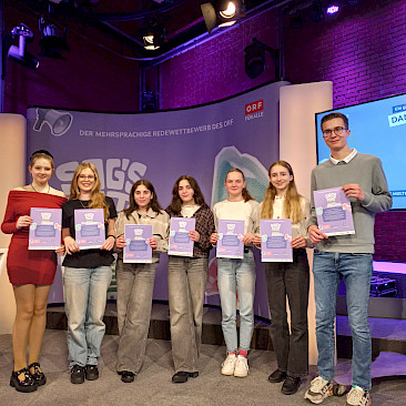In diesem Schuljahr meldeten sich sieben Schüler*innen an und reichten ihre Rede zum Thema „Bewegt Euch!“ zunächst als Videoaufnahme ein. Im Jänner erreichte uns die unglaubliche Nachricht: ALLE unsere Teilnehmer*innen hatten sich für die Finalrunde, das Speech Off, das am 13. März 2025 im ORF-Landesstudio in Linz stattfand, qualifiziert.