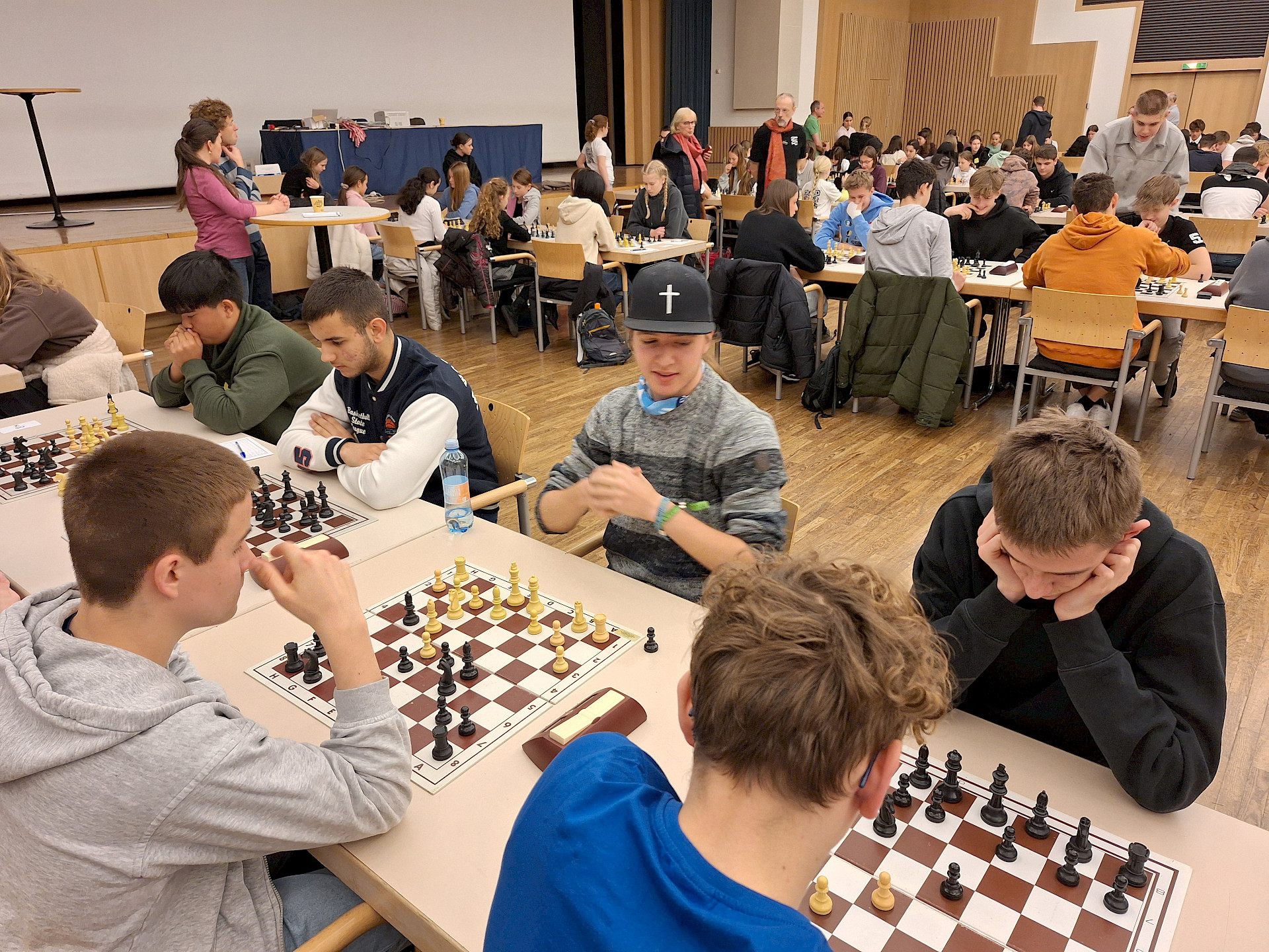 Auch 2025 war das Brucknergymnasium wieder mit großem Einsatz bei der Landesmeisterschaft im Schulschach vertreten. Mit drei Teams – zwei in der Unterstufe und erstmals einem in der Oberstufe – konnten unsere Schüler*innen beeindruckende Erfolge erzielen und wertvolle Erfahrungen sammeln. Gespielt wurden wieder sieben Runden im Schweizer System mit einer Bedenkzeit von jeweils 20 Minuten pro Spieler*in.