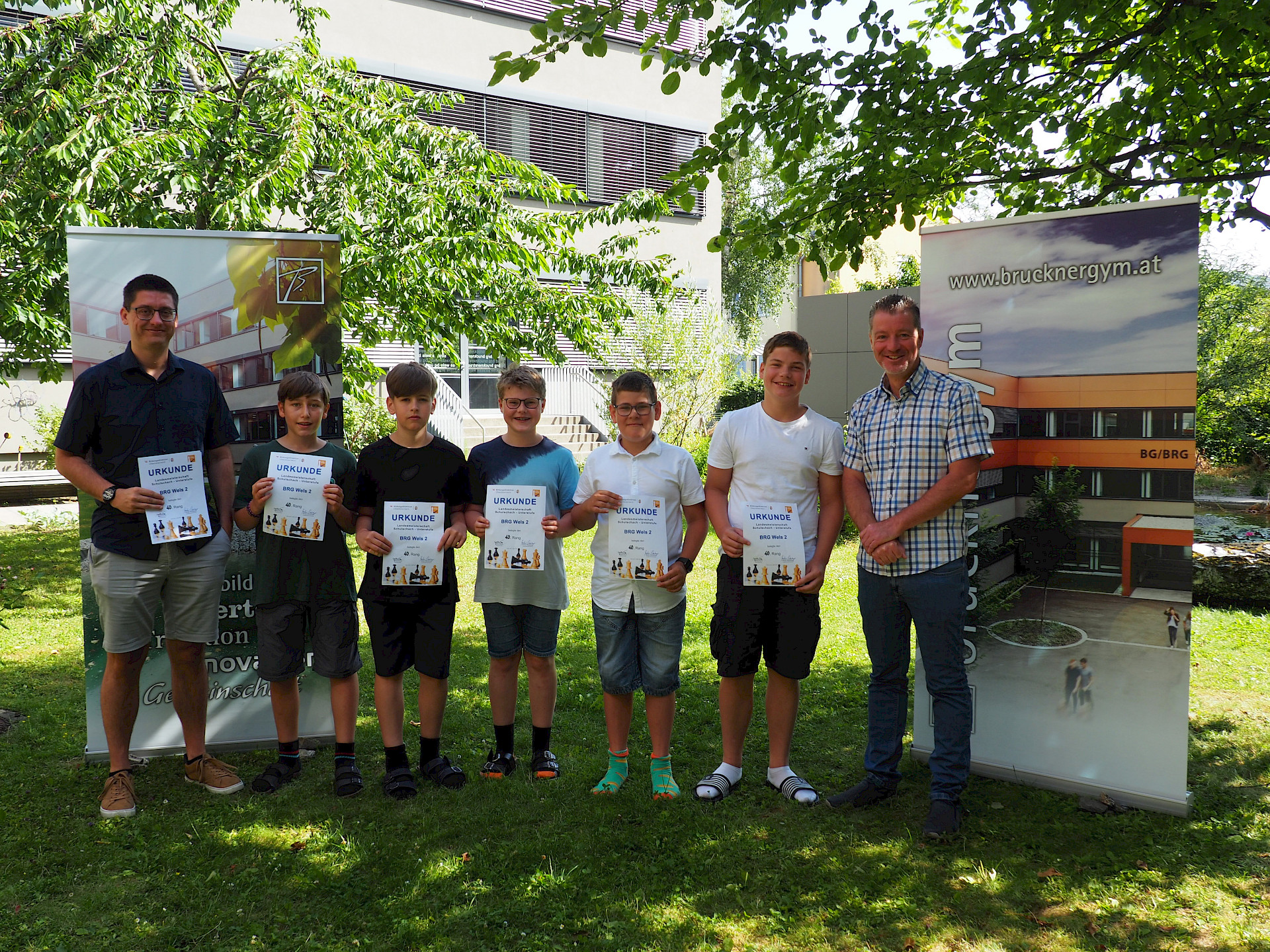 Das Team BG/BRG Brucknerstraße Wels 2, bestehend aus Thomas Wiesinger (2E), Maximilian Spitzer (2E), Marin Jukicic (3B), Clemens Schürz (1B) und Jan Stelzhammer (1B), belegte den 40. Platz. Für die meisten war es die erste Teilnahme an einem großen Turnier, und alle sammelten wertvolle Erfahrungen. Jede*r Spieler*in steuerte wichtige Punkte zur Endplatzierung bei und zeigte tolle Partien. Insgesamt erreichte das Team 11 von 28 Punkten.