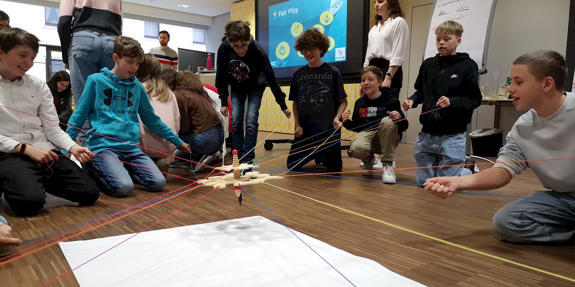 In einem Rollenspiel übernahmen die Schüler*innen die Tätigkeiten von Arbeiter*innen in einer Schiffsfabrik und produzierten Papierschiffe. Sie wurden mit unfairen Arbeitsbedingungen konfrontiert und mussten gemeinsam agieren, um ihre Situation zu verbessern.