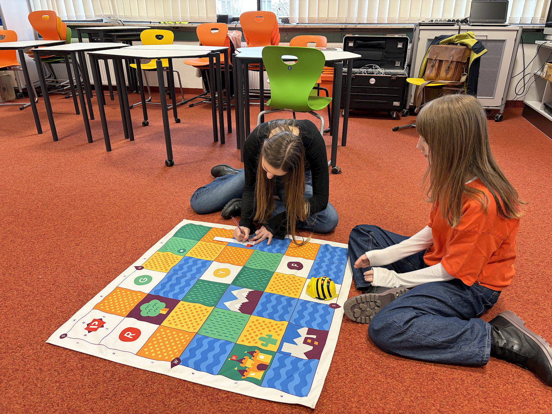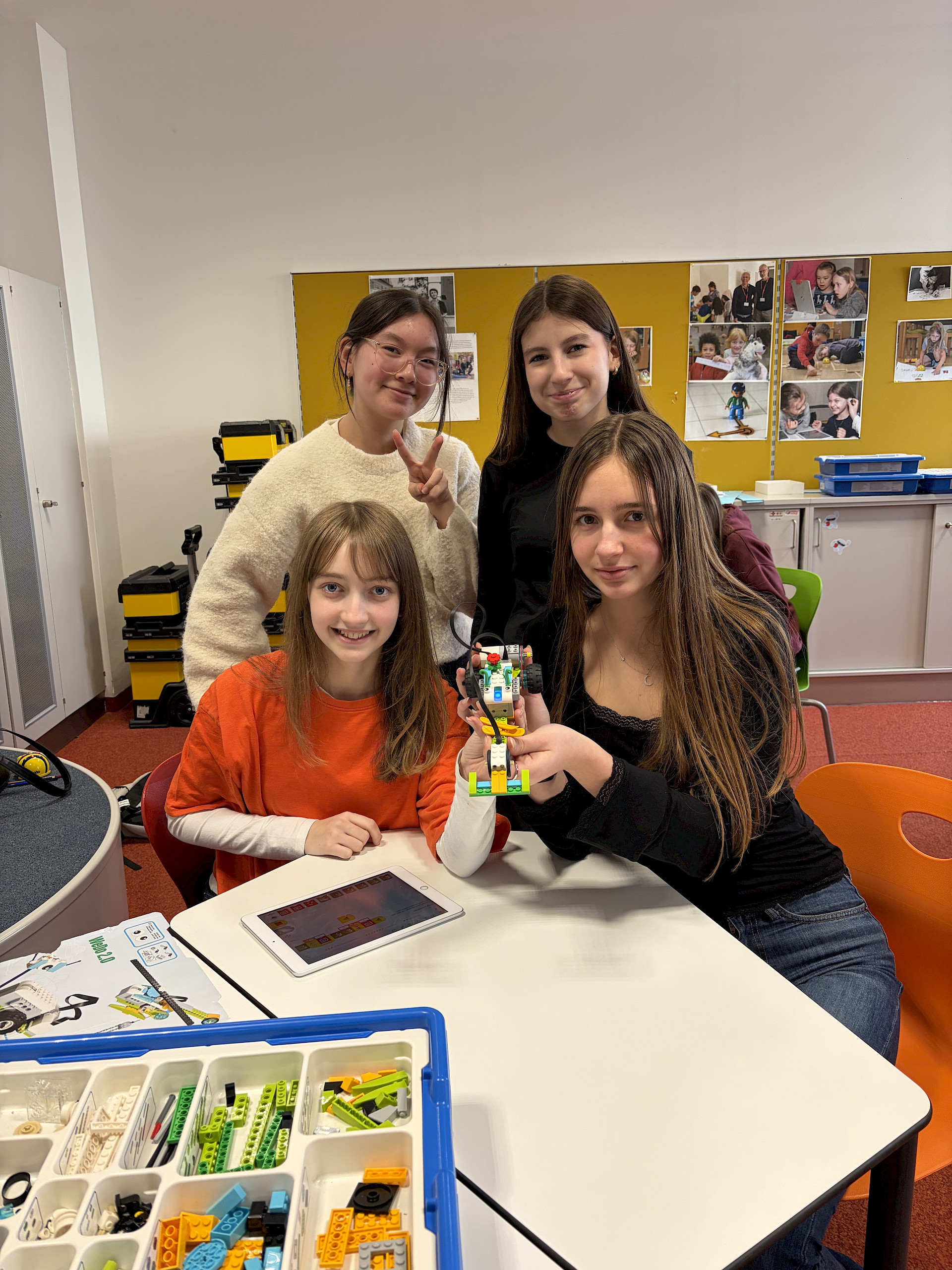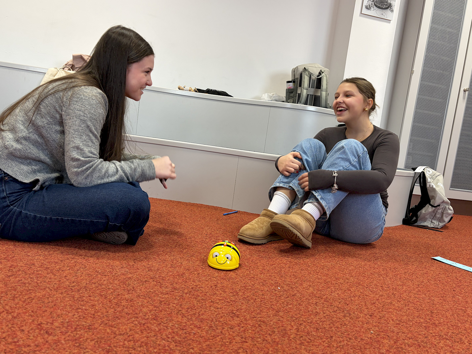 Besonders großen Spaß hatten die Schüler*innen beim Programmieren der Bee Bots. Mit diesen einfach zu bedienenden Robotern gelang der Einstieg in die Welt des Codings spielerisch und anschaulich. Um den Perspektivenwechsel gut zu verstehen, programmierten sie die Bee Bots in einer kleinen Land- bzw. Stadtumgebung auf einem Spieleteppich und mussten dabei genau überlegen, welche Befehle notwendig sind, um das gewünschte Ziel zu erreichen. Anschließend wurden Legoautos gebaut und mit Lego Education Sets programmiert. Hier wurde nicht nur getüftelt, sondern auch geforscht: Wie wird mein Auto schneller? Welche Soundeffekte kann ich einsetzen? Welche Faktoren beeinflussen die Bewegung? Ganz nebenbei wurden physikalische Hintergründe erforscht und ausprobiert. Natürlich durfte auch ein kreative „Pimp up“ mit zusätzlichen Legosteinen nicht fehlen – Technik und Gestaltung gingen Hand in Hand.