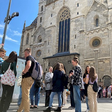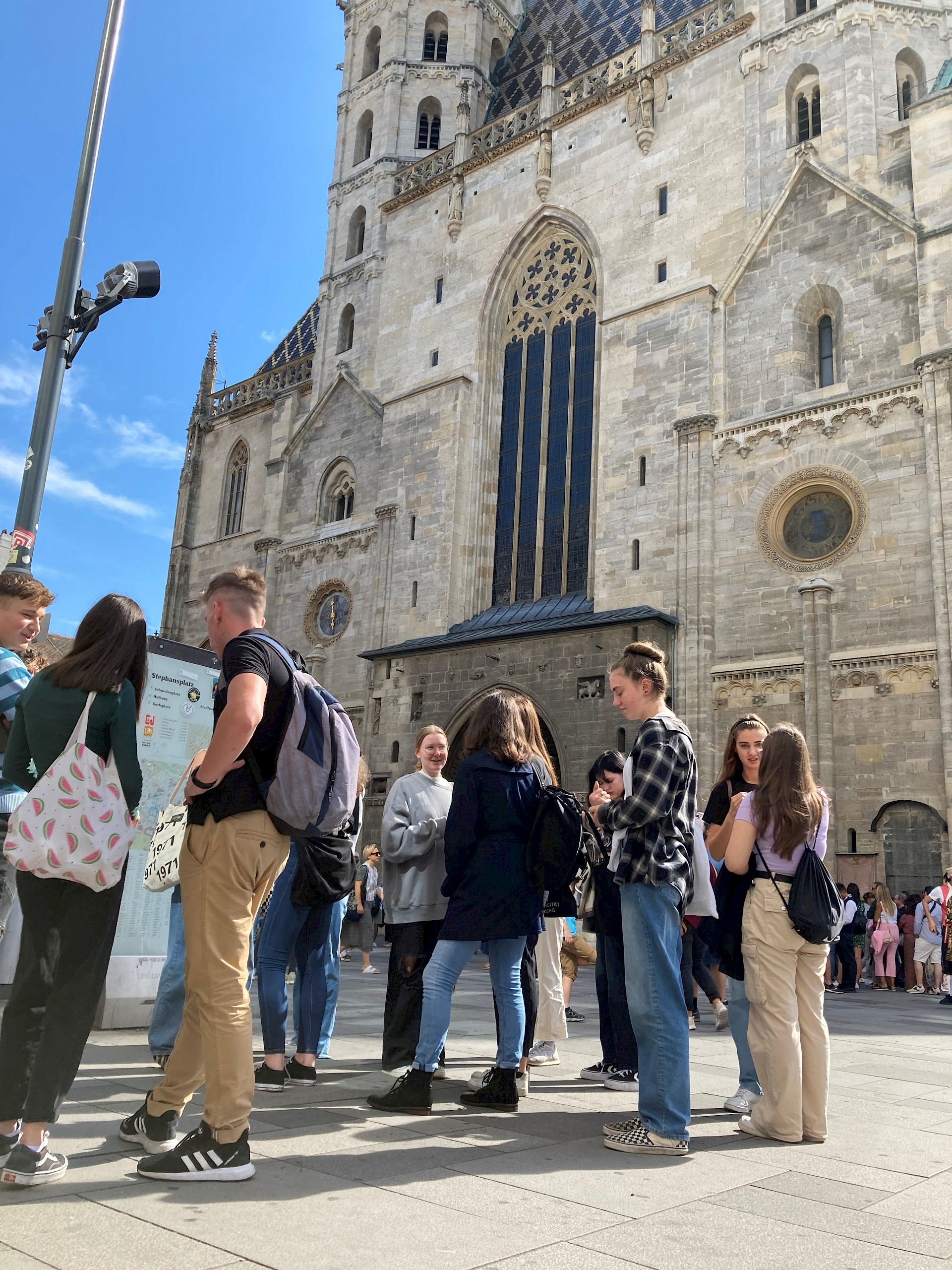Für den Donnerstag überlegten wir uns ein echtes Highlight. Wir fuhren auf Exkursion nach Wien! Nachdem wir das schöne Wetter in Wien mit einer kleinen Stadtführung durch die Innenstadt ausgenutzt hatten und verschiedene Universitätsstandorte rund um die Hauptuni und im ersten Bezirk näher angeschaut hatten, ging es in Richtung Sensengasse und MED-Campus. Im Narrenturm angekommen erhielten wir durch eine Medizinstudentin eine Führung durch die anatomisch-pathologische Sammlung der Universität Wien. Dies war für unsere angehenden Medizinstudent*innen ein echtes Highlight, wenn auch der Kreislauf doch einigermaßen strapaziert wurde. Die Schüler*innen nutzen auch die Chance die Medizinstudentin noch nach Tipps und Tricks für die Vorbereitung auf den Medizin-Aufnahmetest zu fragen. Zum Schluss machten wir noch Mittagspause in der Mariahilfer Straße, wo uns das Wetter leider nicht mehr hold war.
